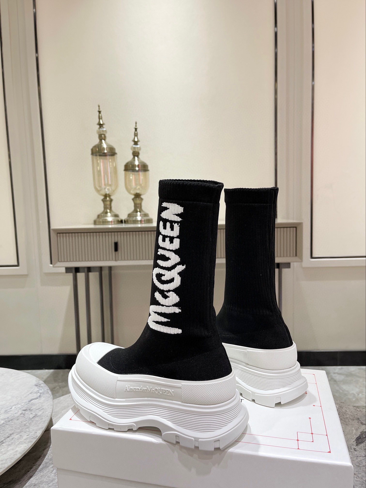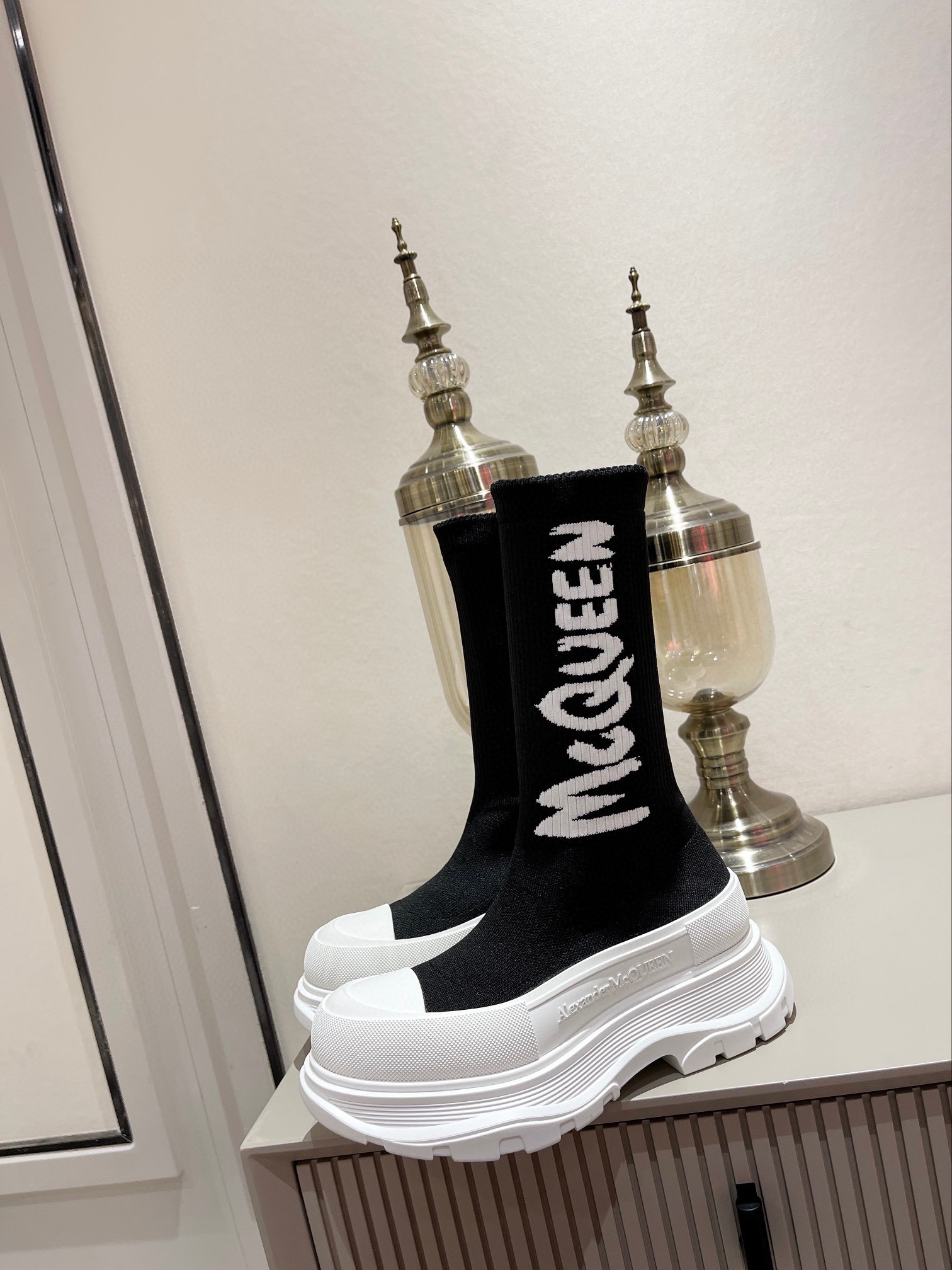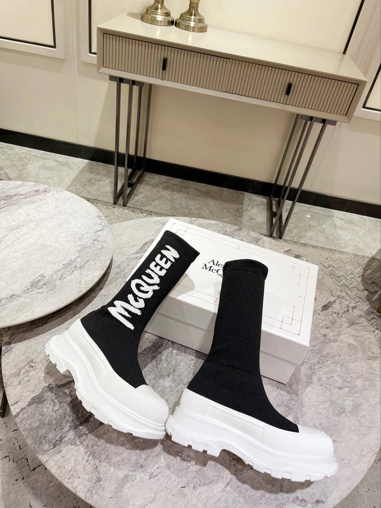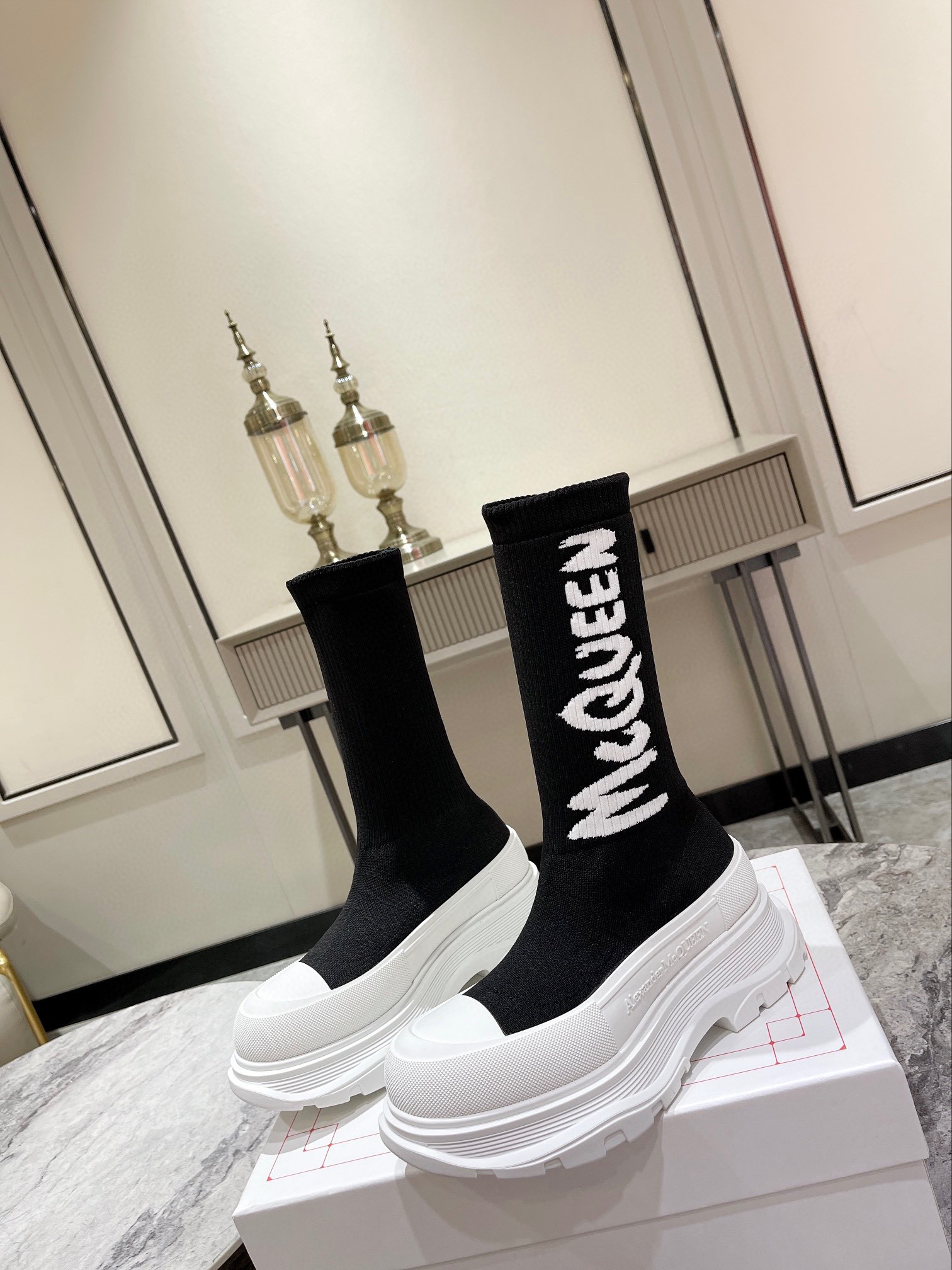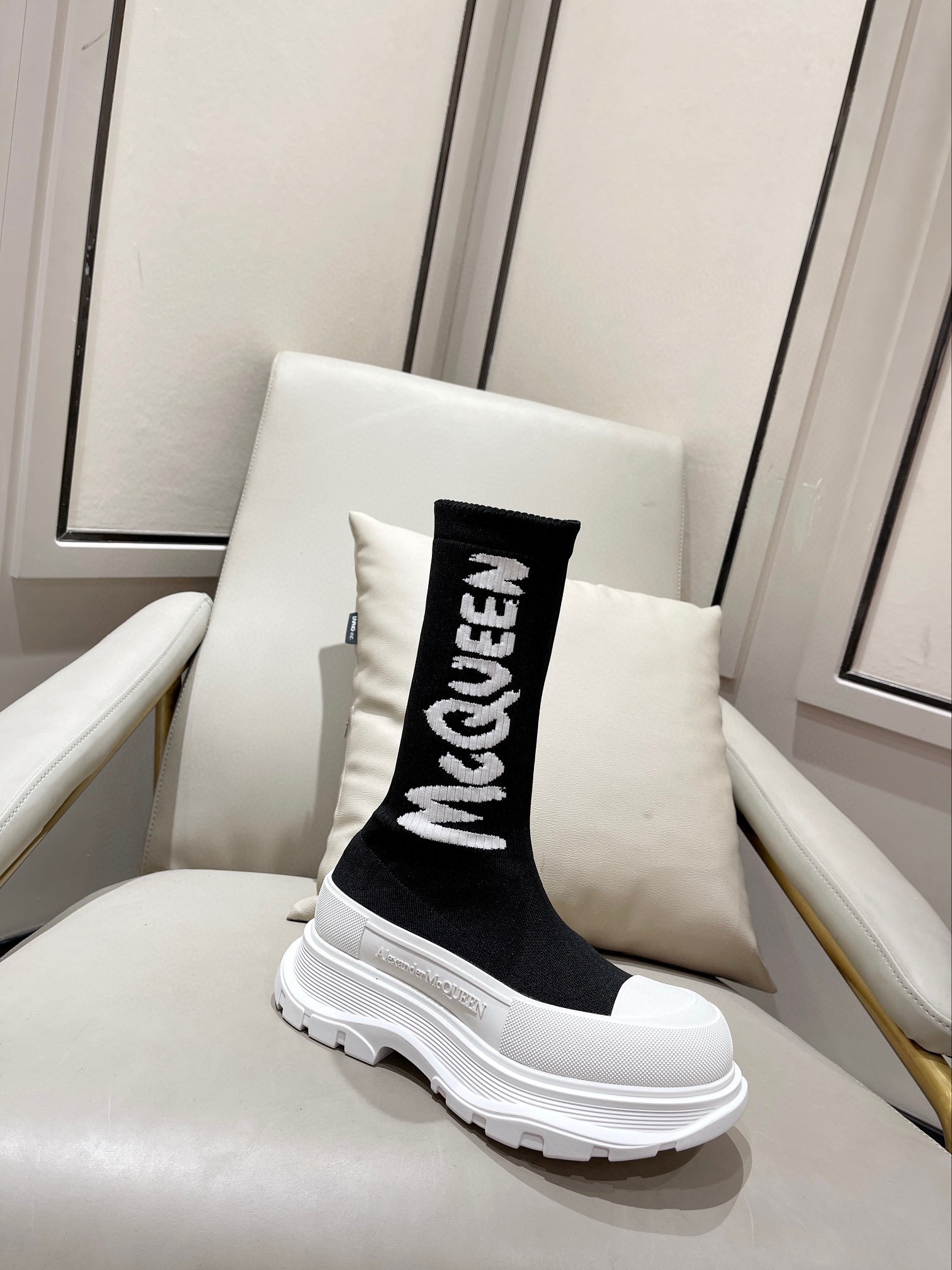 值得疯抢的魅力是它拥有今年主流元袜子套脚风格又不失麦昆独有的mcqueen大logo休闲时尚,上脚超有欧美风范。