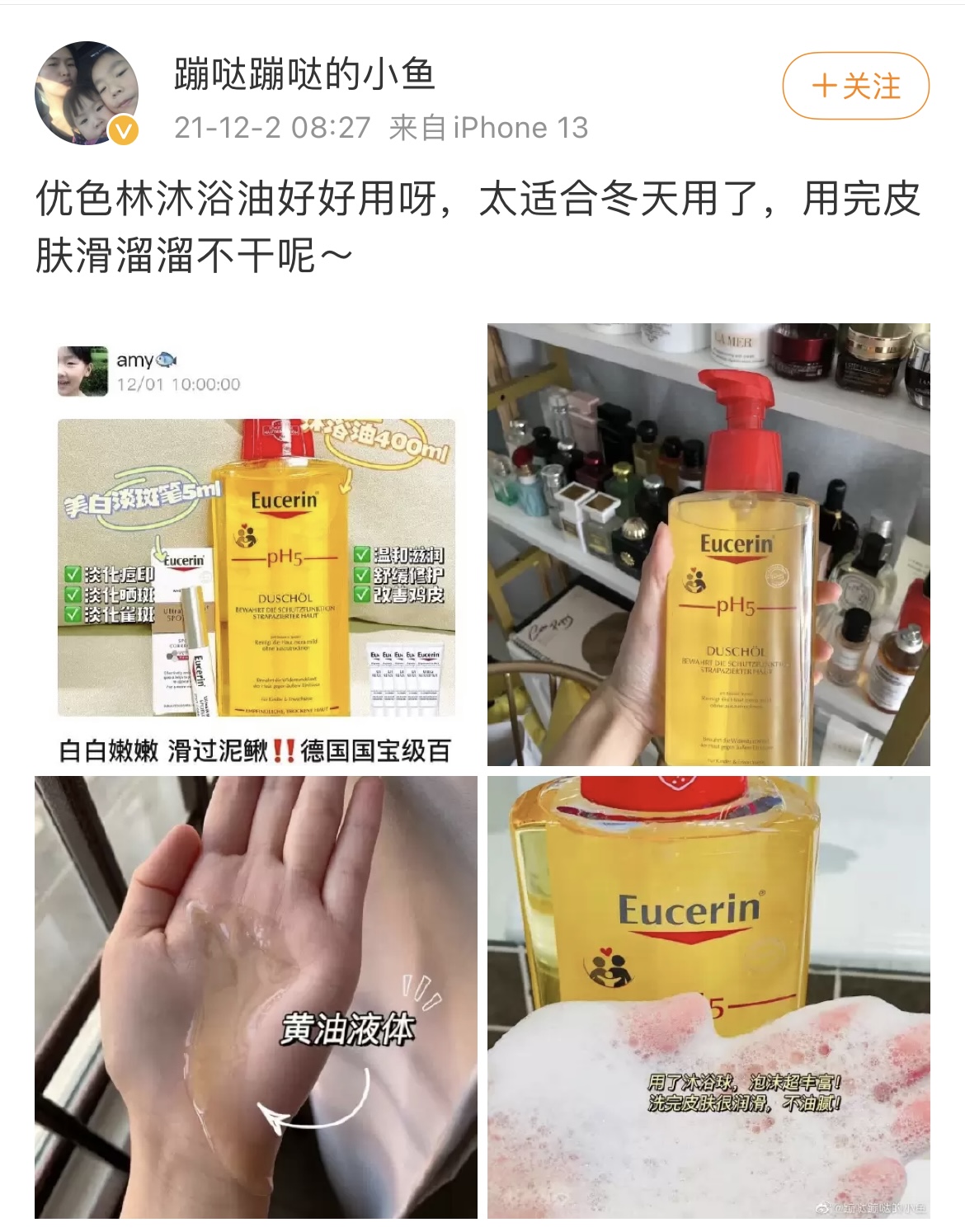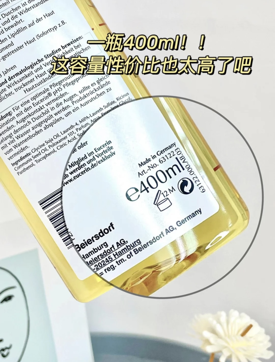 【商品名称】Eucerin优色林沐浴油保湿温和清洁滋润沐浴露100ml