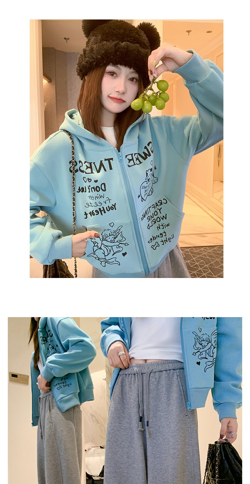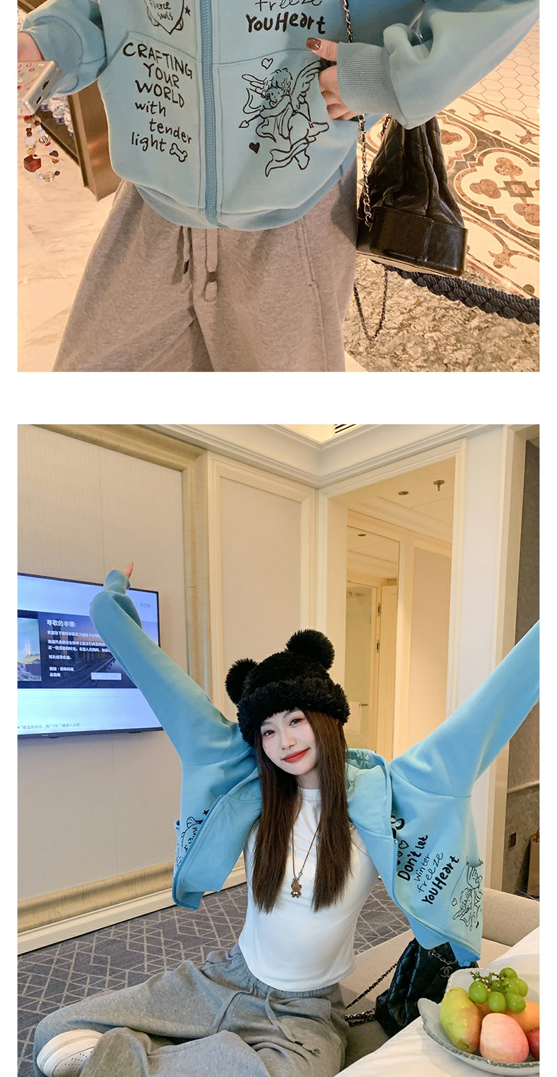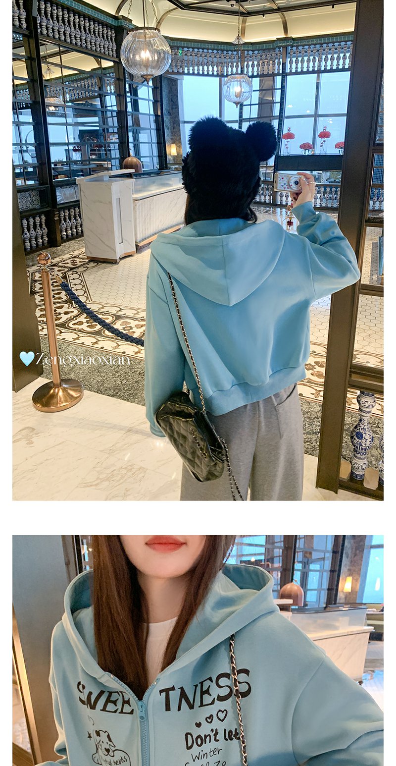 <曾小咸推荐>现货秒杀!微信超特价!蓝色连帽拉链短款卫衣加绒 日常229.99 立减100 秒杀129.99!