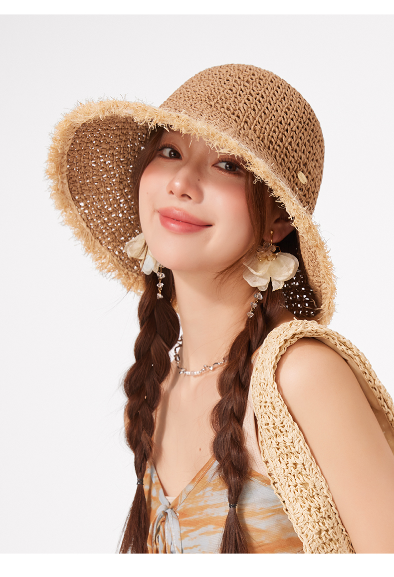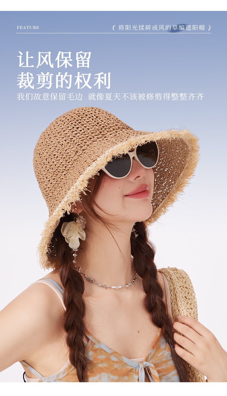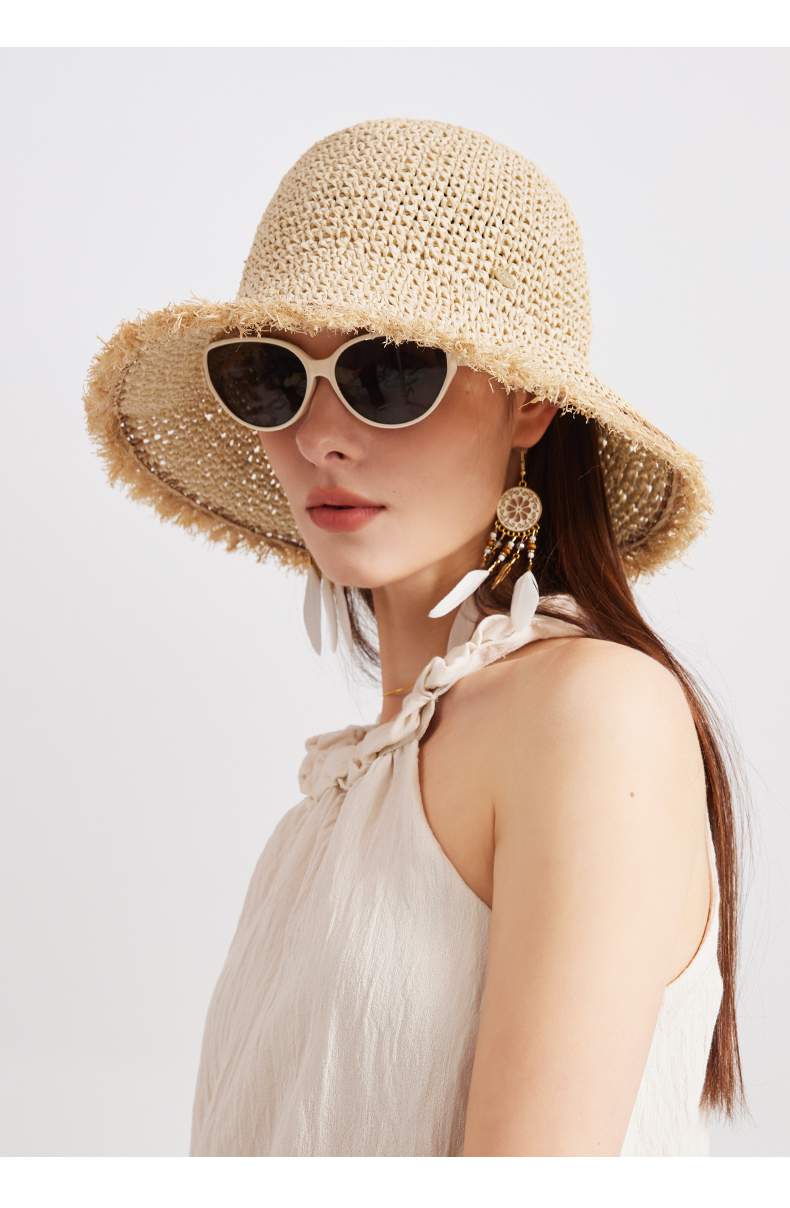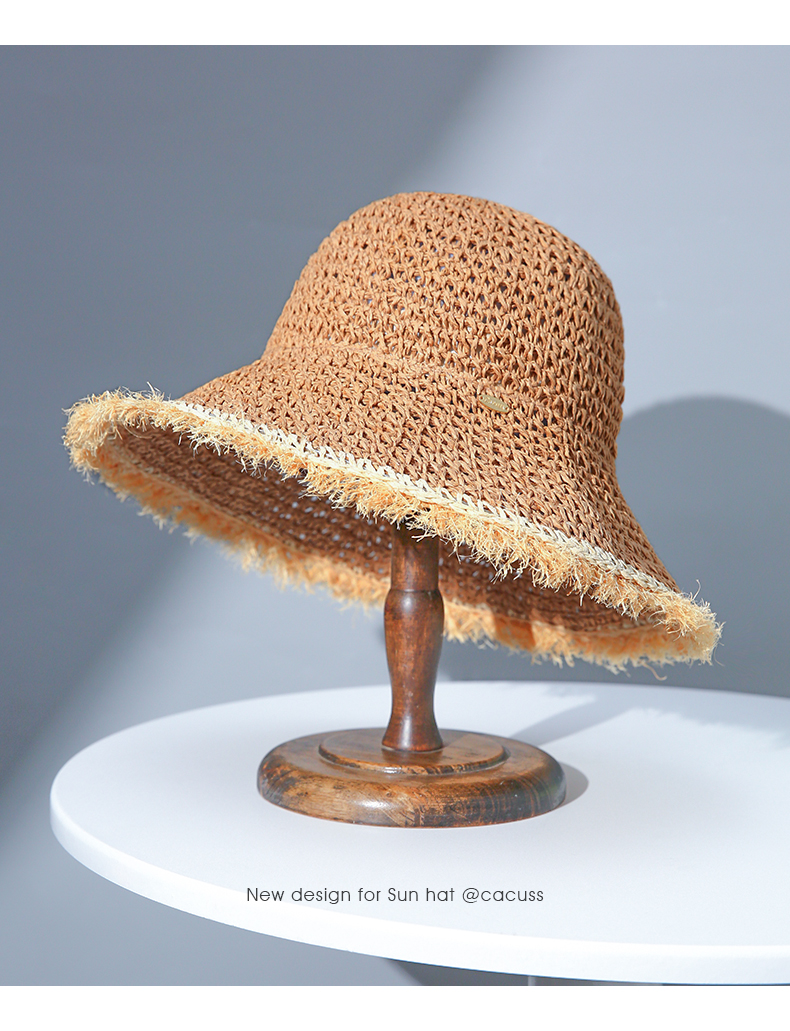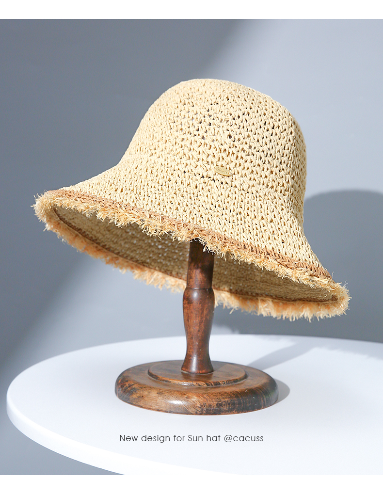 【CACUSS防晒】原野毛边防晒草帽 透气自然纤维草编沙滩帽 可卷曲随身遮阳帽太阳帽渔夫帽