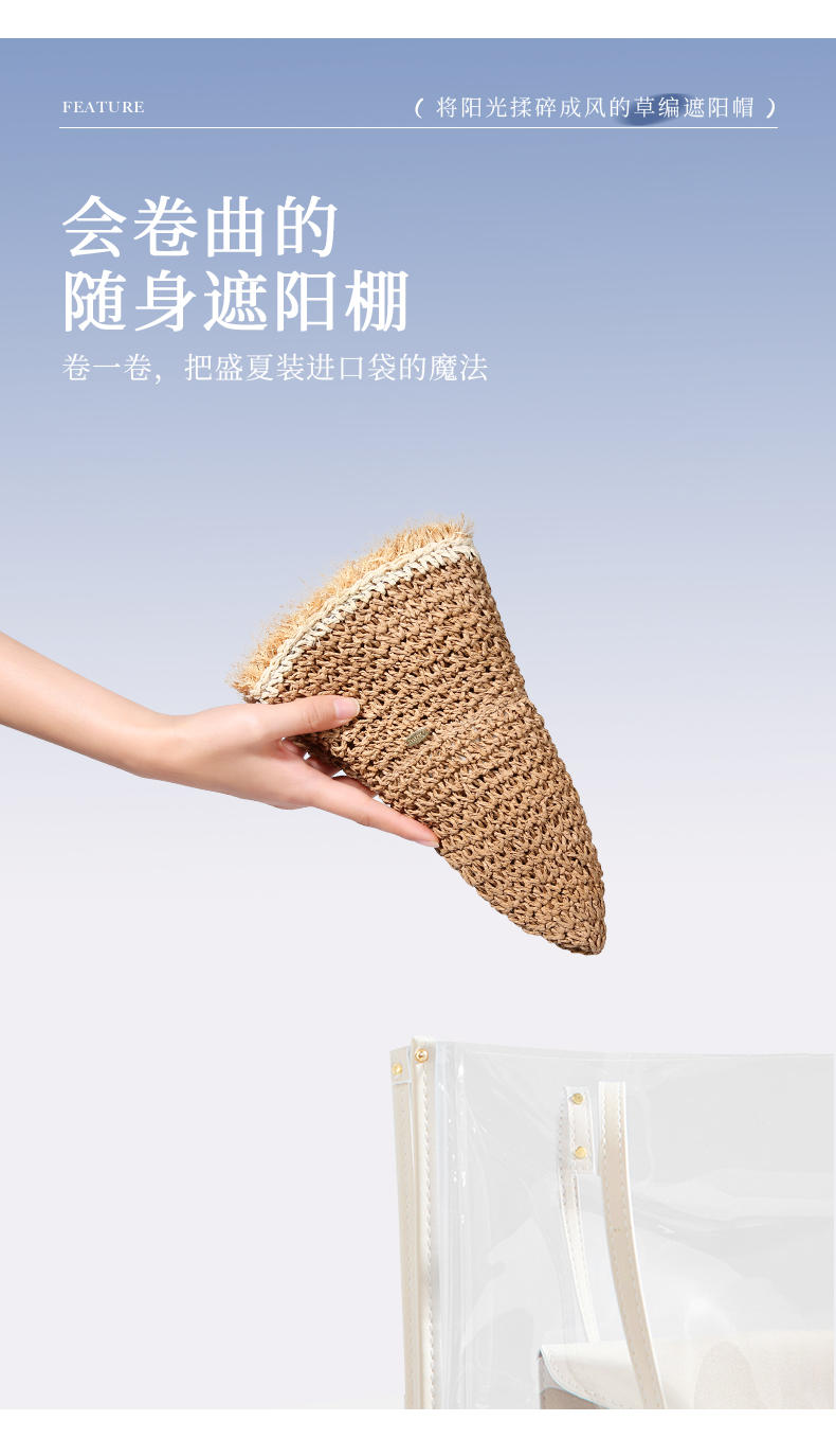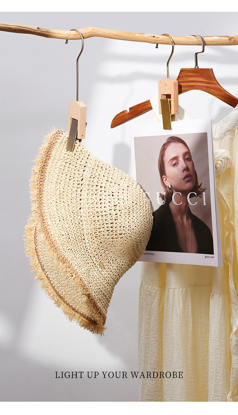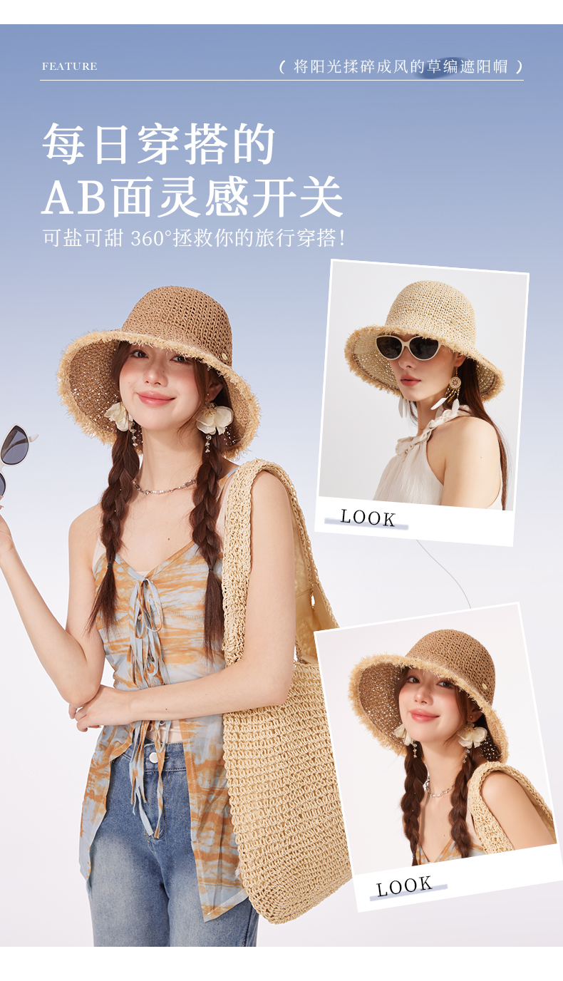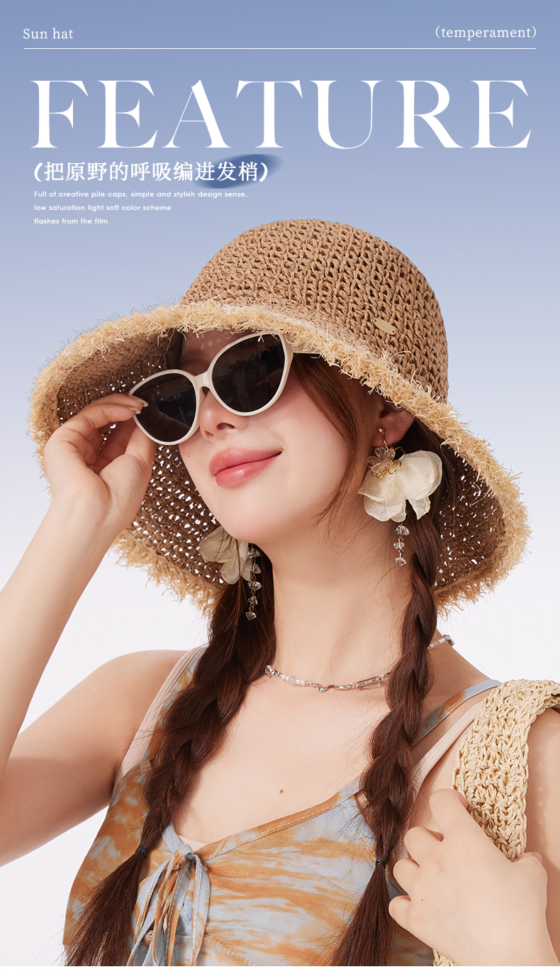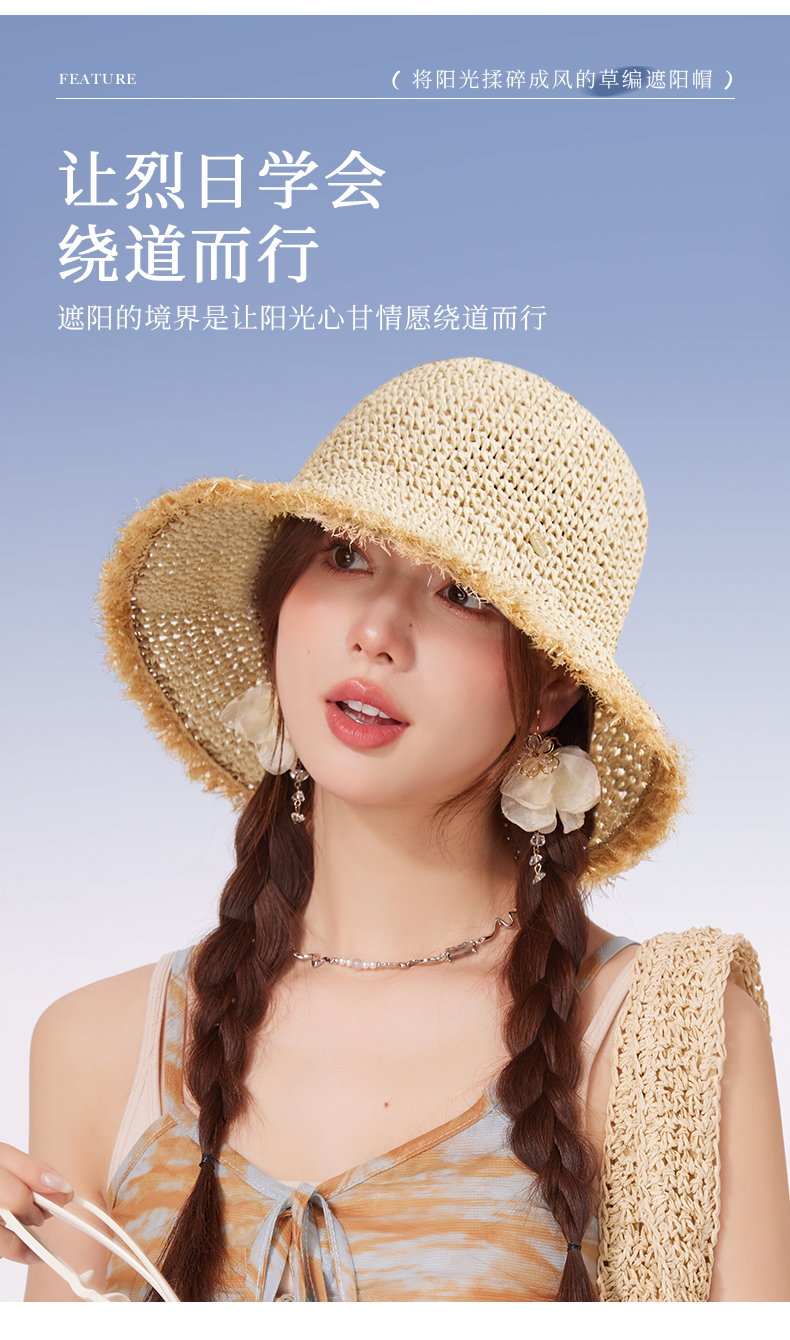 【CACUSS防晒】原野毛边防晒草帽 透气自然纤维草编沙滩帽 可卷曲随身遮阳帽太阳帽渔夫帽
