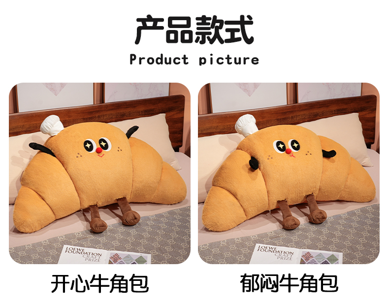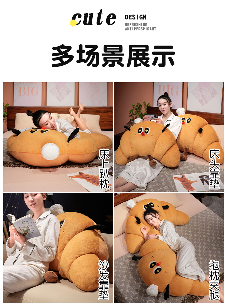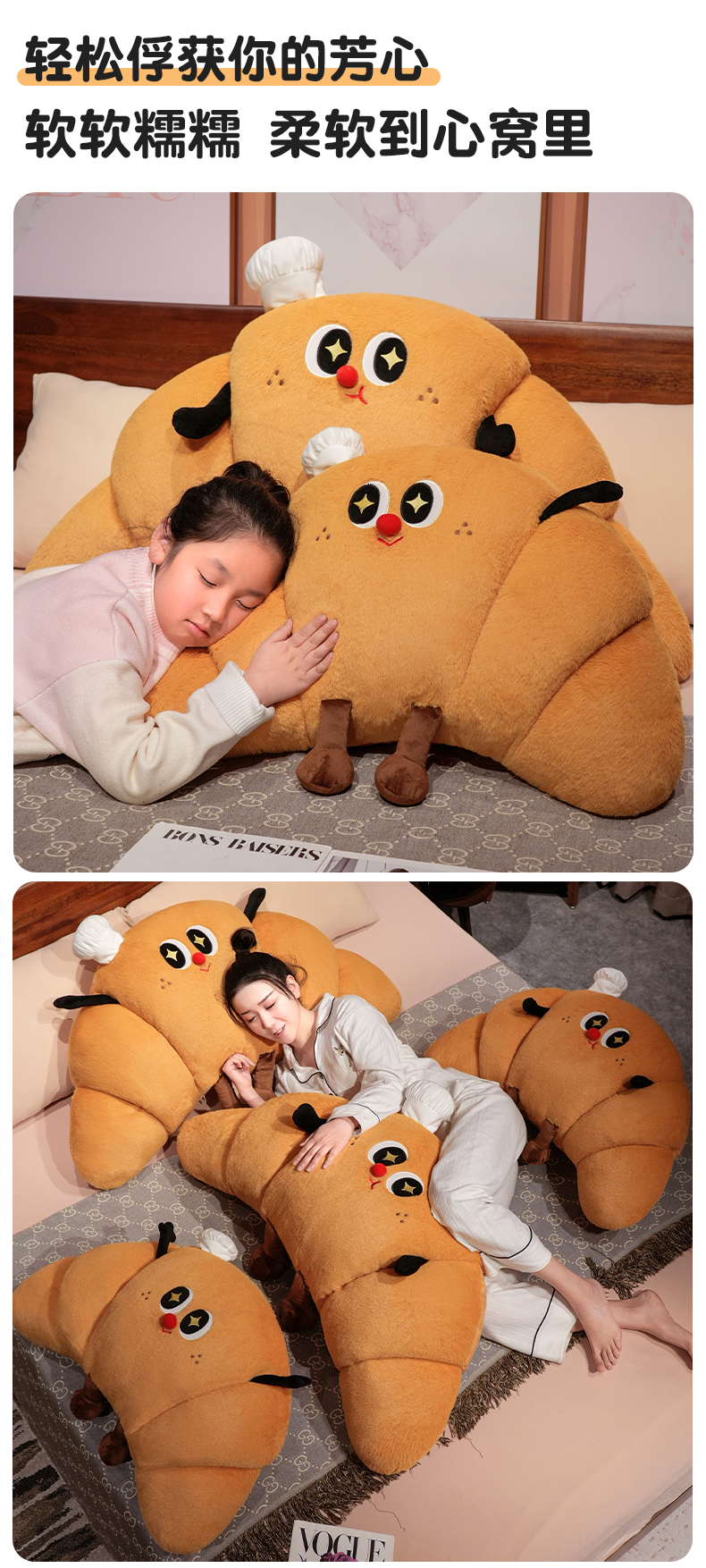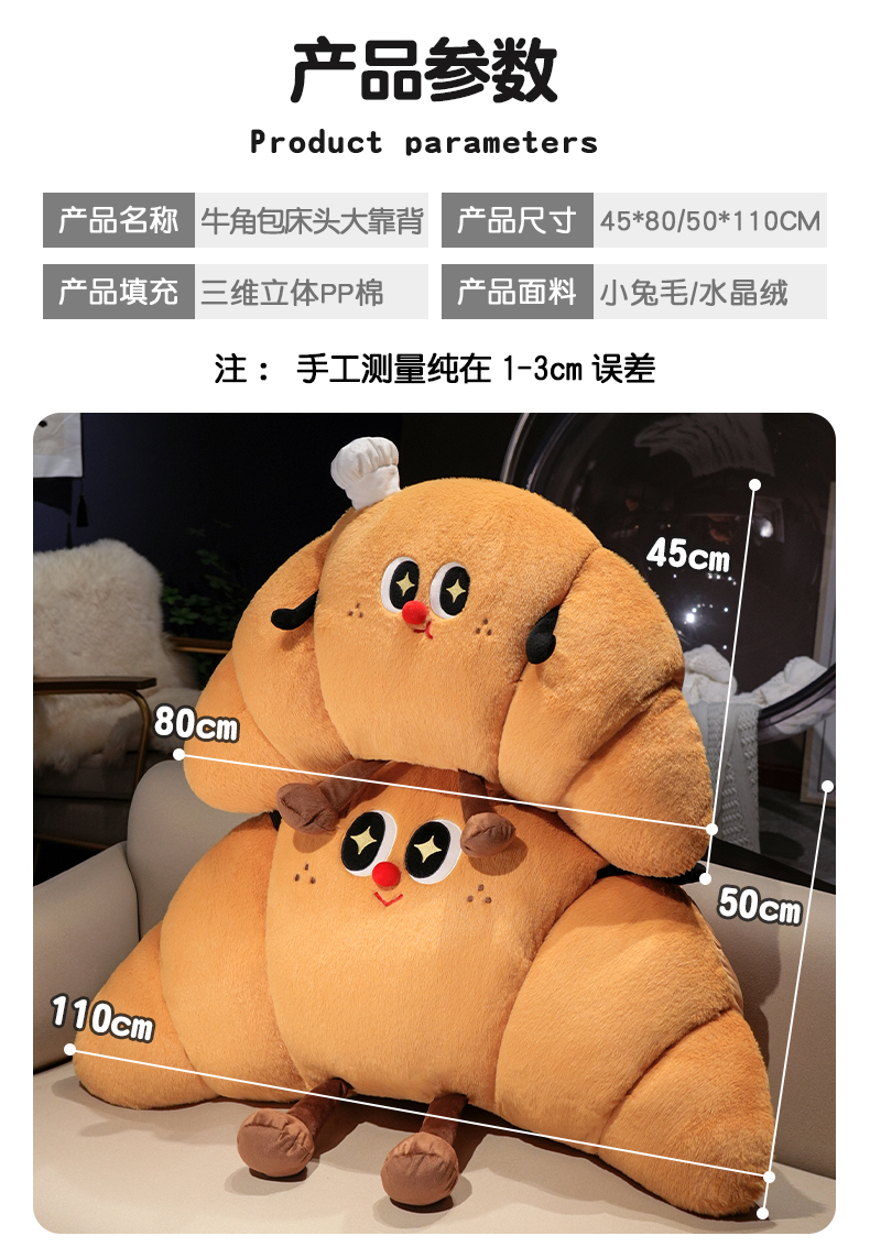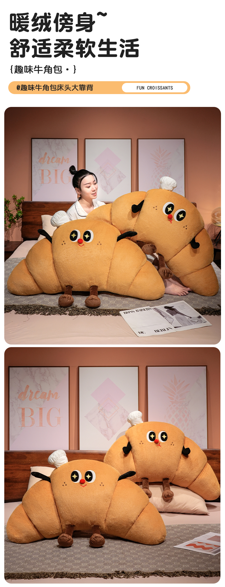 自然醒趣味牛角包床头大靠背沙发靠垫学生宿舍枕头床上看书护腰垫靠枕QYL