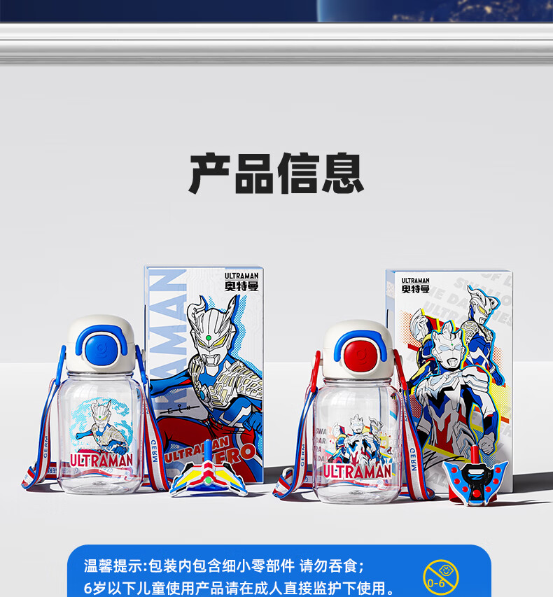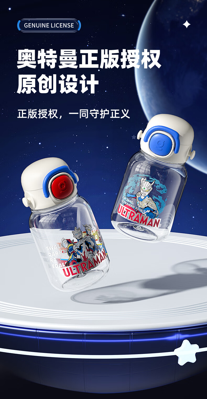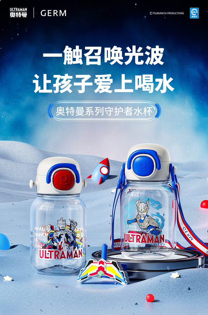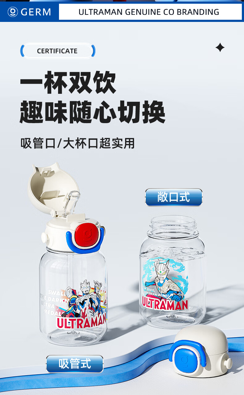 【儿童节】格沵(germ)奥特曼儿童水杯Tritan双饮口男学生水壶大容量吸管杯子上学直饮杯HF