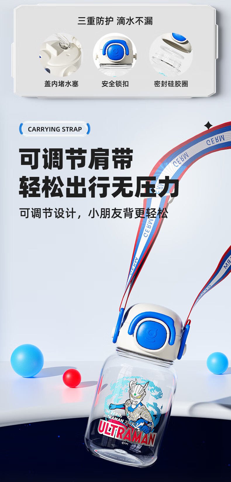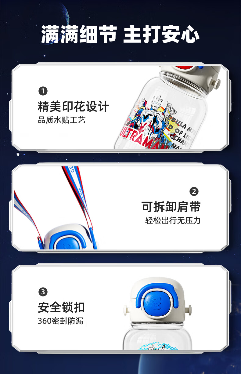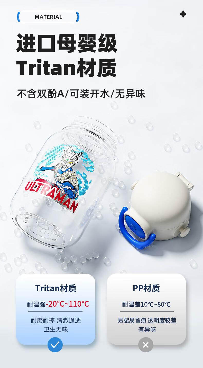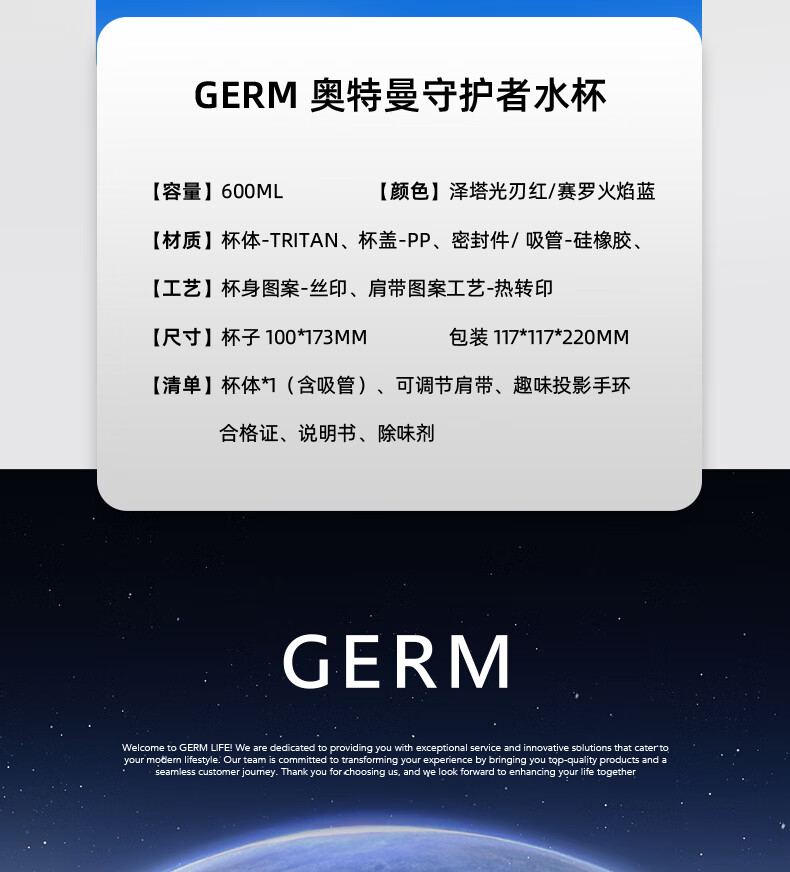 【儿童节】格沵(germ)奥特曼儿童水杯Tritan双饮口男学生水壶大容量吸管杯子上学直饮杯HF
