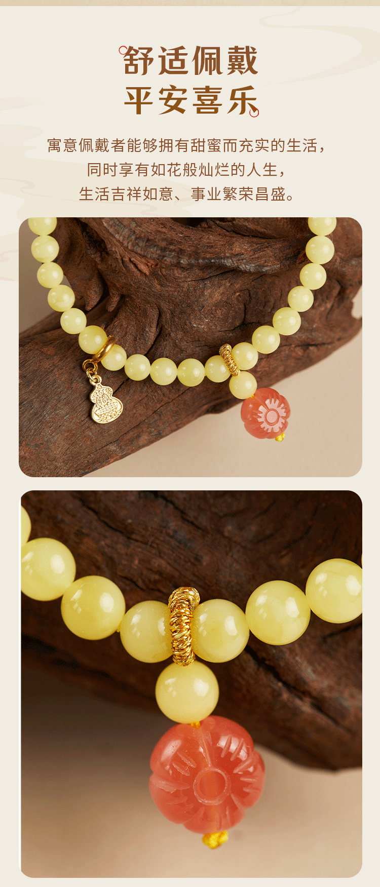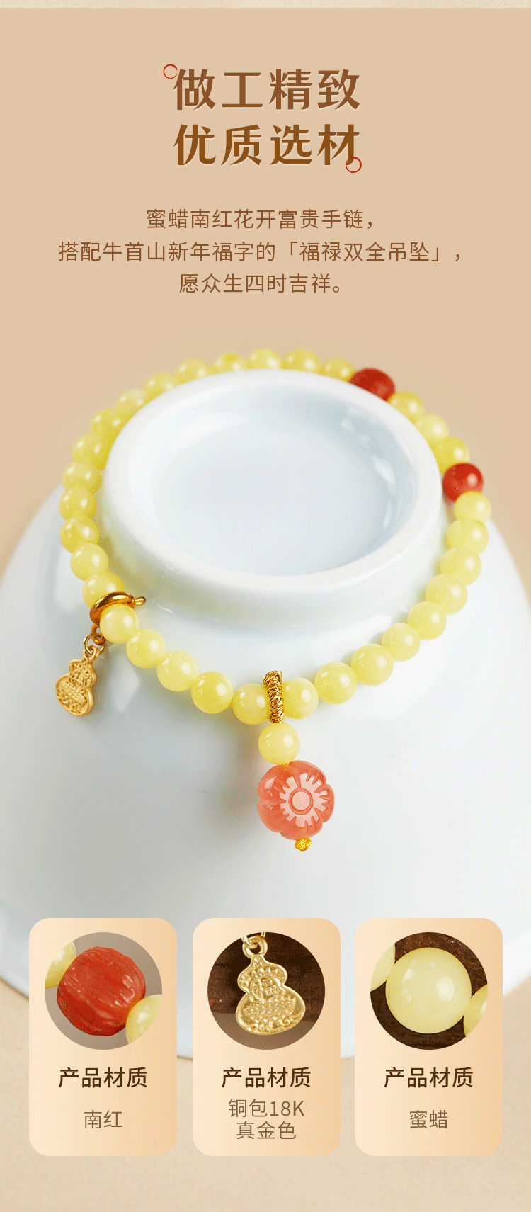 牛首山文创蜜蜡花韵手串南红玛瑙手链原矿珠串吉祥平安祝福送礼品