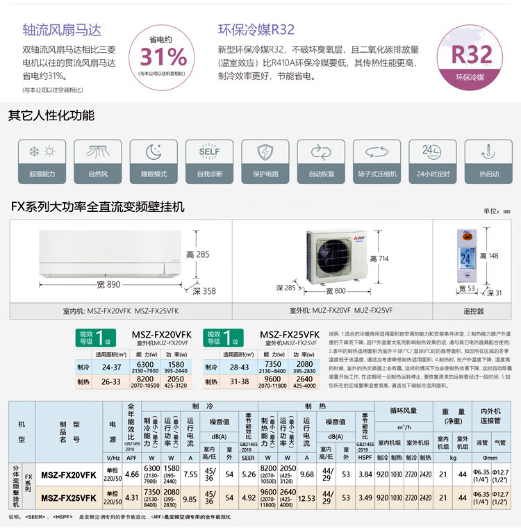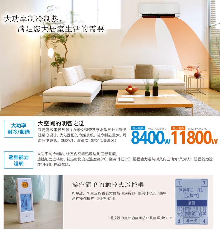【国补15%】三菱电机日本进口雾峰MSZ-FX25VFK 3匹p变频空调客厅挂机1级