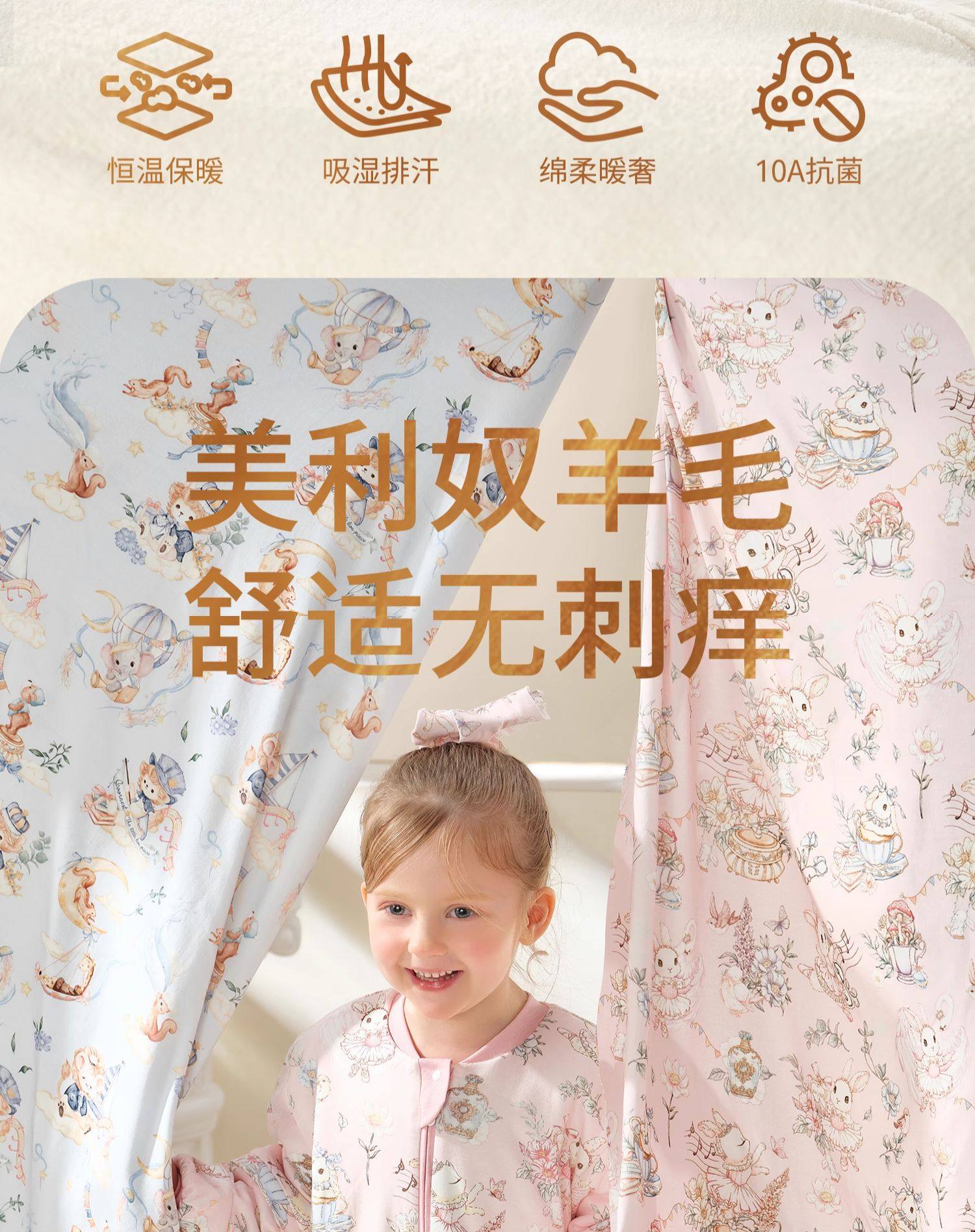 科巢[奢华羊毛]婴儿睡袋春秋冬款恒温宝宝儿童防踢被子四季通用