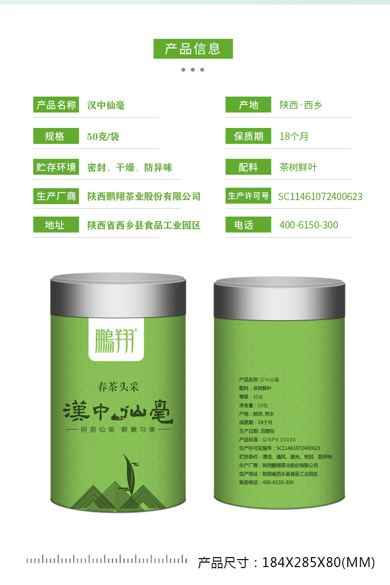 秦岭高山明前头采汉中仙豪50克罐装