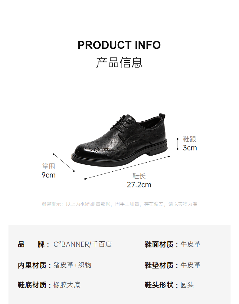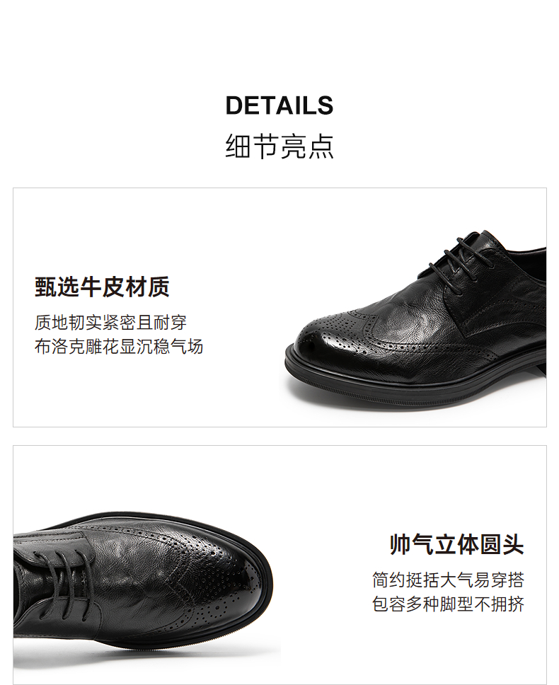 千百度男鞋英伦风大头皮鞋透气男士休闲商务正装皮鞋A25120132