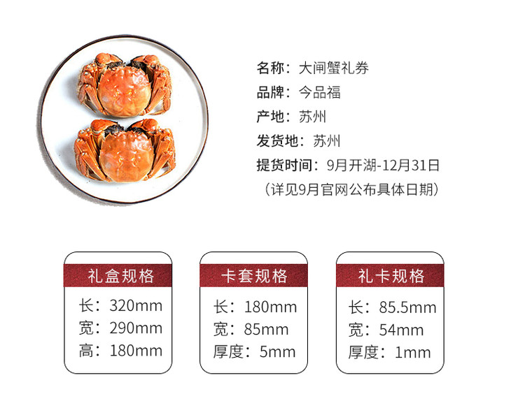 今品福 阳澄湖大闸蟹1888型(母蟹2.5两 8只)[福利品]