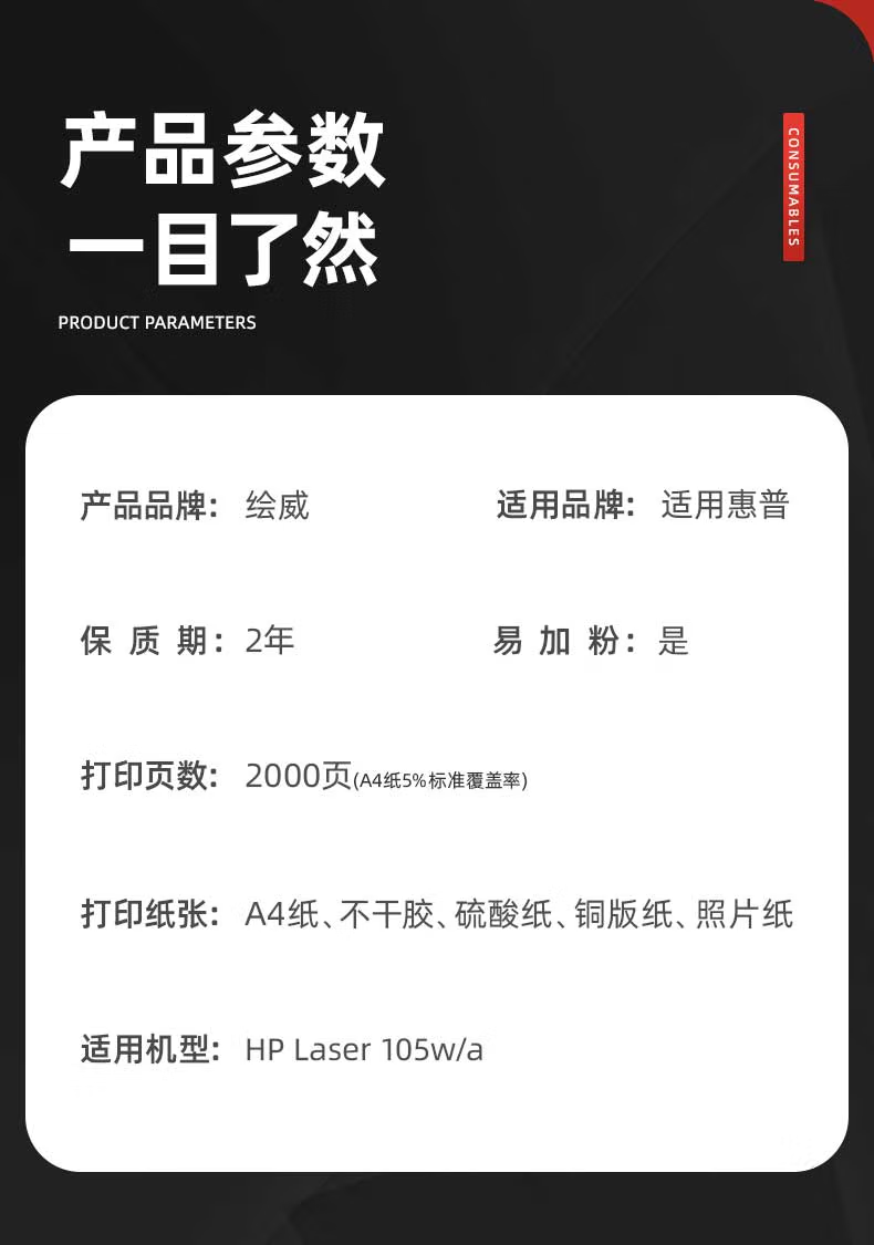 绘威105w 105a硒鼓适用惠普HP Laser 105w打印机硒鼓 粉盒 105a墨盒 墨粉盒