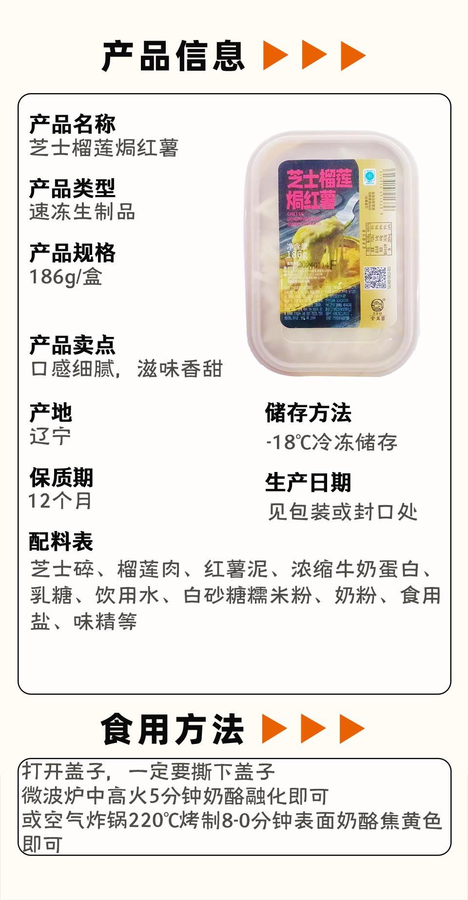 金禹圆芝士系列(芝士阿方索芒果焗南瓜/芝士玉米/耶鲁芝士焗紫薯/芝士榴莲焗红薯/耶鲁芝士焗香芋) 186g/盒 35盒/件