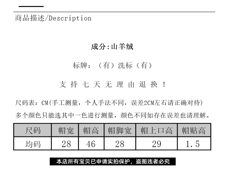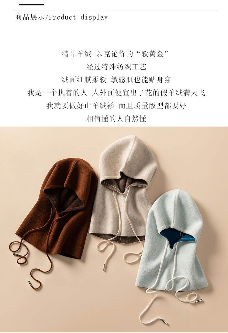 暖绒帽兜~羊绒法式秋冬纯色无檐帽子洋气新款时尚保暖R25116