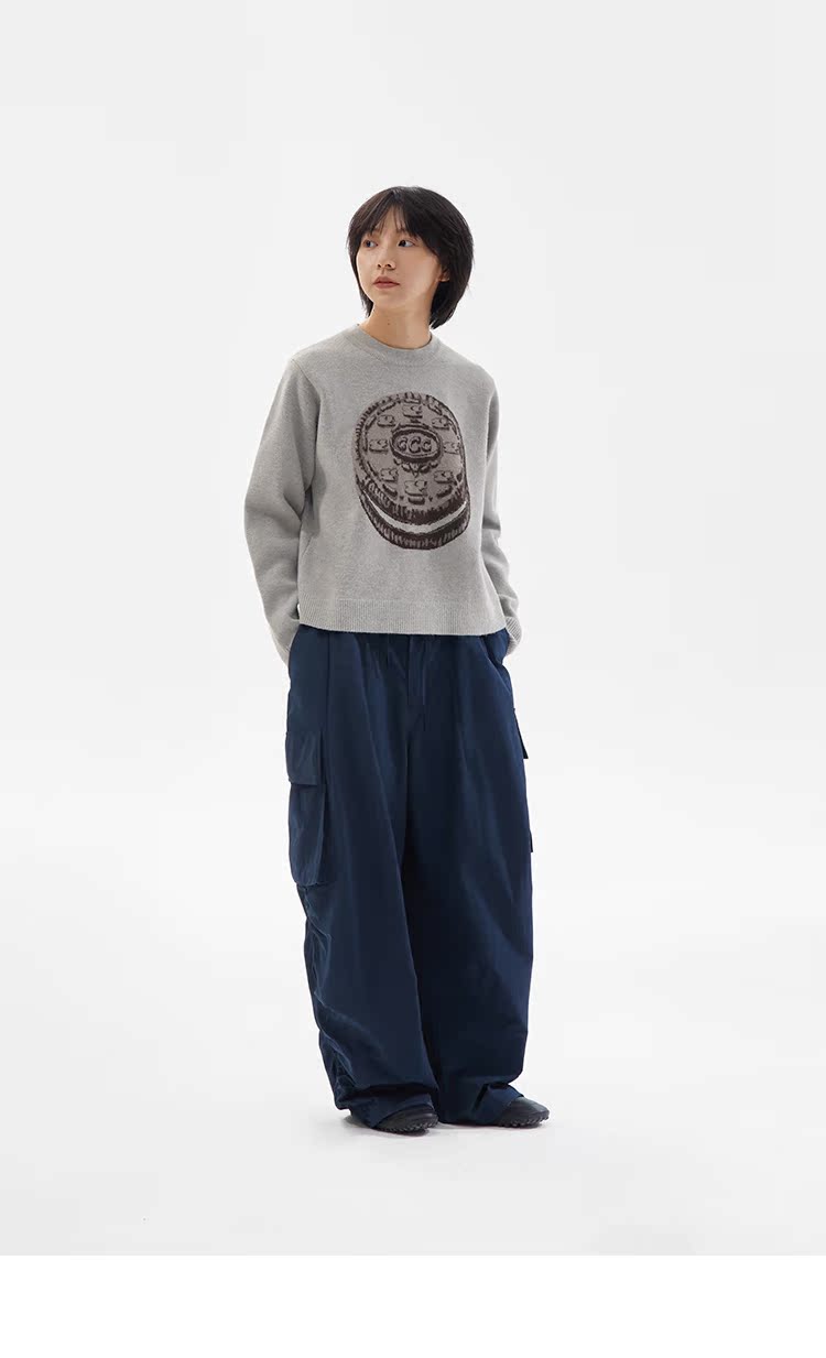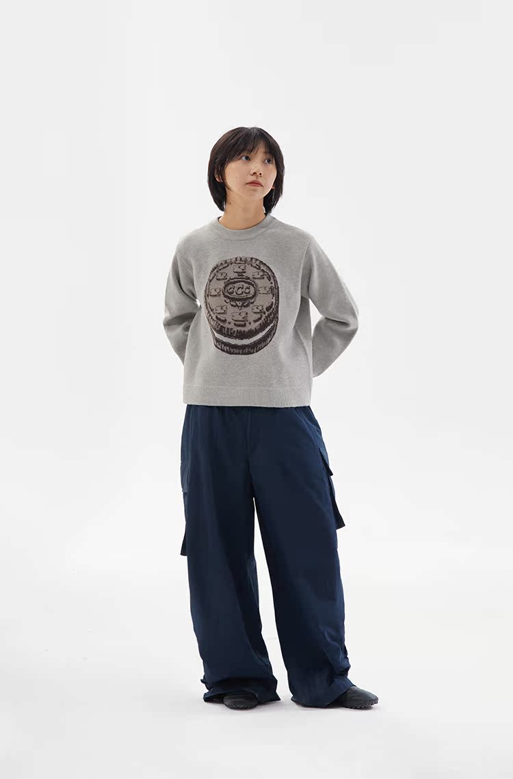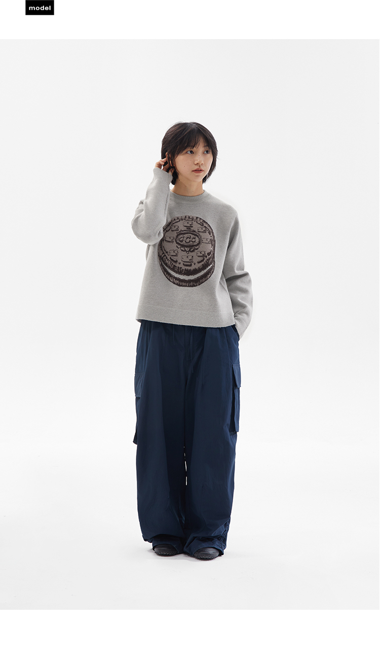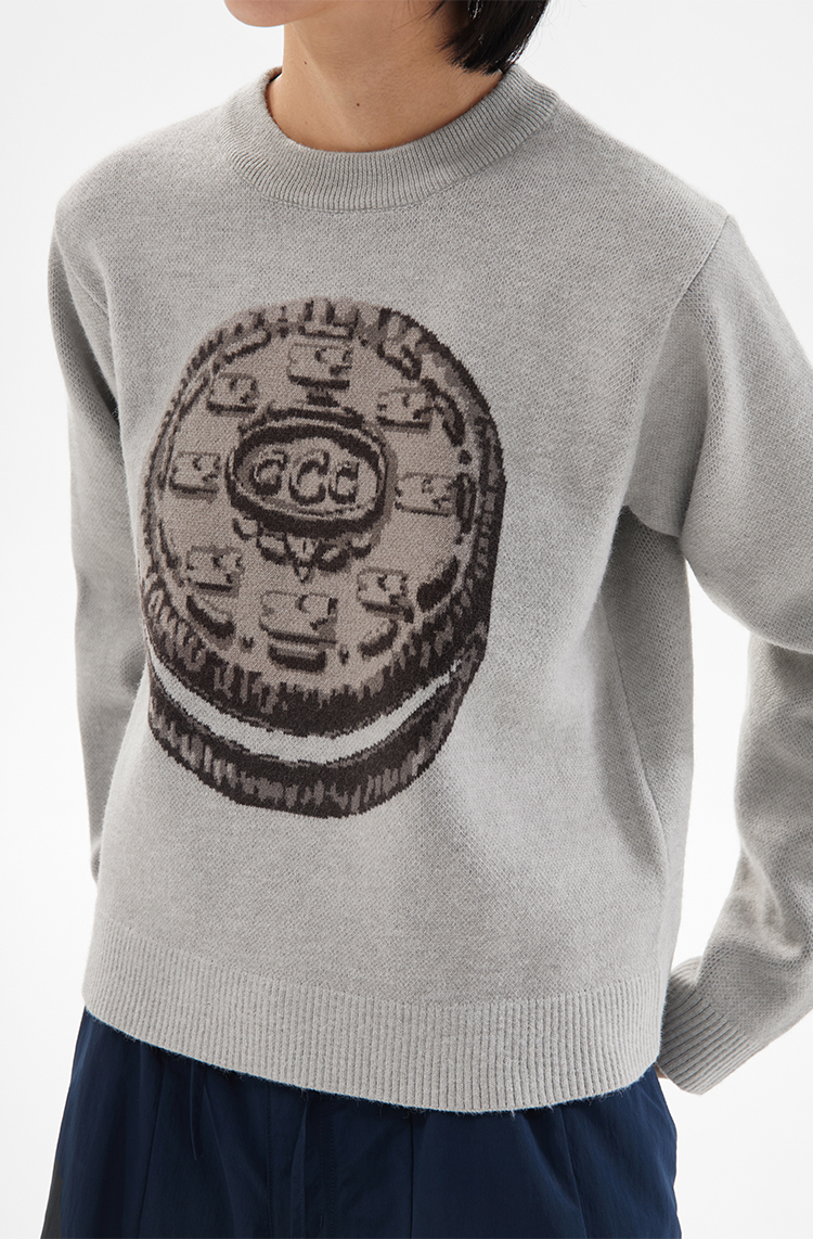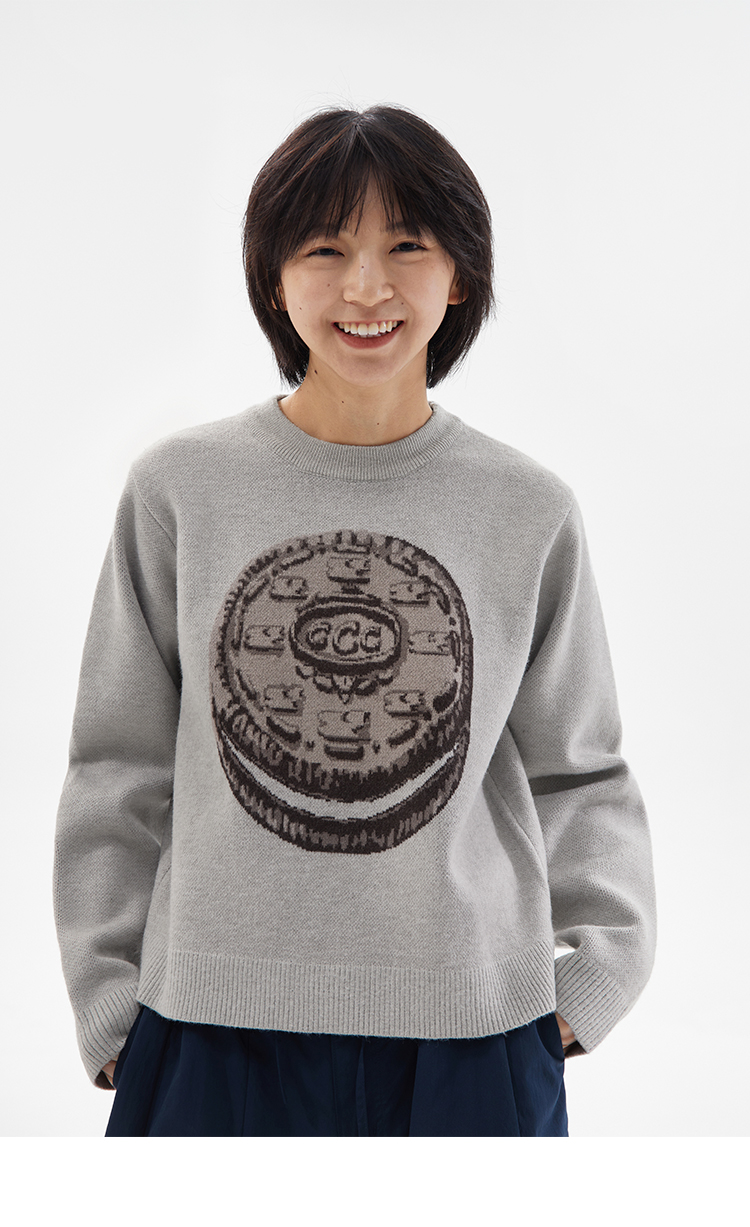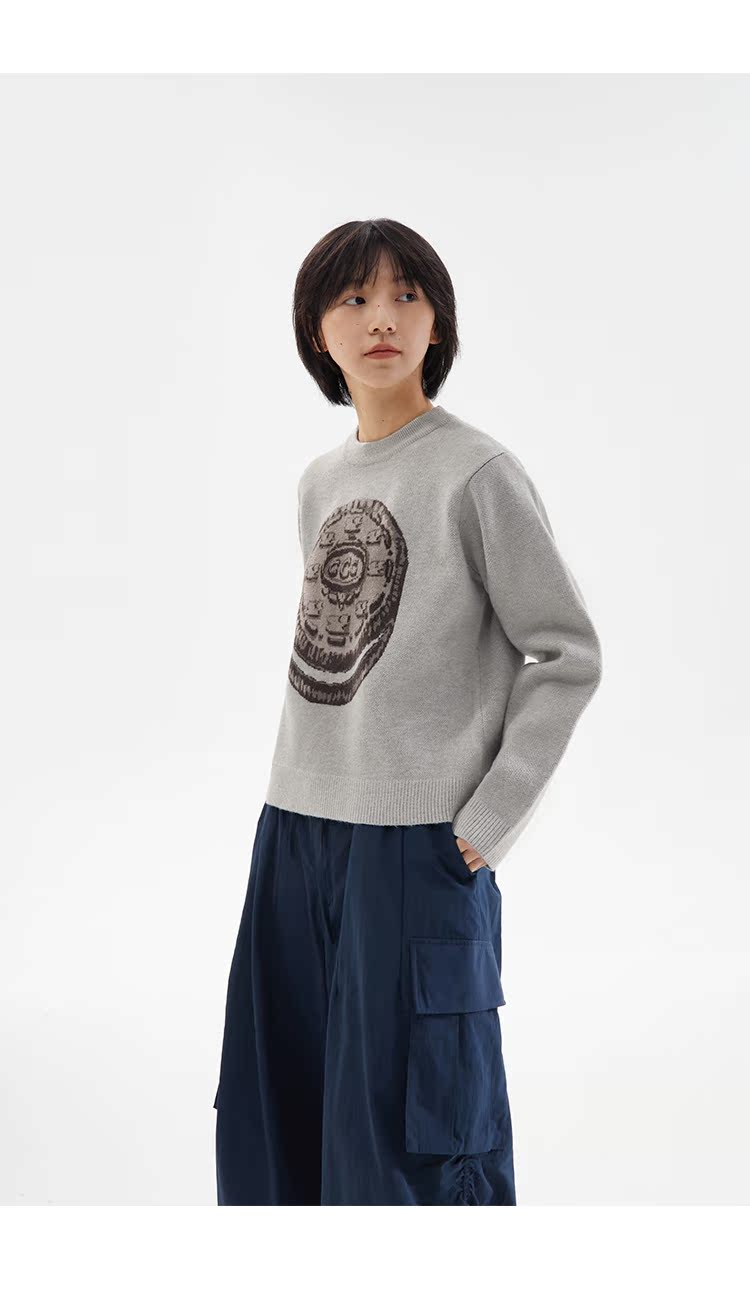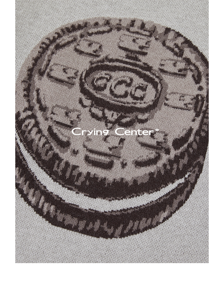 CryingCenter 浅灰色奥利奥童趣休闲保暖圆领毛衣 哭喊中心