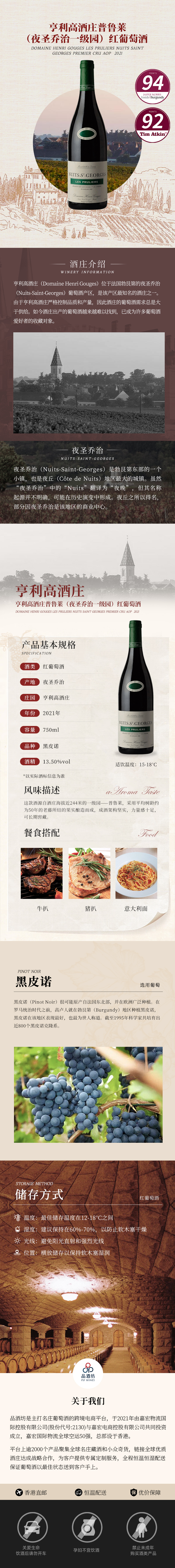 2021 Domaine Henri Gouges Les Pruliers Nuits Saint Georges Premier Cru AOP 亨利高酒庄普鲁莱(夜圣乔治一级园)红葡萄酒