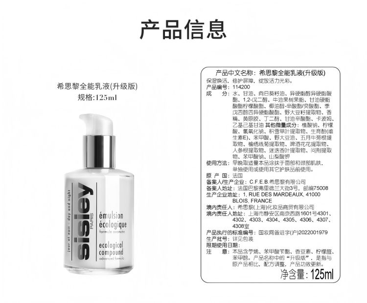 希思黎(Sisley)全能乳液125ml升级版