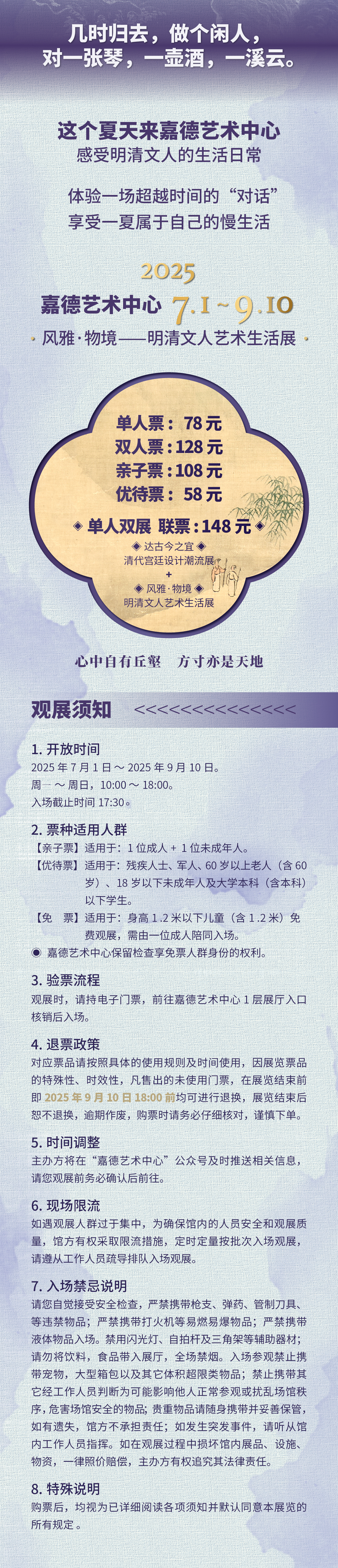 为回馈广大观众热情,满足观众观展需求。自7月28日(周一)起至9月10日,嘉德艺术中心周一不闭馆,正常开放❗️