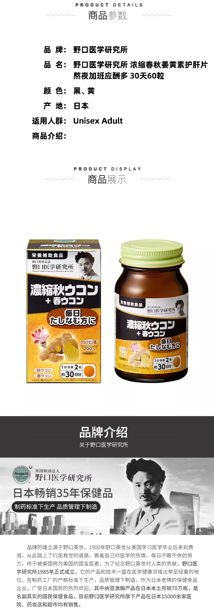 【日本直邮】Noguchi 野口医学研究所 浓缩春秋姜黄素护肝片 60粒