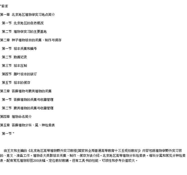 北京地区高等植物野外实习教程 8878 国家林业局普通高等教育十三五规划教材 中国林业出版社 正版畅销书