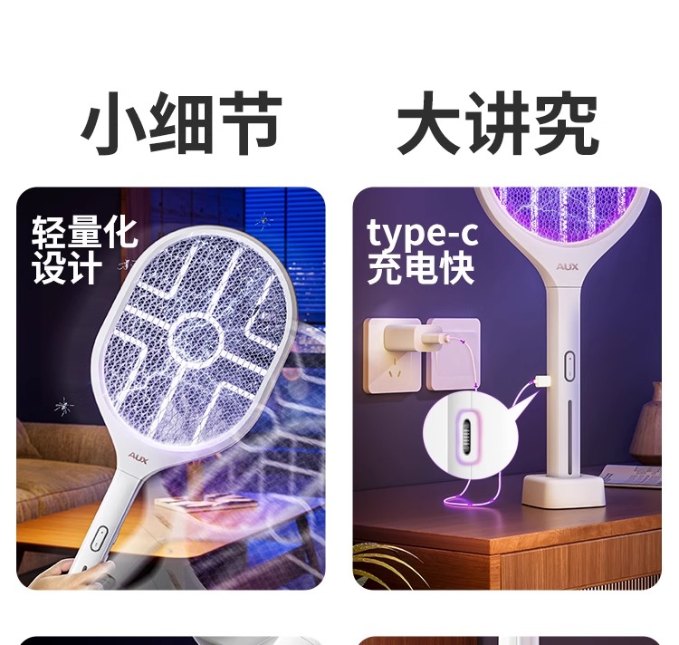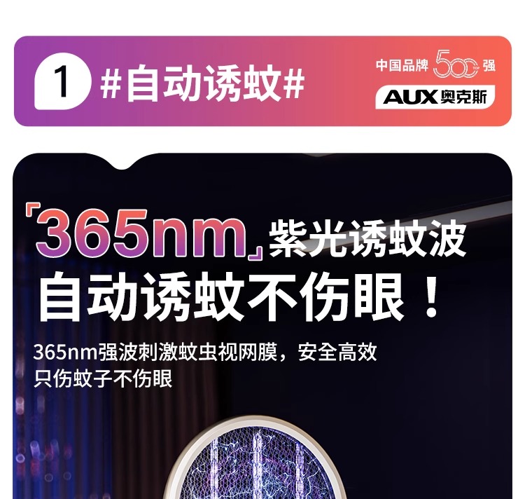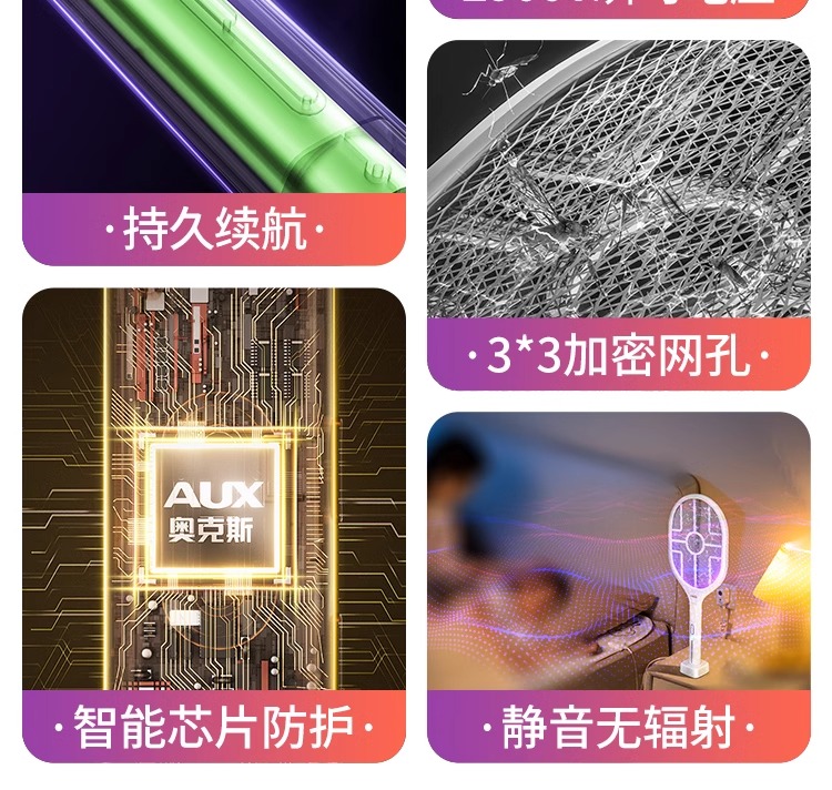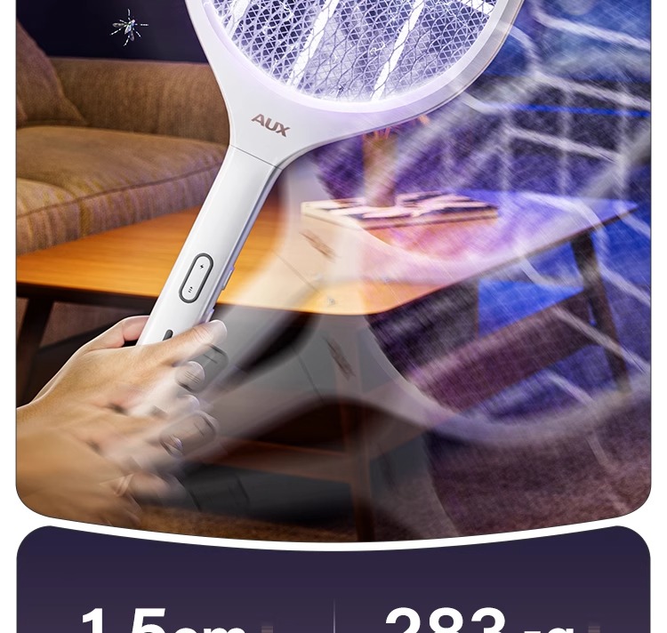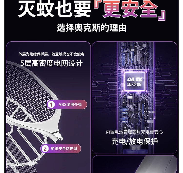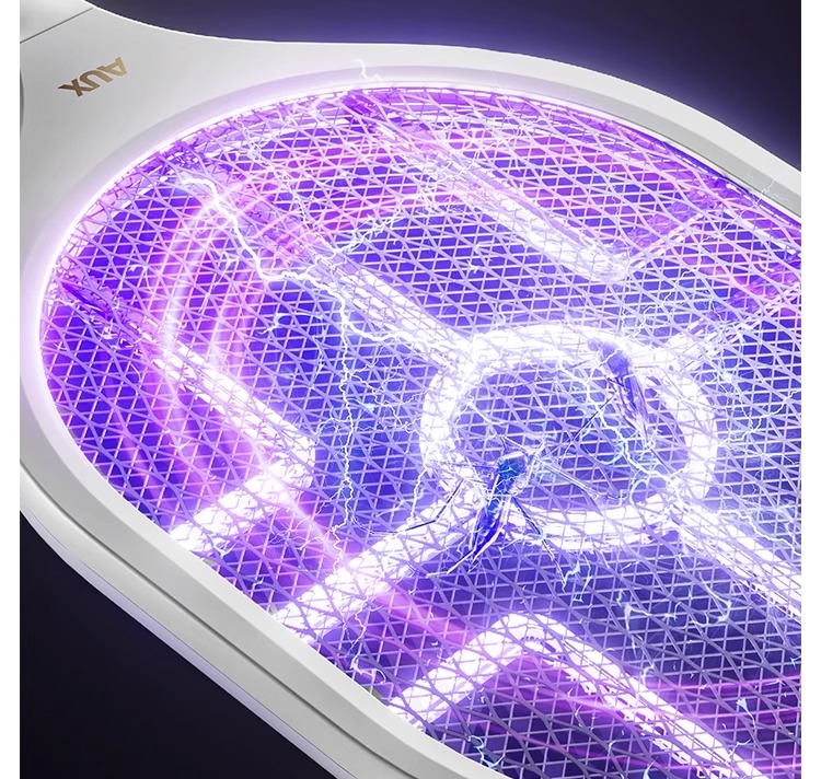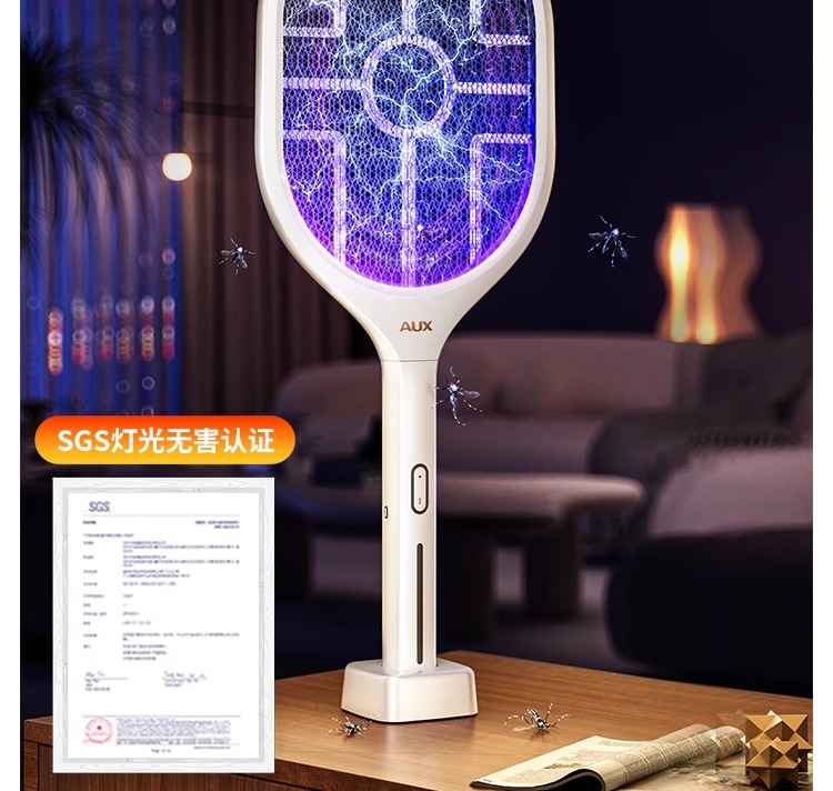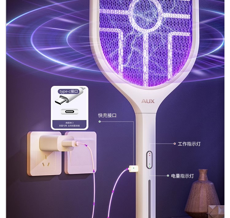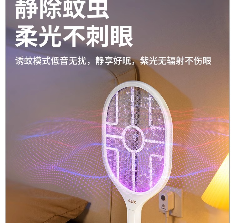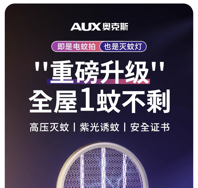 奥克斯(AUX)电蚊拍 充电式灭蚊灯 紫光诱蚊灭蚊驱蚊神器 【灯拍两用】6颗紫光珠+智能数显+大网面