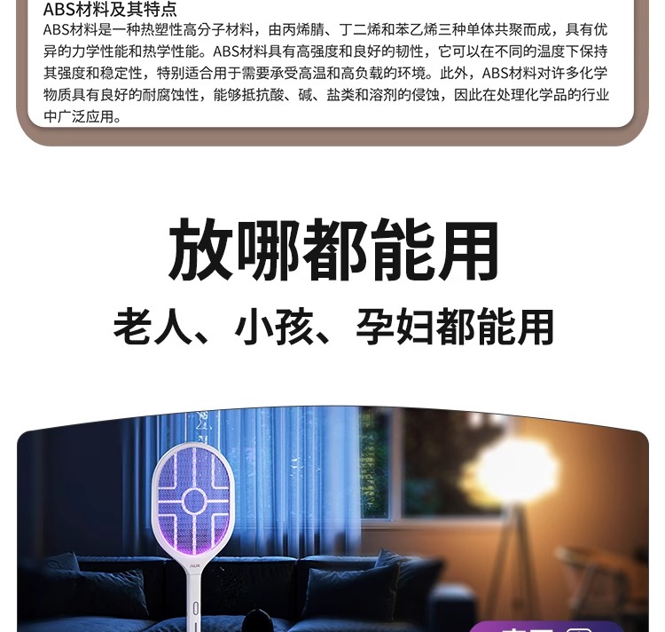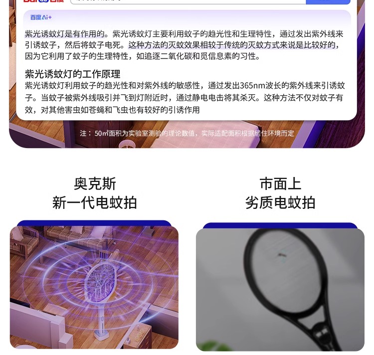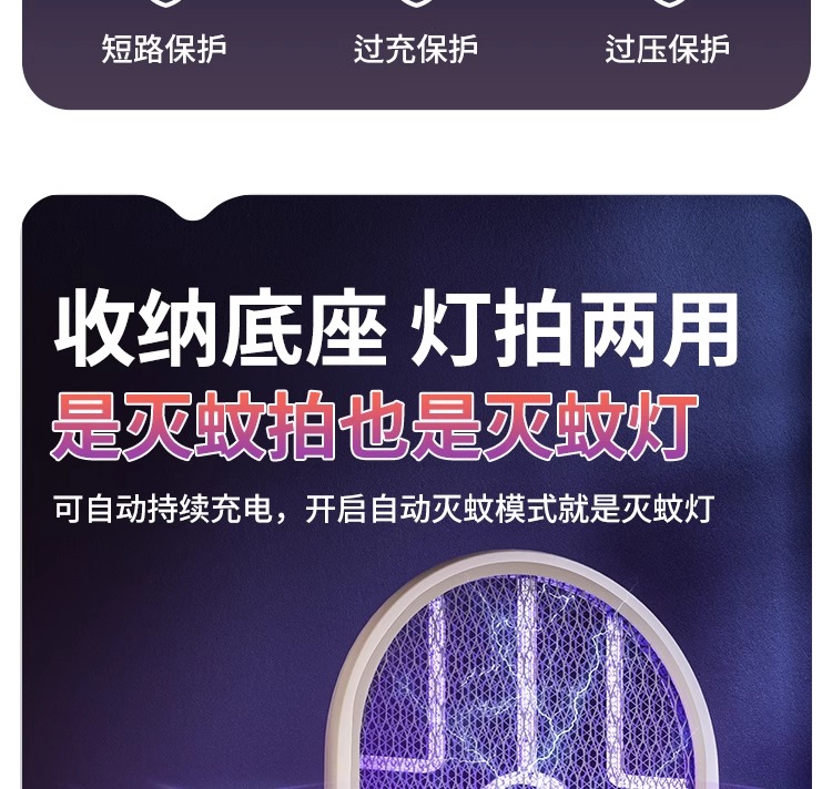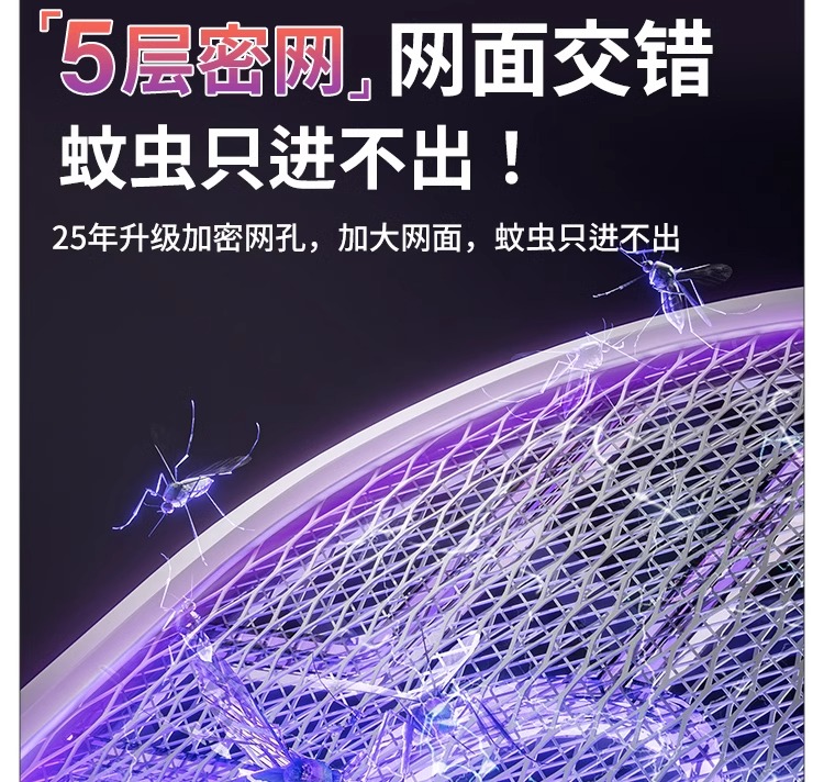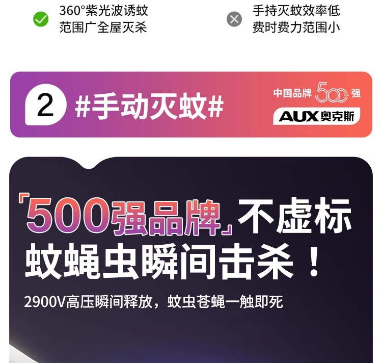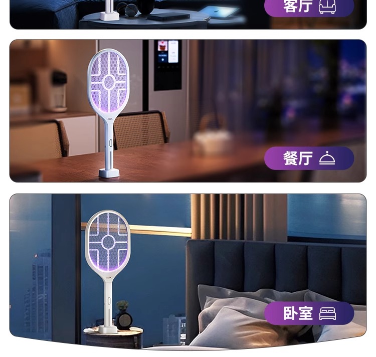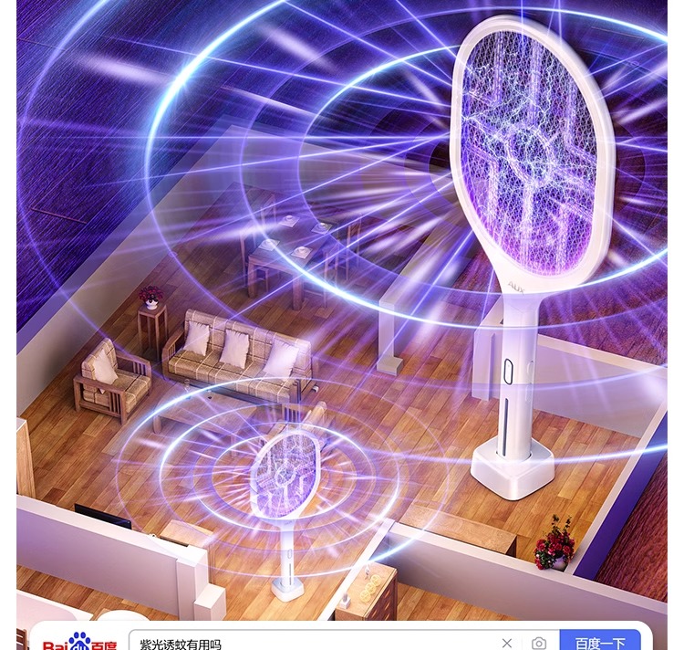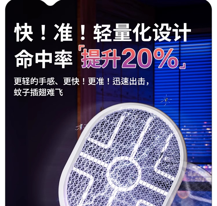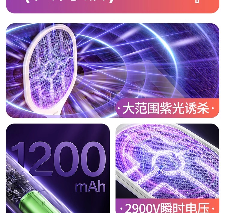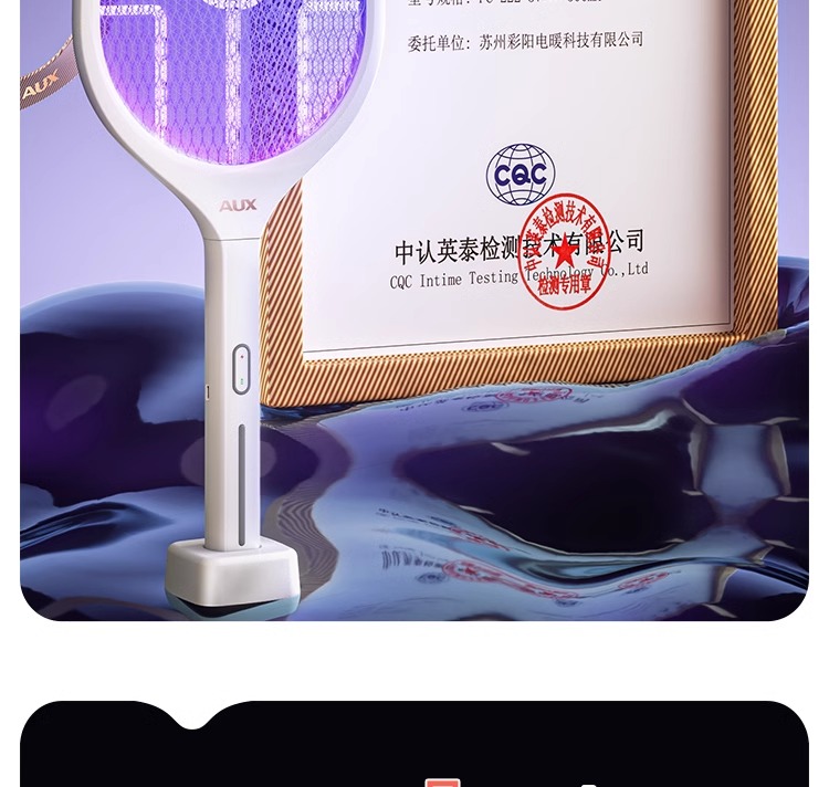 奥克斯(AUX)电蚊拍 充电式灭蚊灯 紫光诱蚊灭蚊驱蚊神器 【灯拍两用】6颗紫光珠+智能数显+大网面