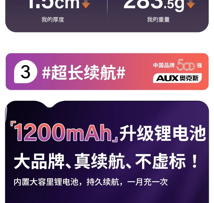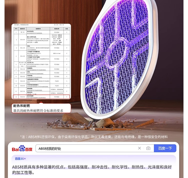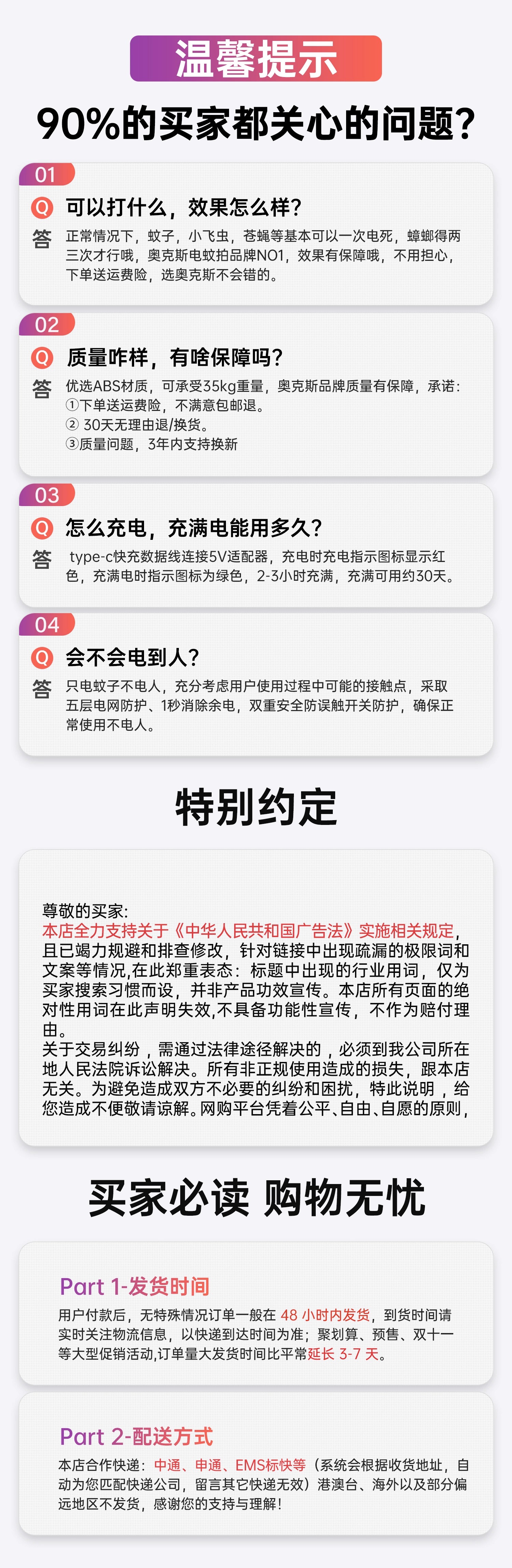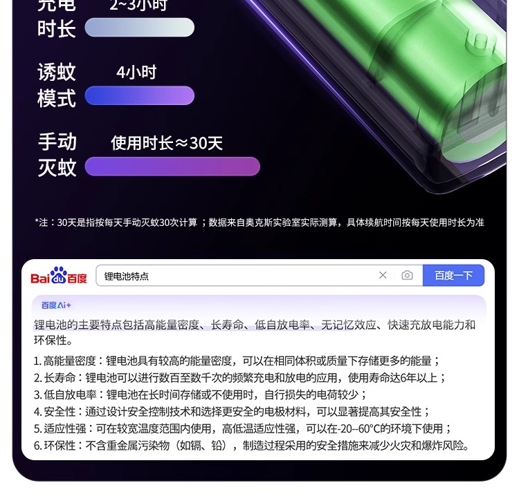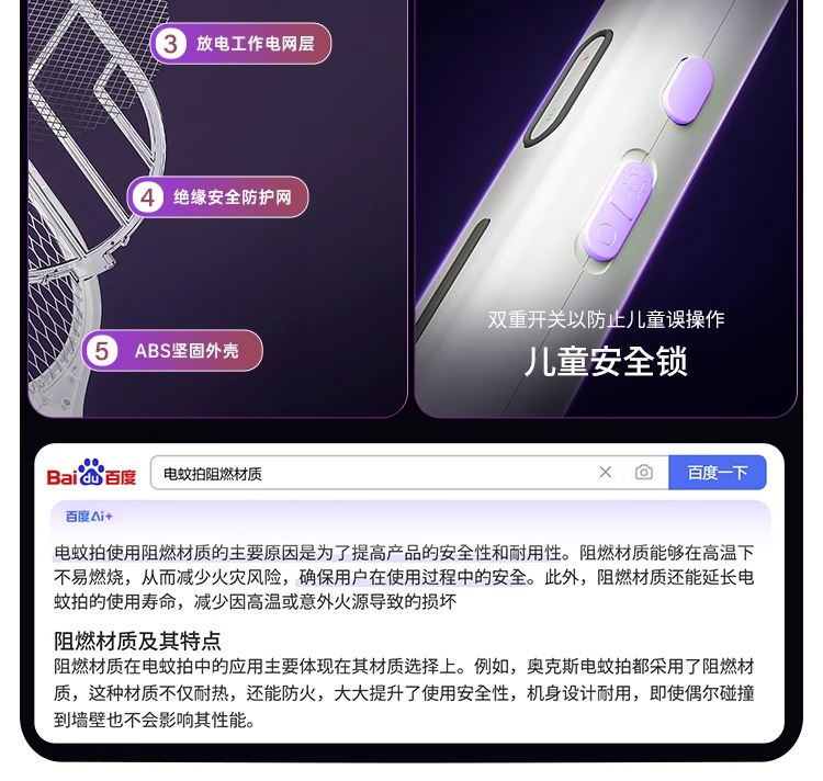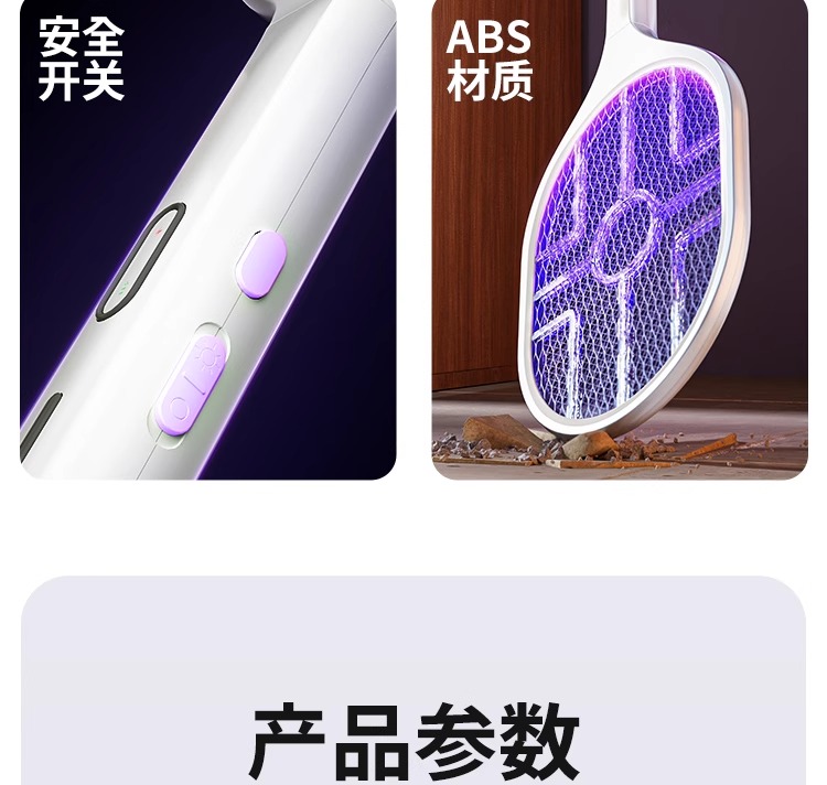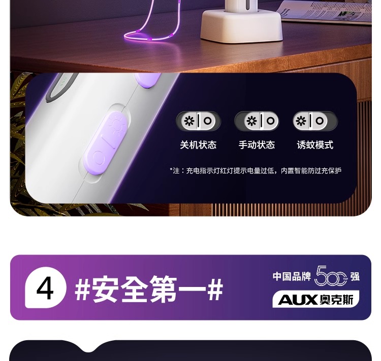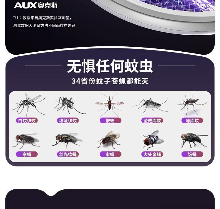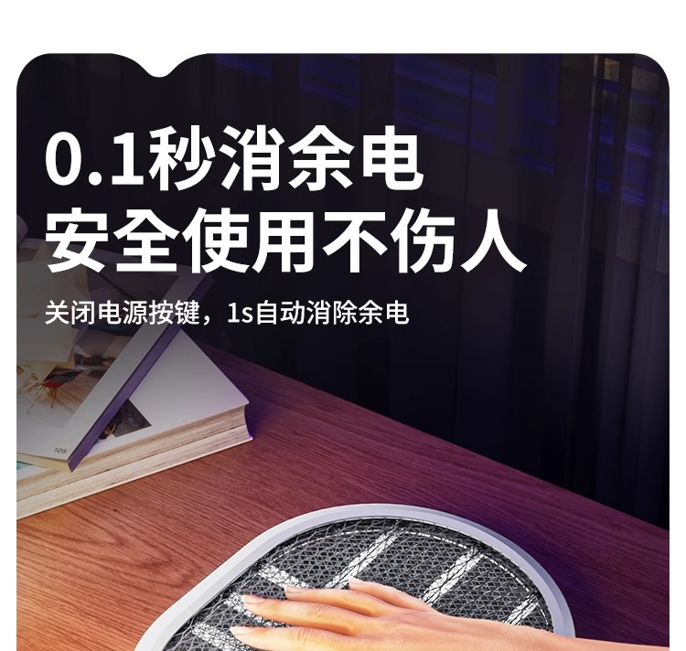奥克斯(AUX)电蚊拍 充电式灭蚊灯 紫光诱蚊灭蚊驱蚊神器 【灯拍两用】6颗紫光珠+智能数显+大网面