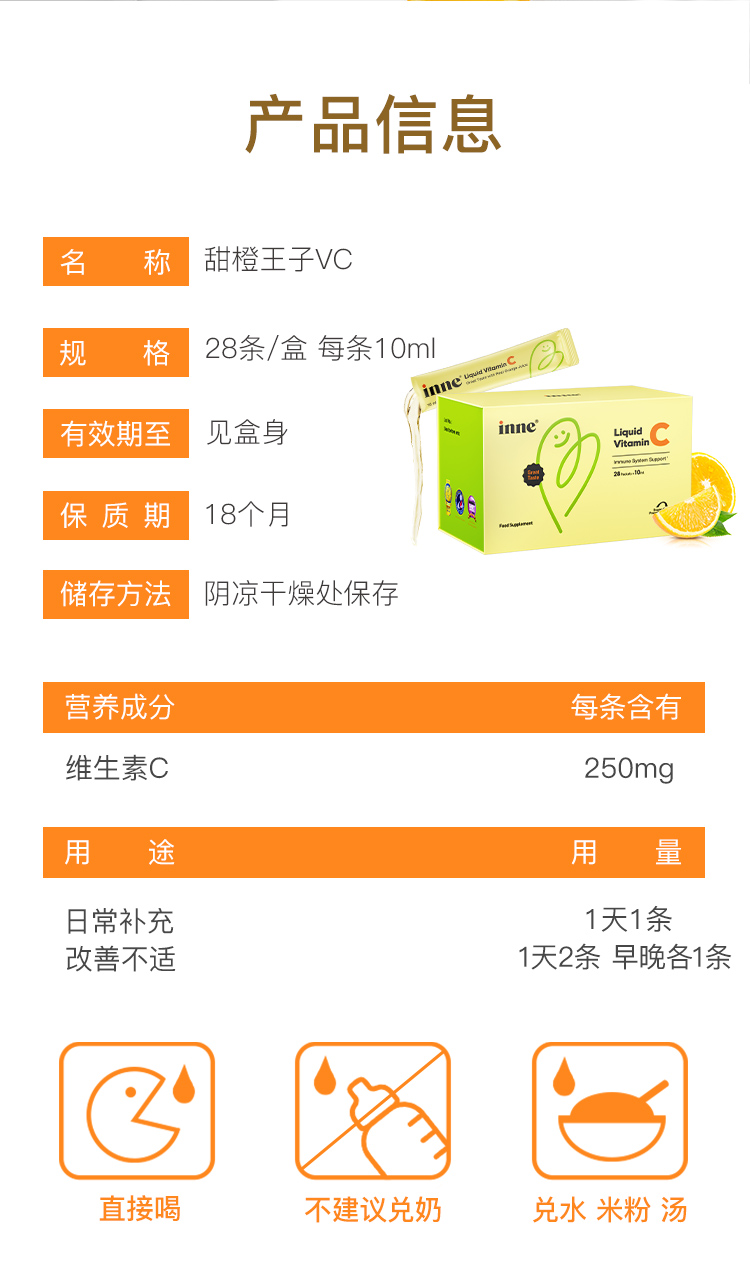 【跨境】inne维生素C甜橙VC全家可吃