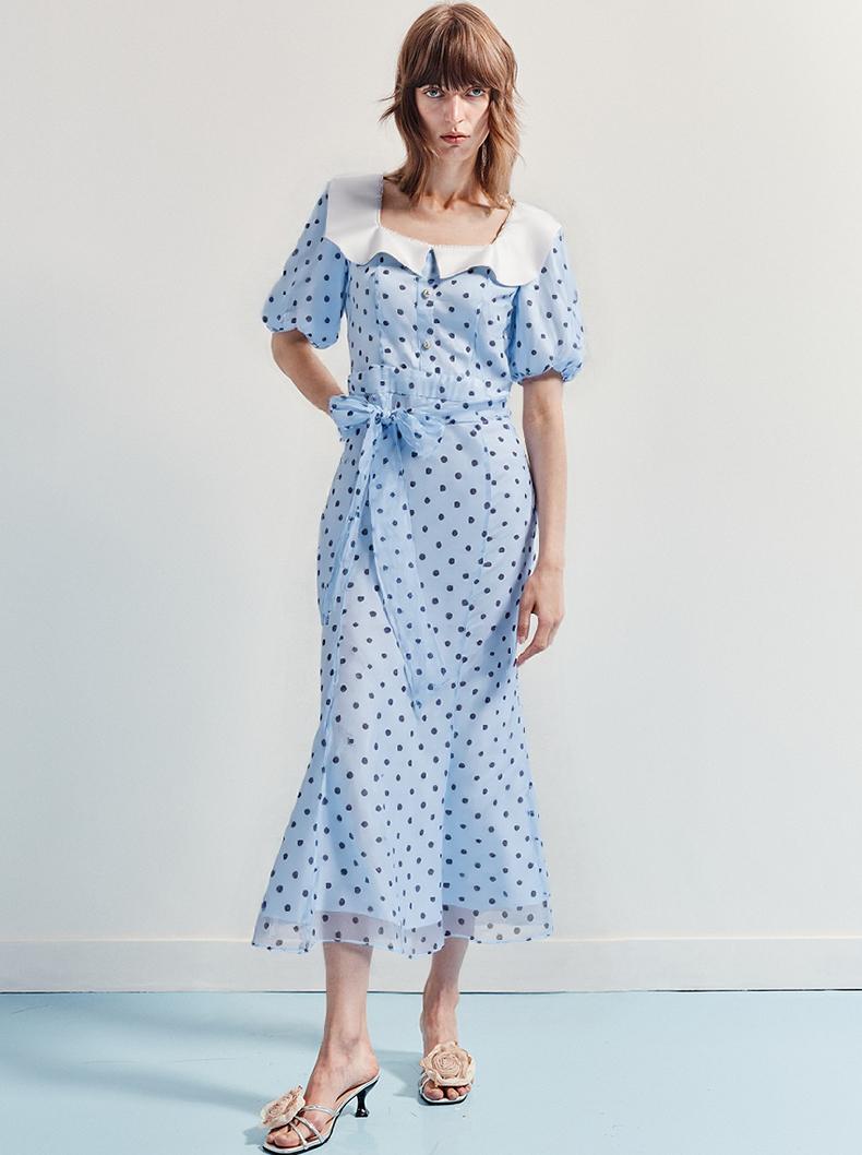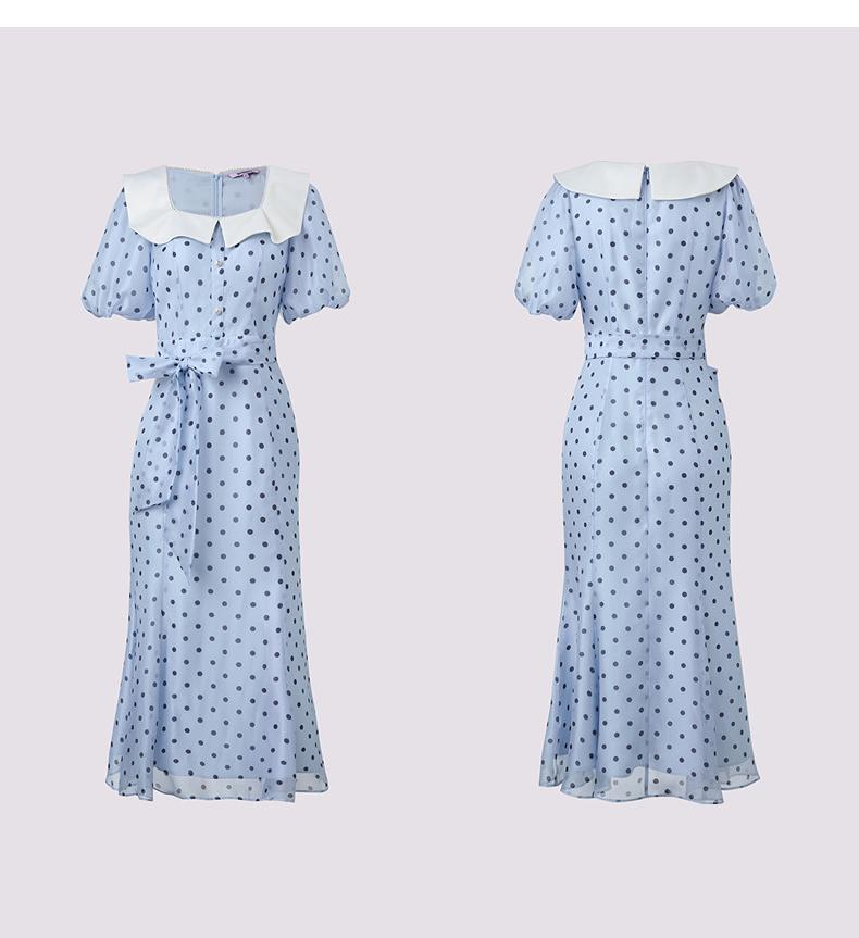 玛克门店发货:MAXRIENY法式复古感方领鱼尾连衣裙(货号:MF86DR018)