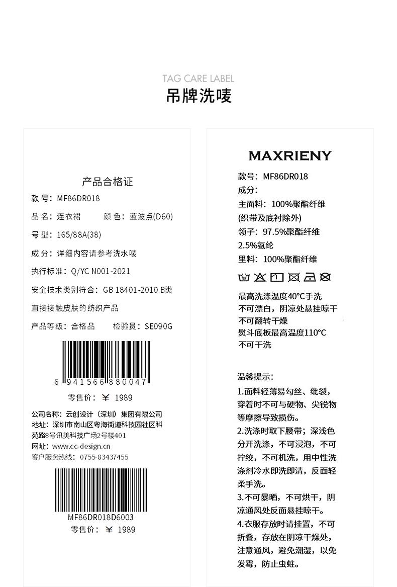 玛克门店发货:MAXRIENY浪漫优雅感连衣裙园艺风裙子修身(货号:MC85DR063)