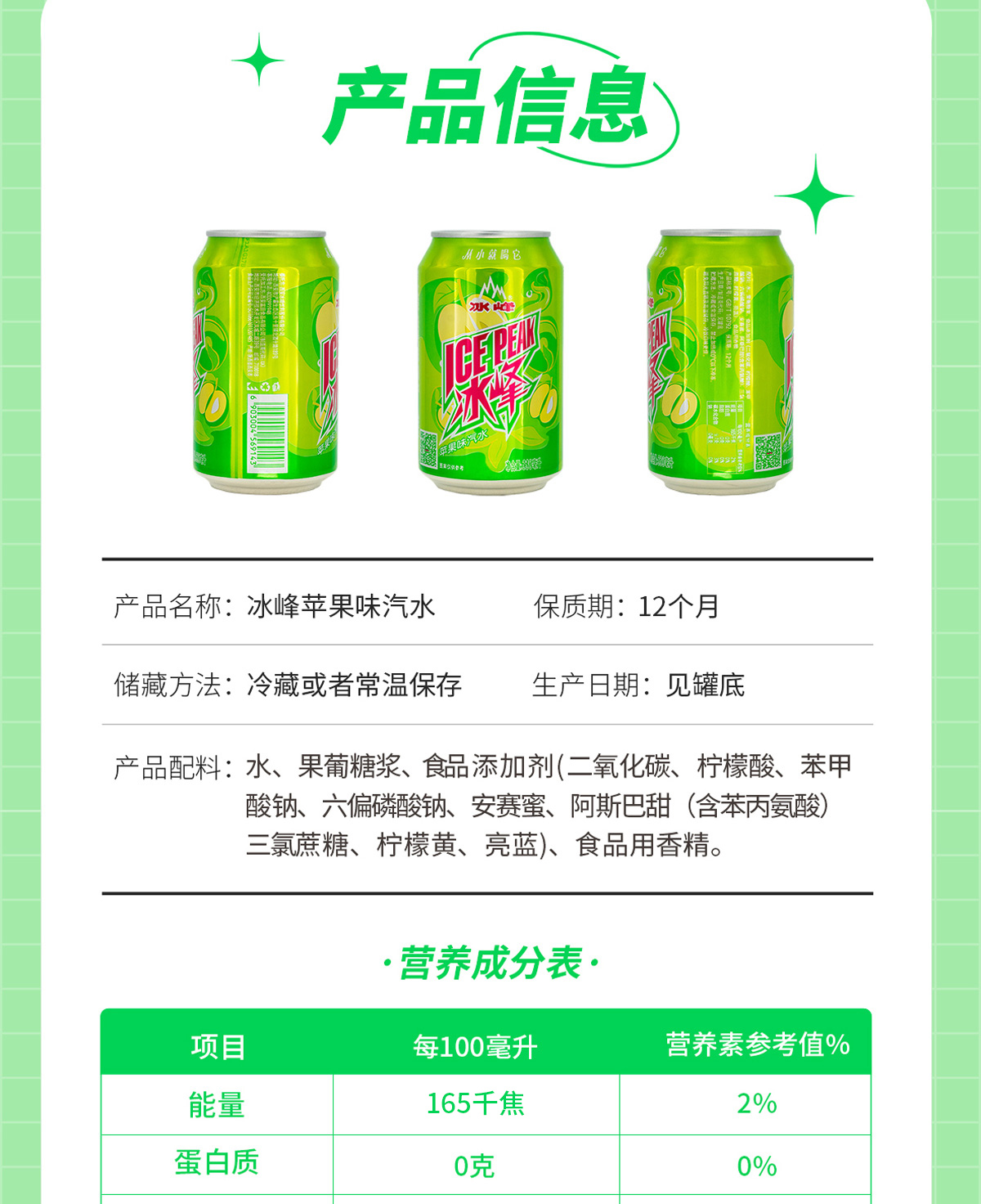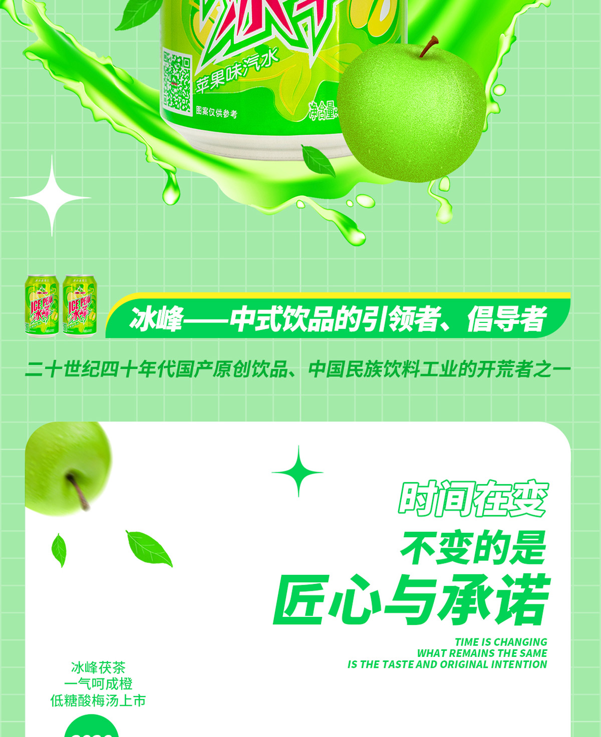 冰峰 苹果味汽水整箱 碳酸饮料 330ml*24罐装