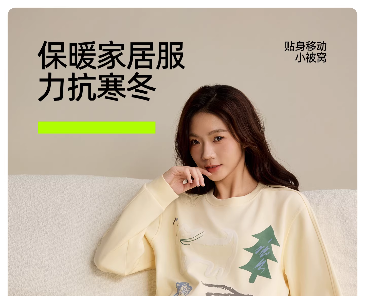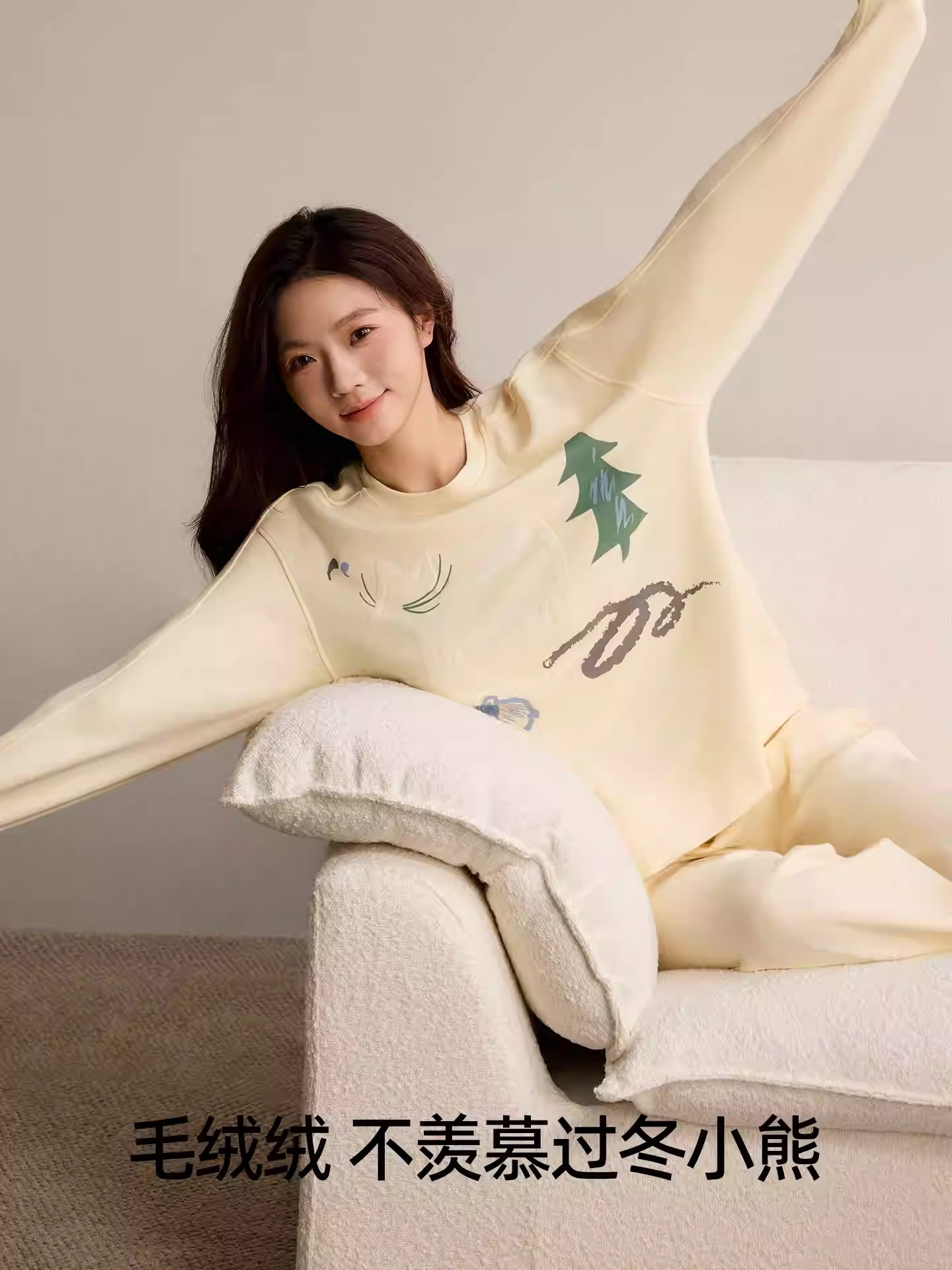 【有棵树天枢空气层情侣卫衣家居服】女士睡衣微绒磨毛2025秋冬新款睡衣女款套头