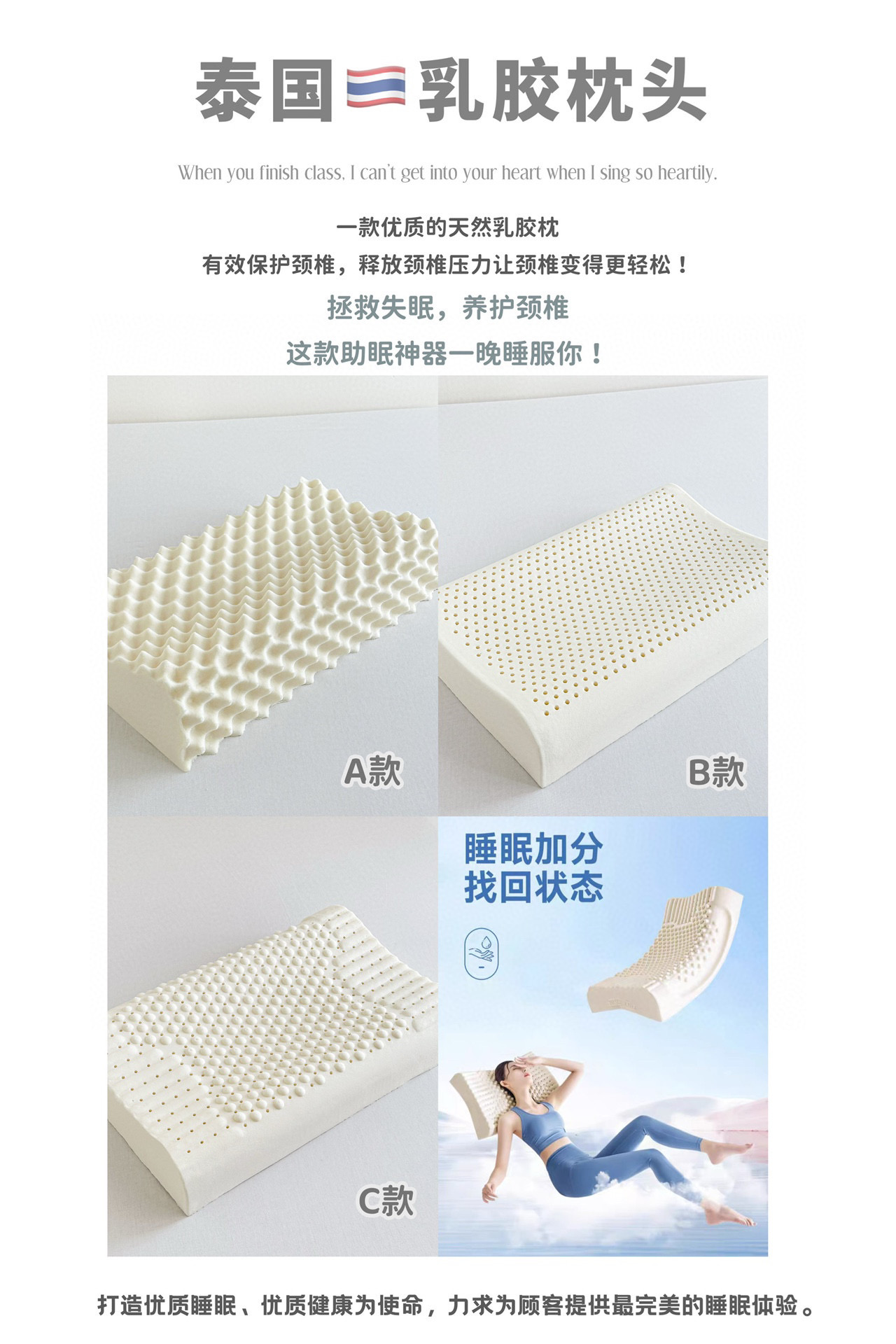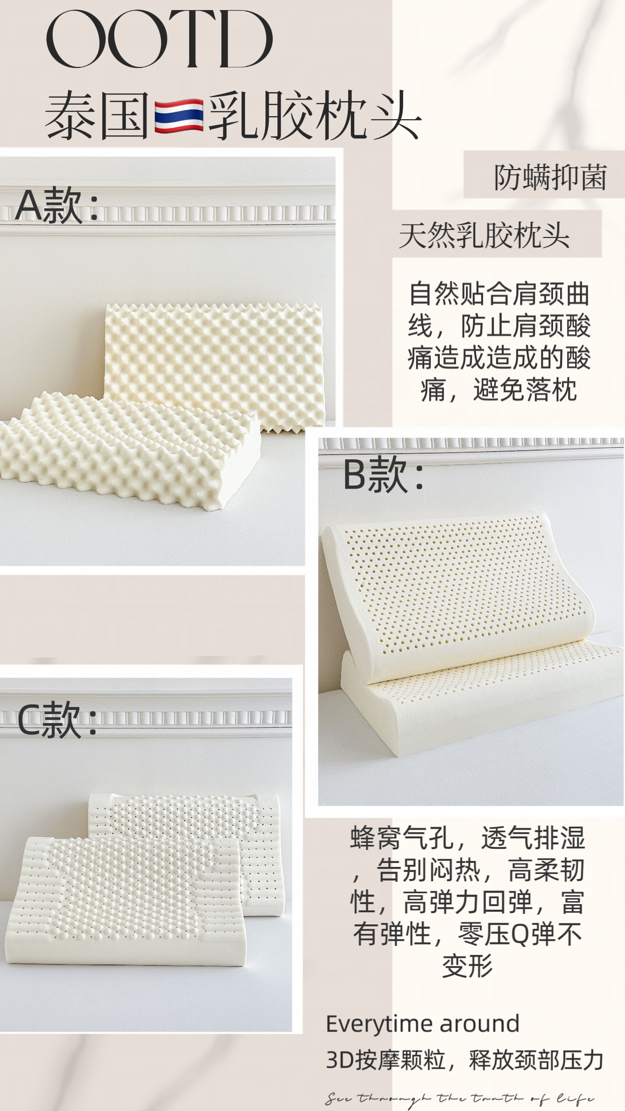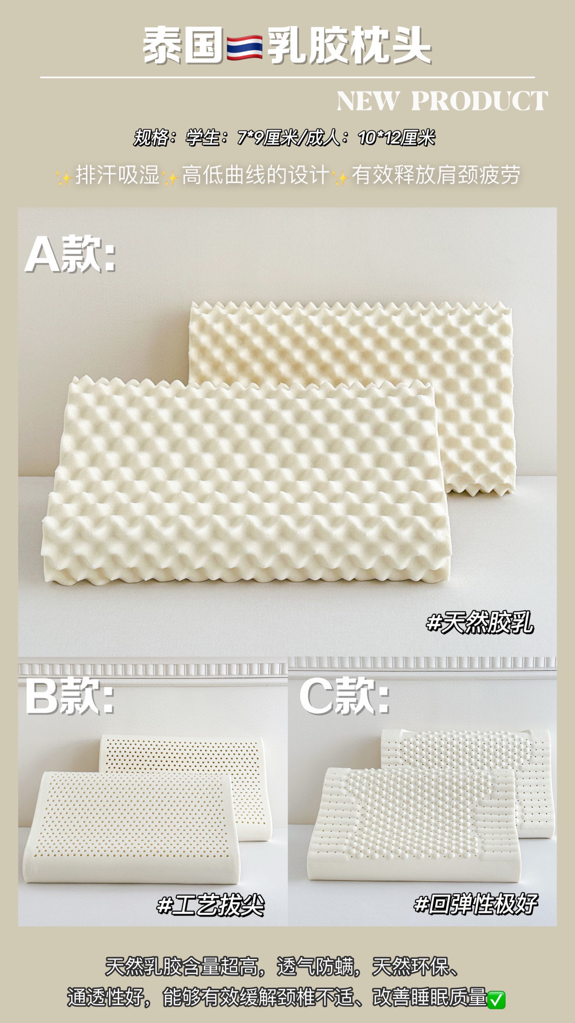【泰国原产百分百乳胶枕】天然乳胶!防螨抑菌透气排湿乳胶枕