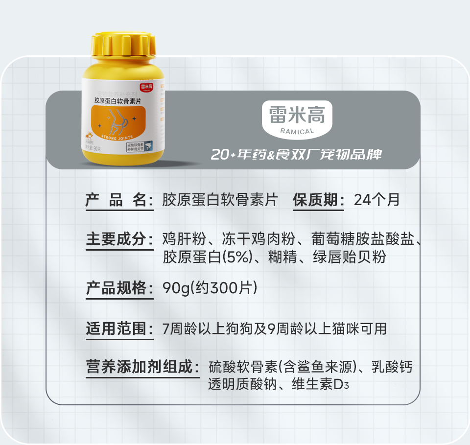 【第二件“半价”】Ramical雷米高胶原蛋白软骨素片鲨鱼软骨素狗狗关节折耳猫专用90g