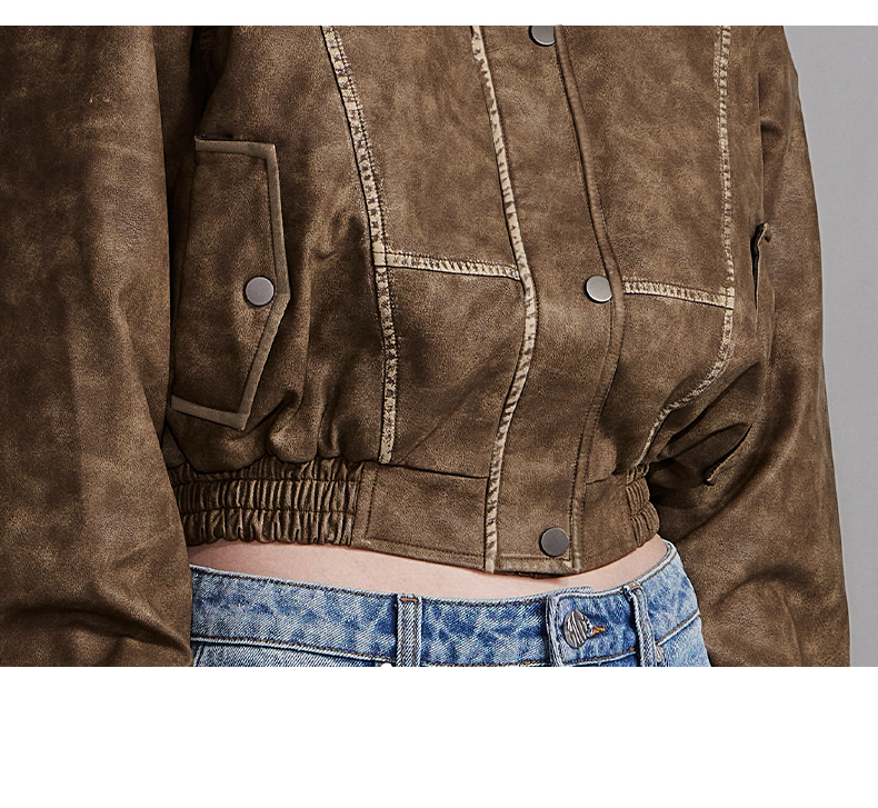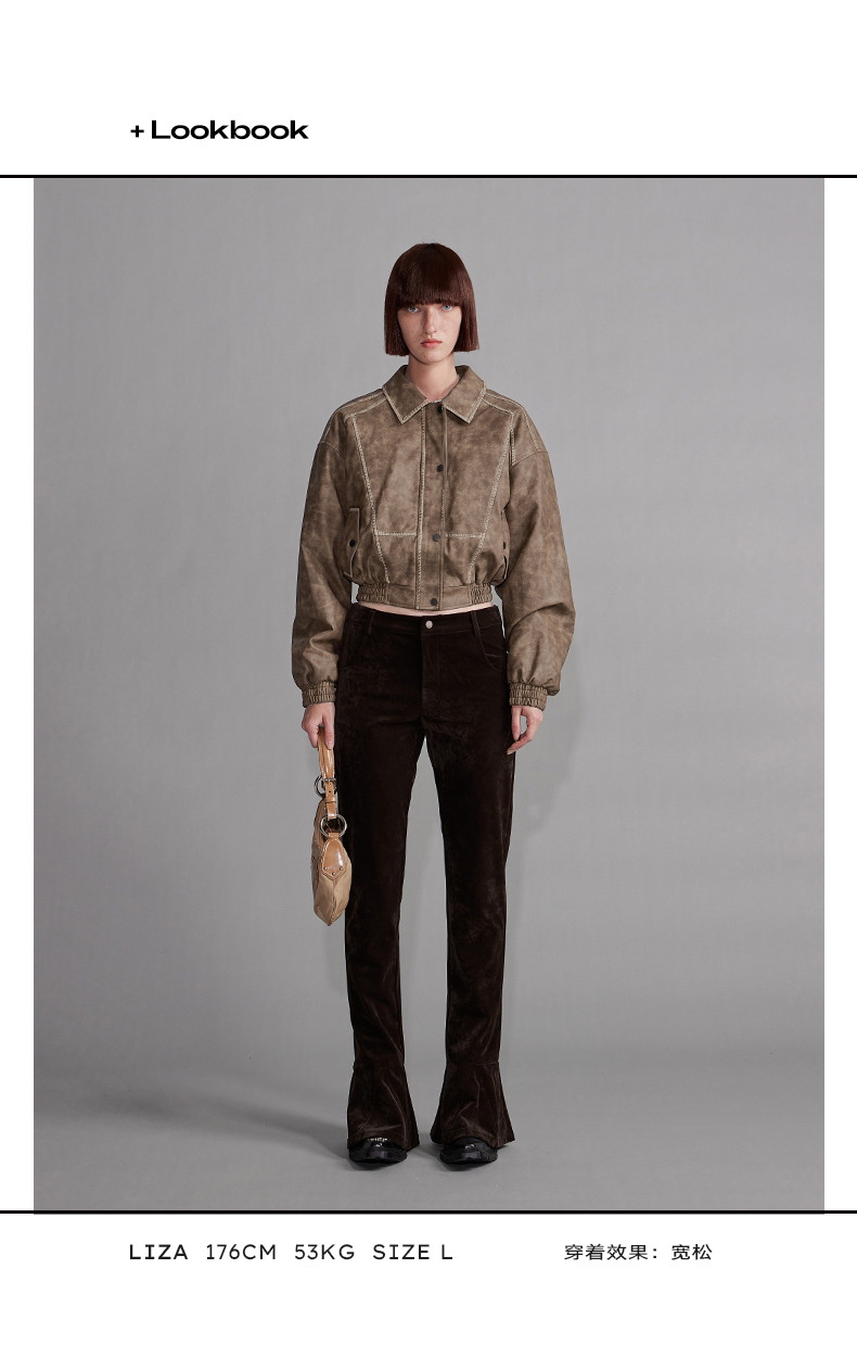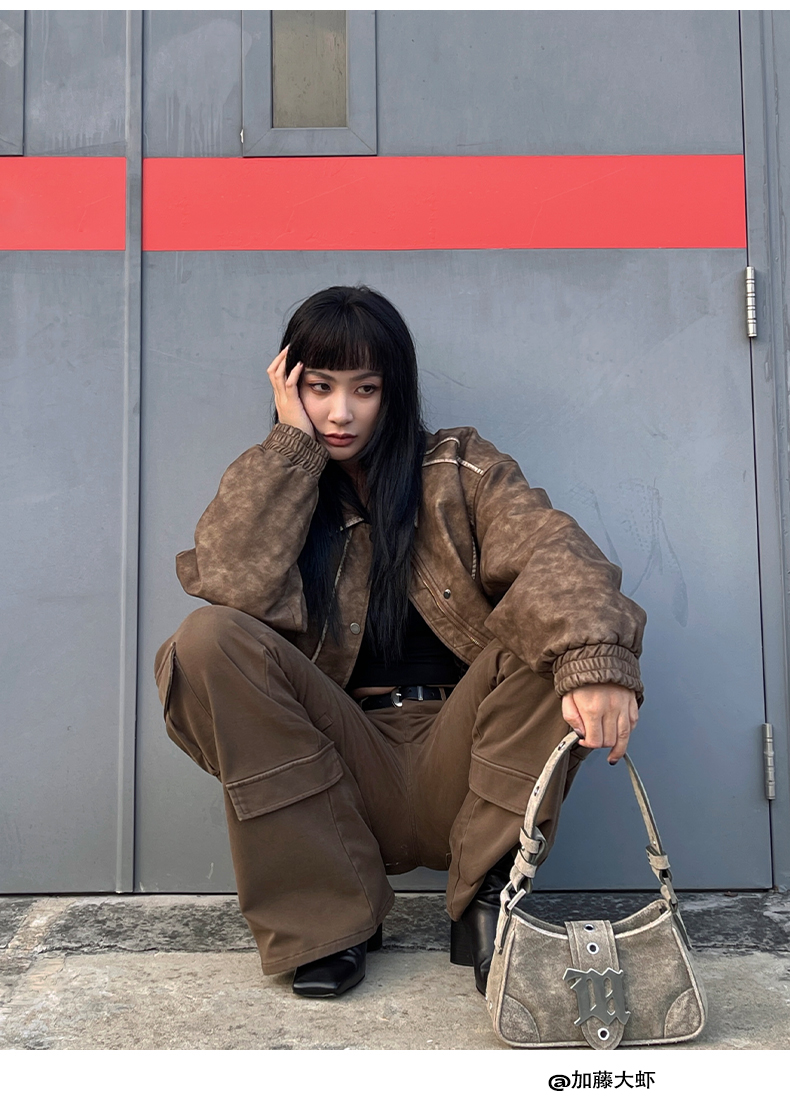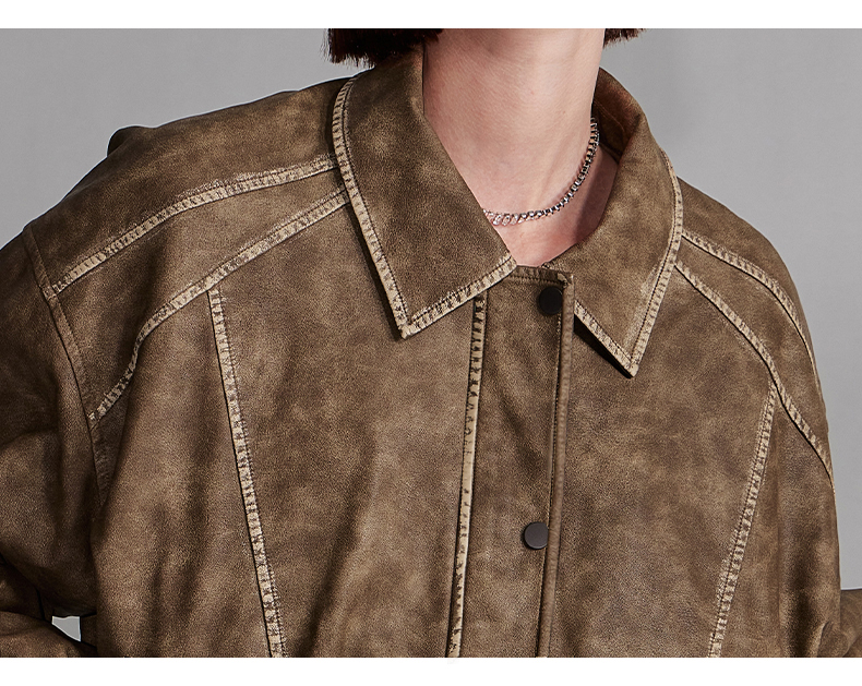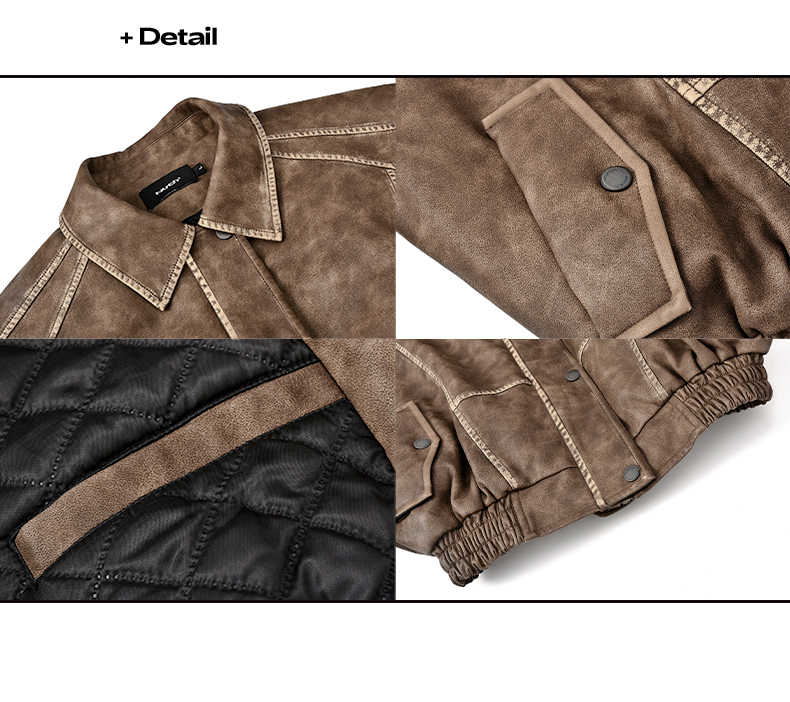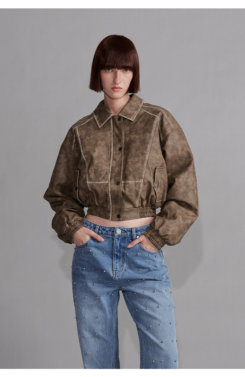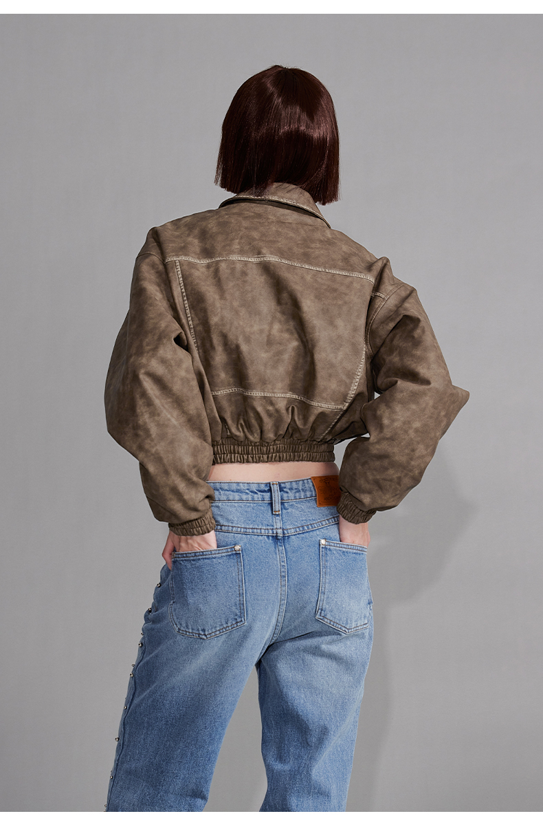NUTH“飞艇夹克”|棕色皮棉服洗水做旧复古宽松短款外套