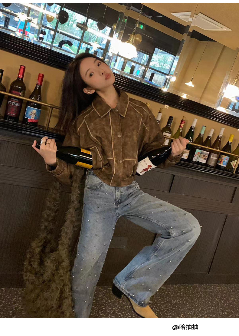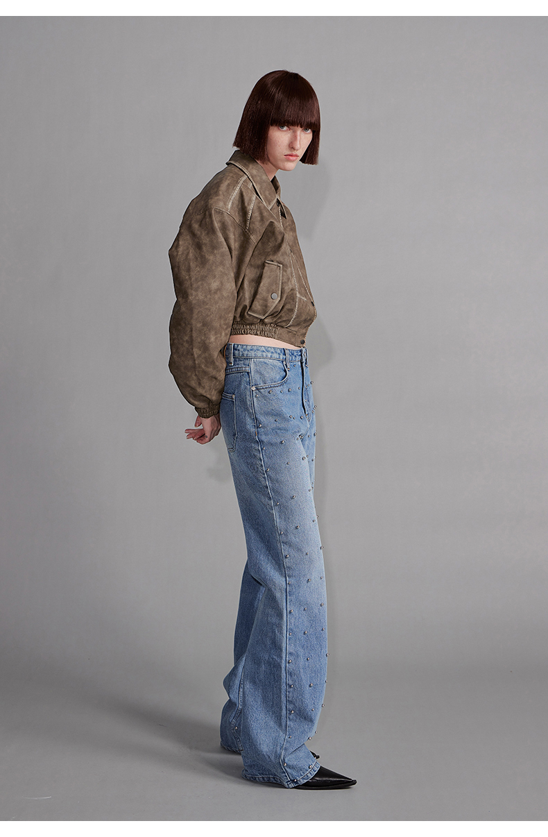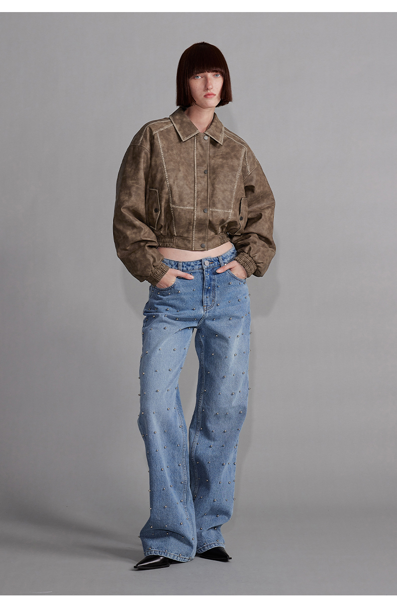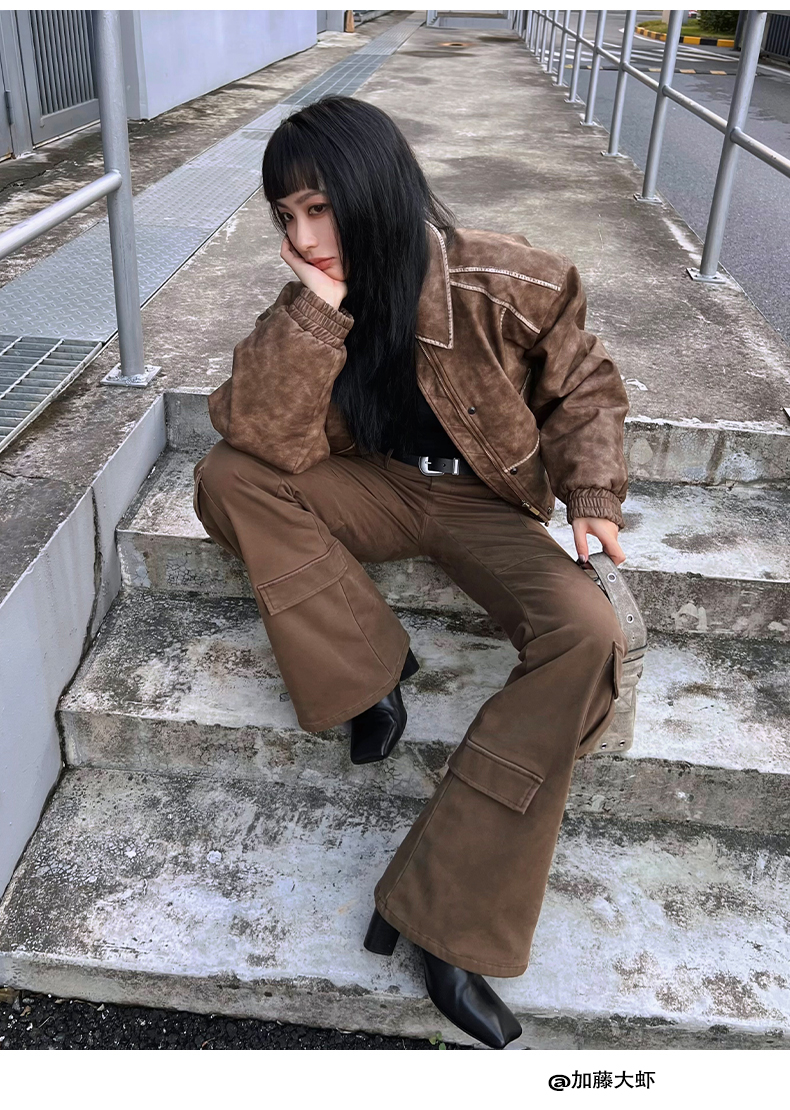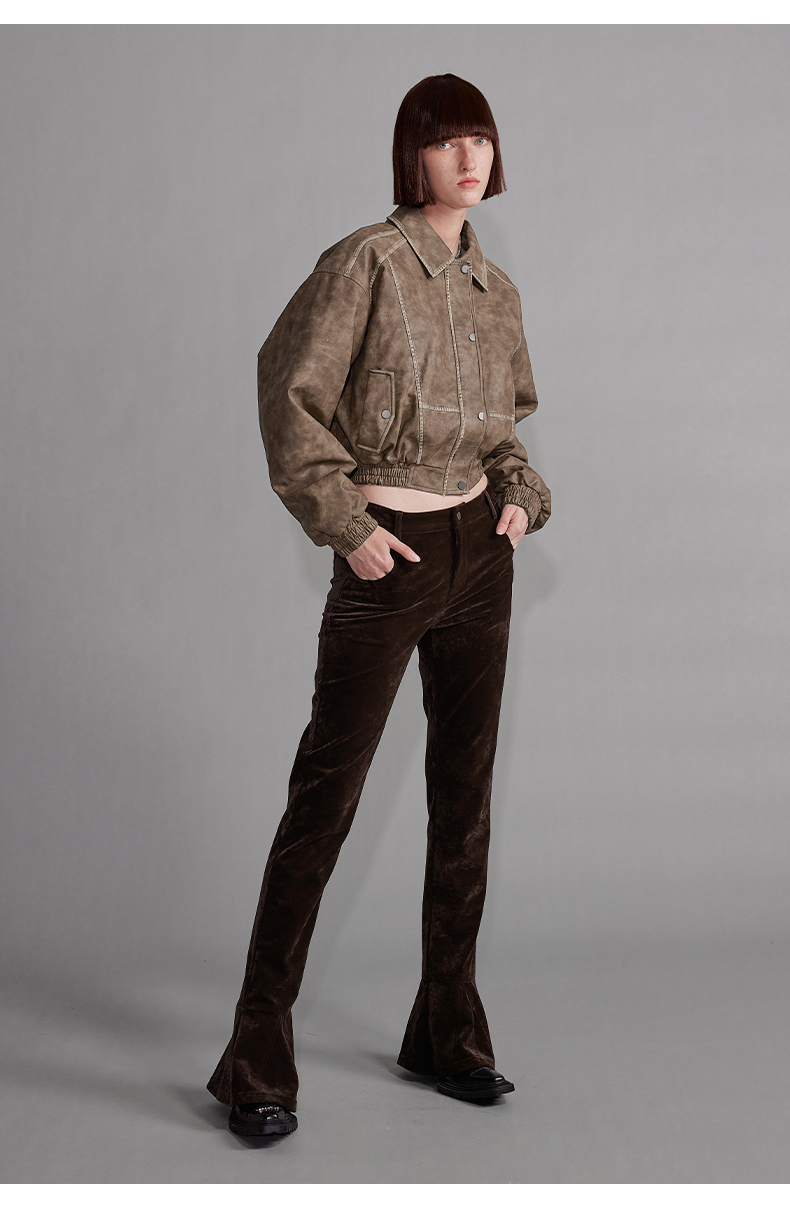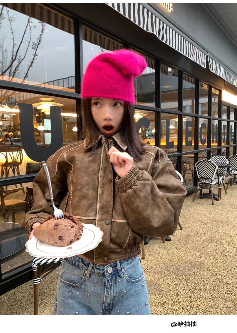 NUTH“飞艇夹克”|棕色皮棉服洗水做旧复古宽松短款外套