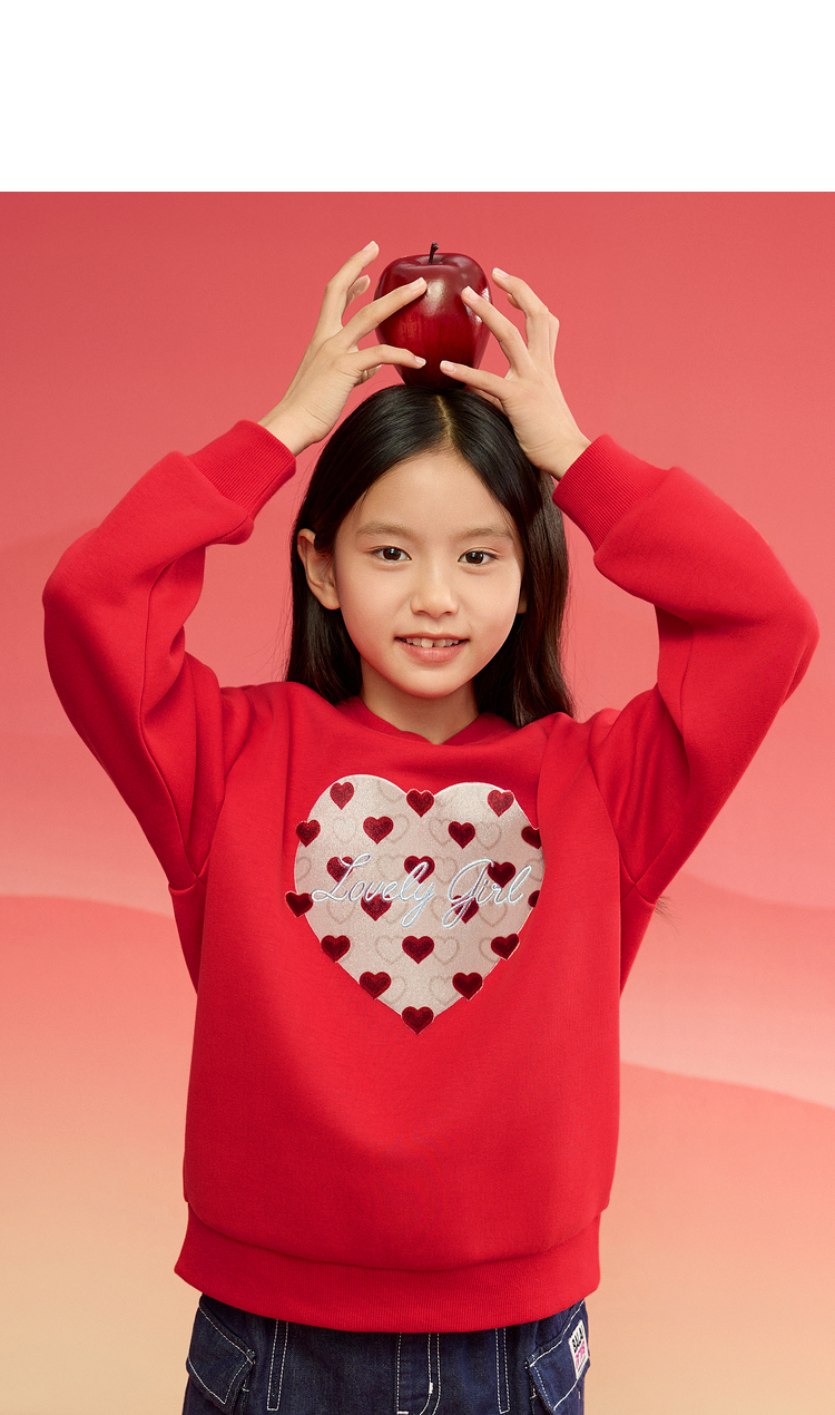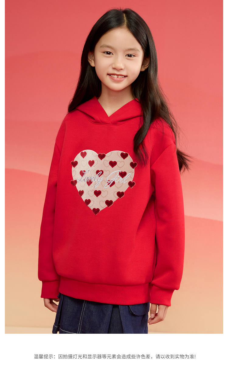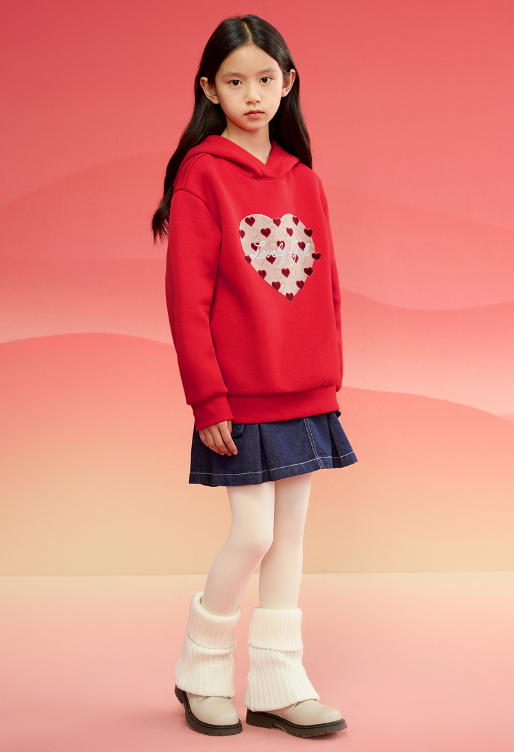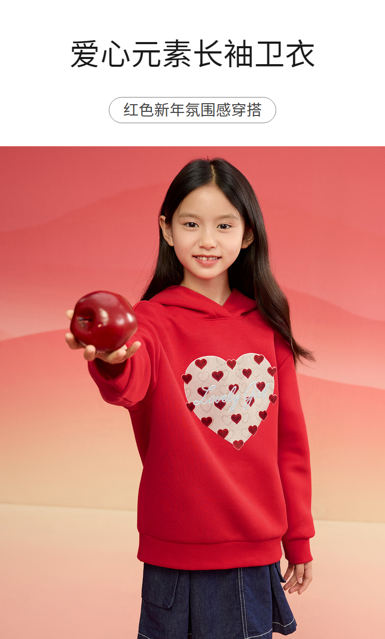 巴拉巴拉童装儿童长袖卫衣女童2025春装新款连帽爱心新年红色上衣