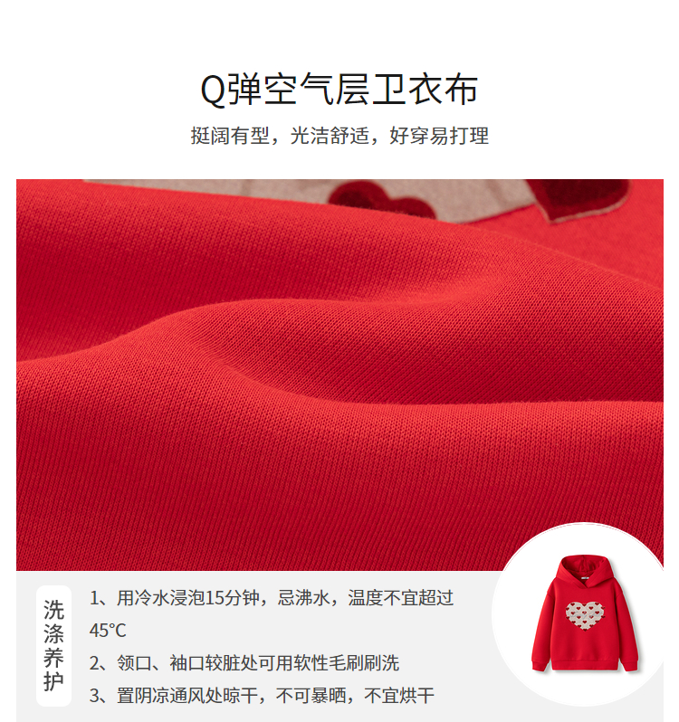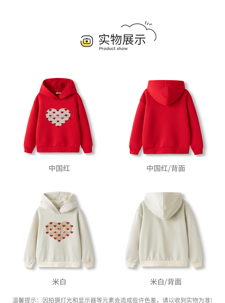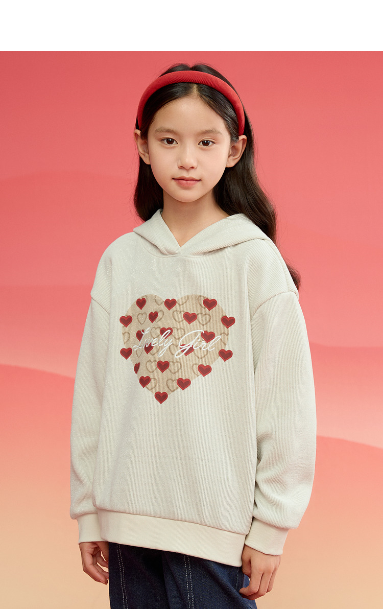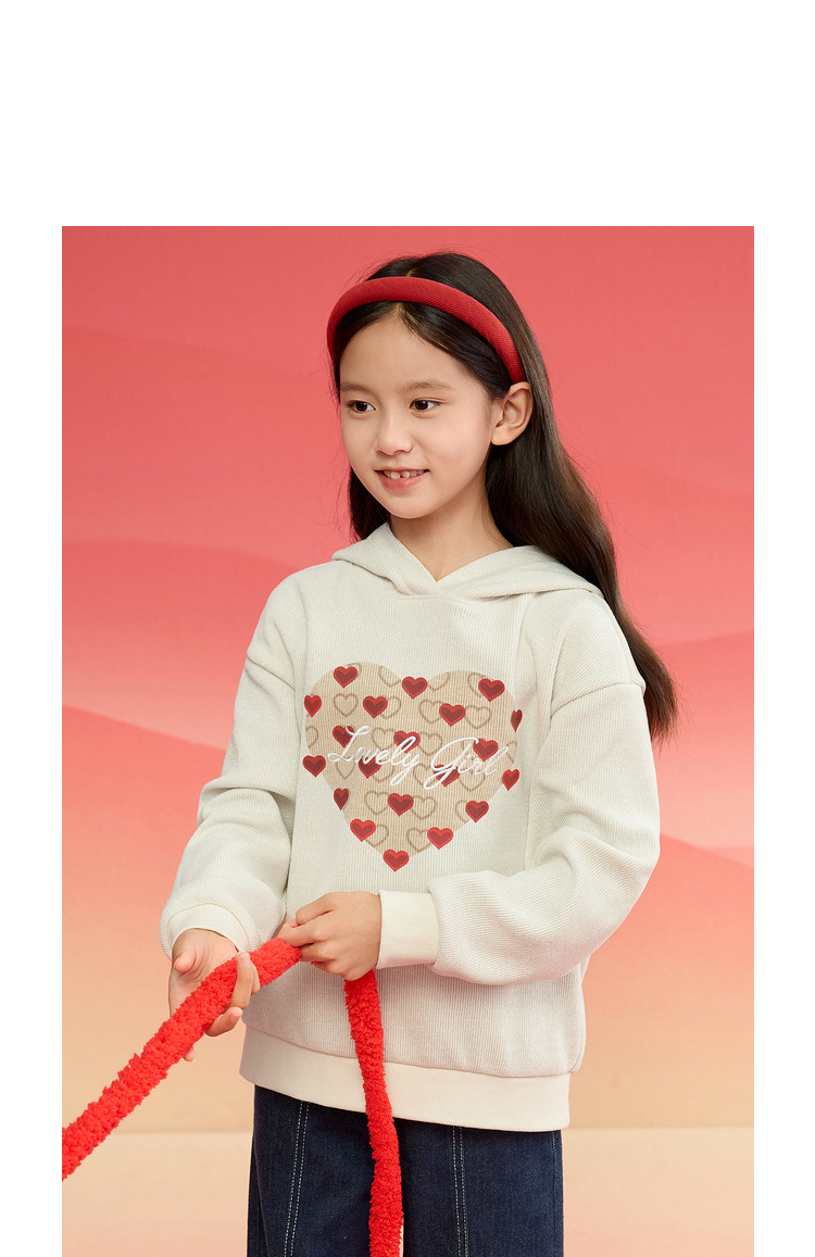 巴拉巴拉童装儿童长袖卫衣女童2025春装新款连帽爱心新年红色上衣
