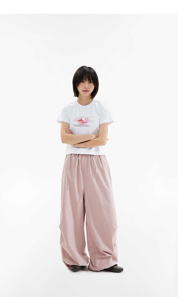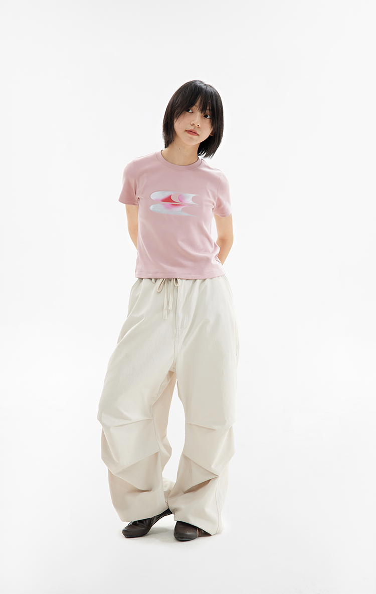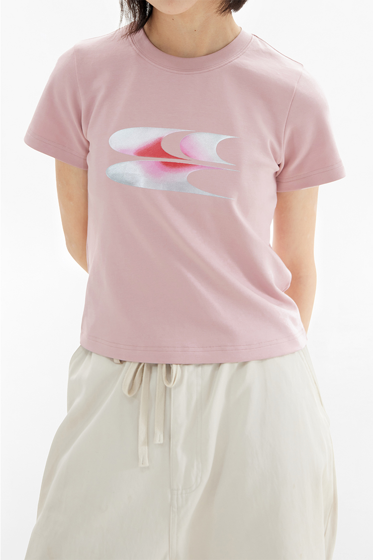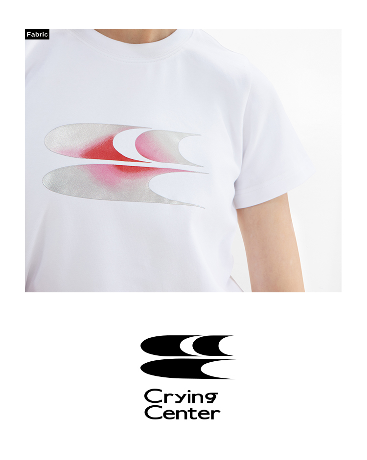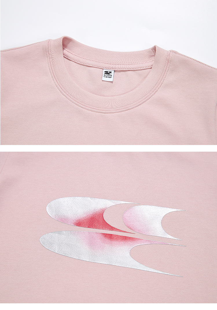 CryingCenter 粉银色渐变logo 女生 舒适修身t 哭喊中心