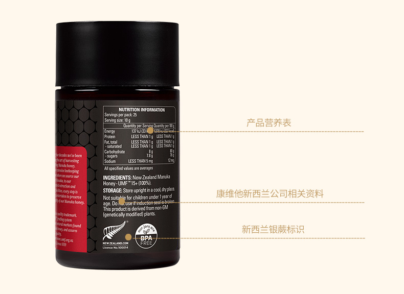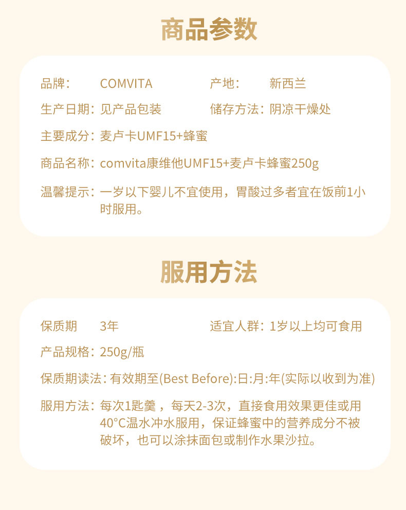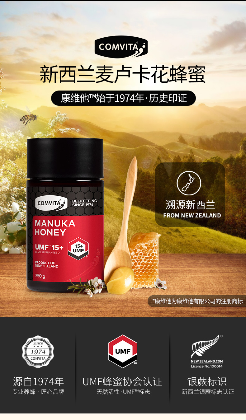 【特卖】comvita 康维他 麦卢卡花蜂蜜(UMF15+)250g【保质期:26年11月】