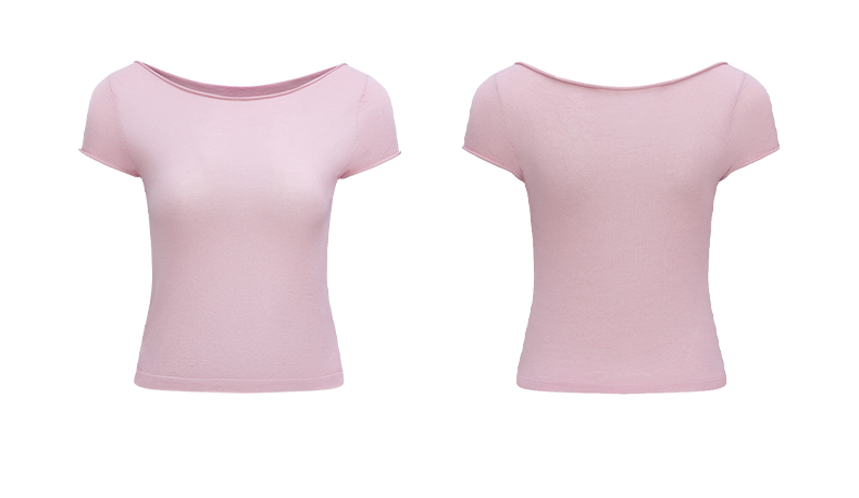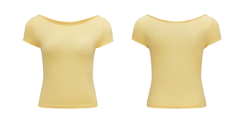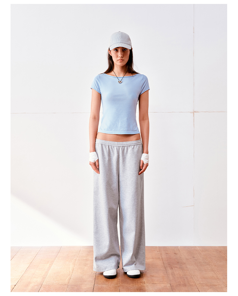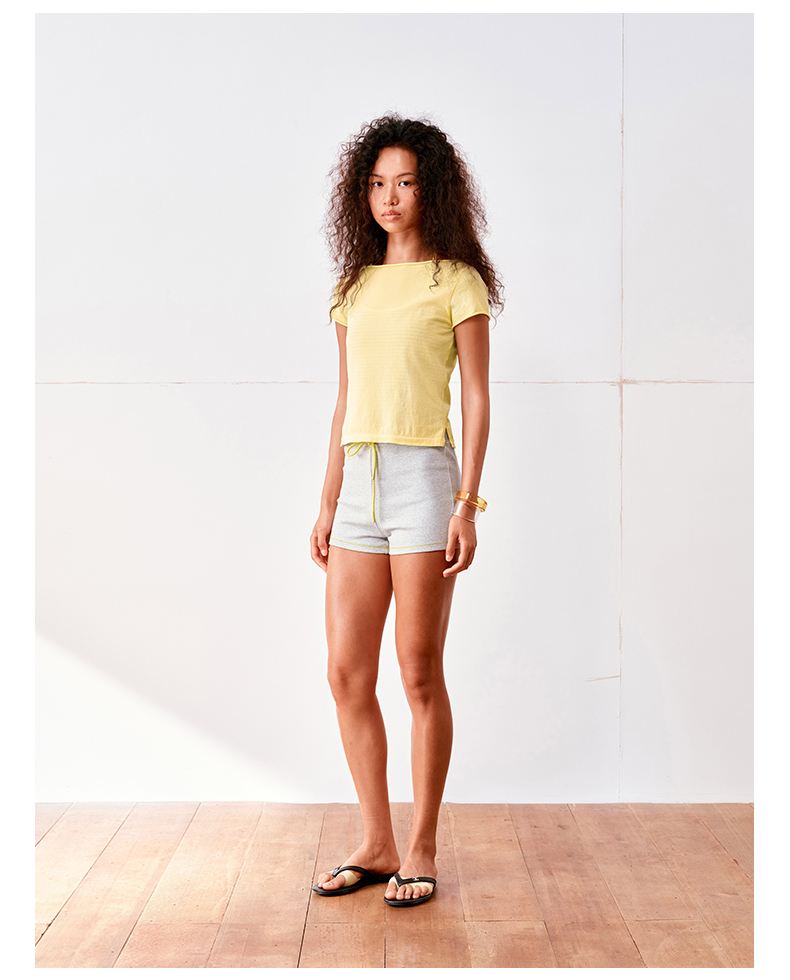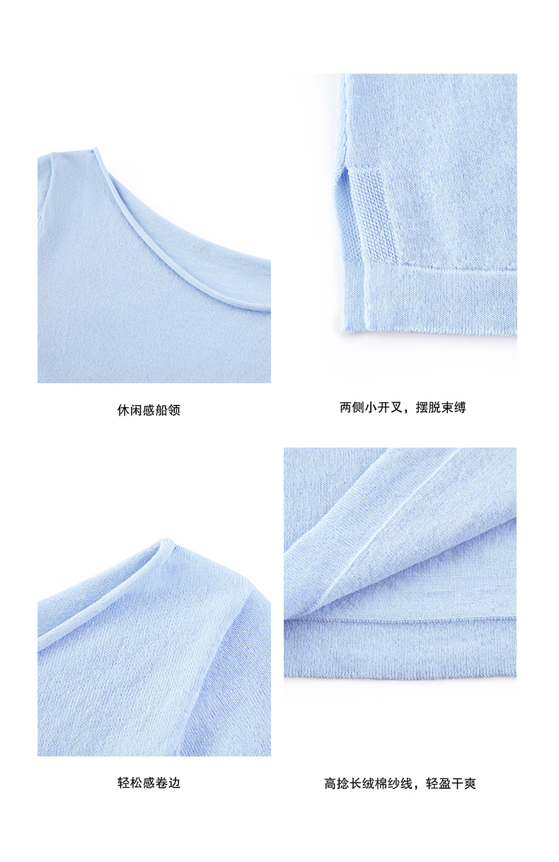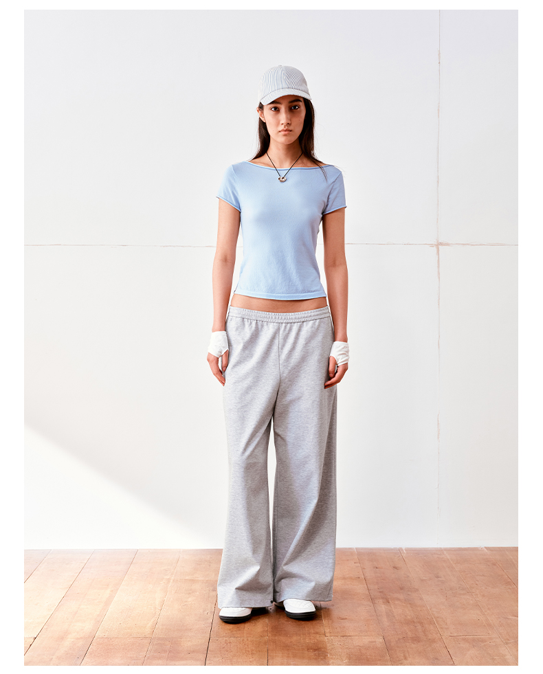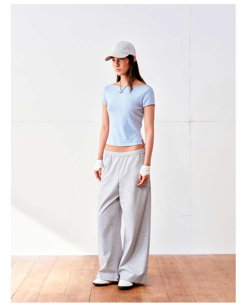 NUTH高捻长绒棉一字领针织上衣微透短袖T恤女