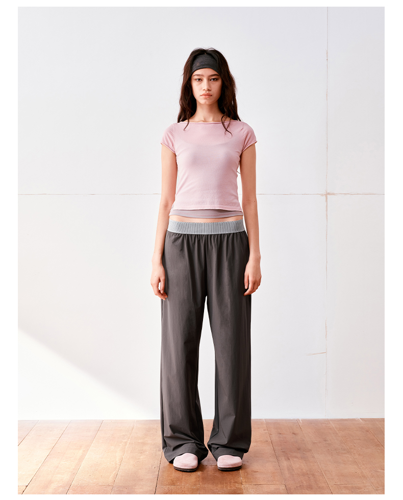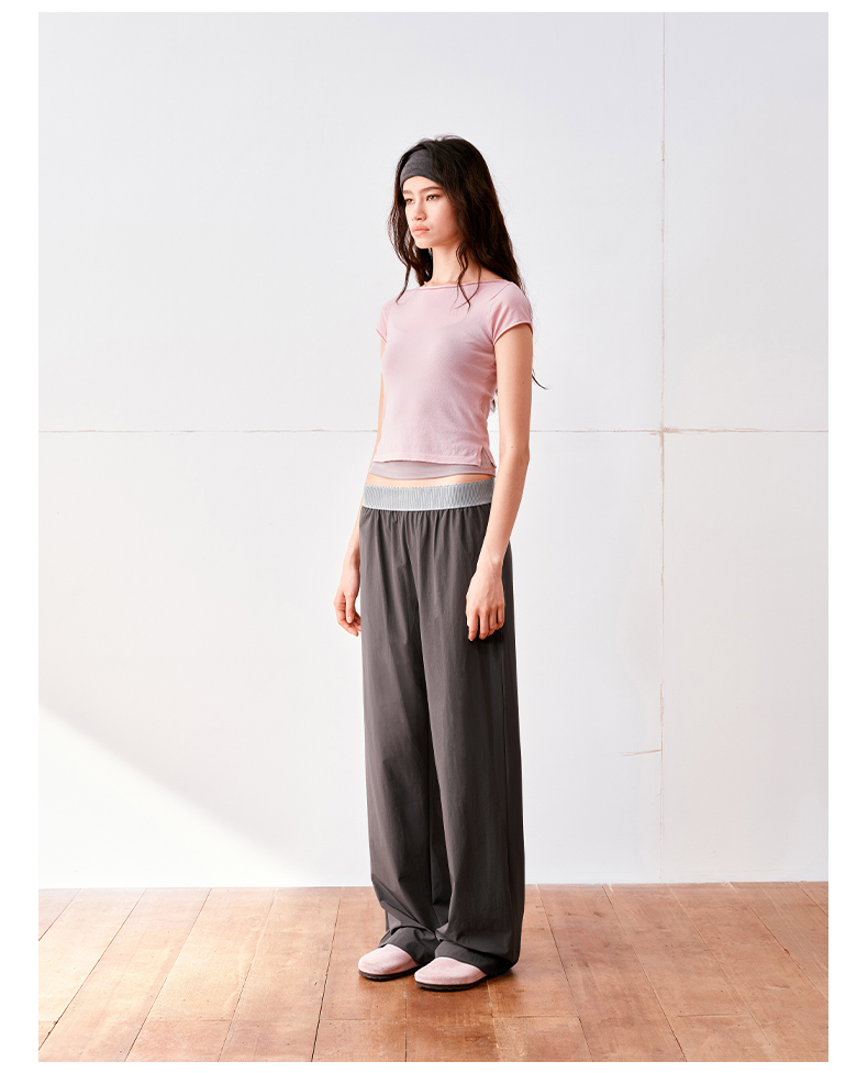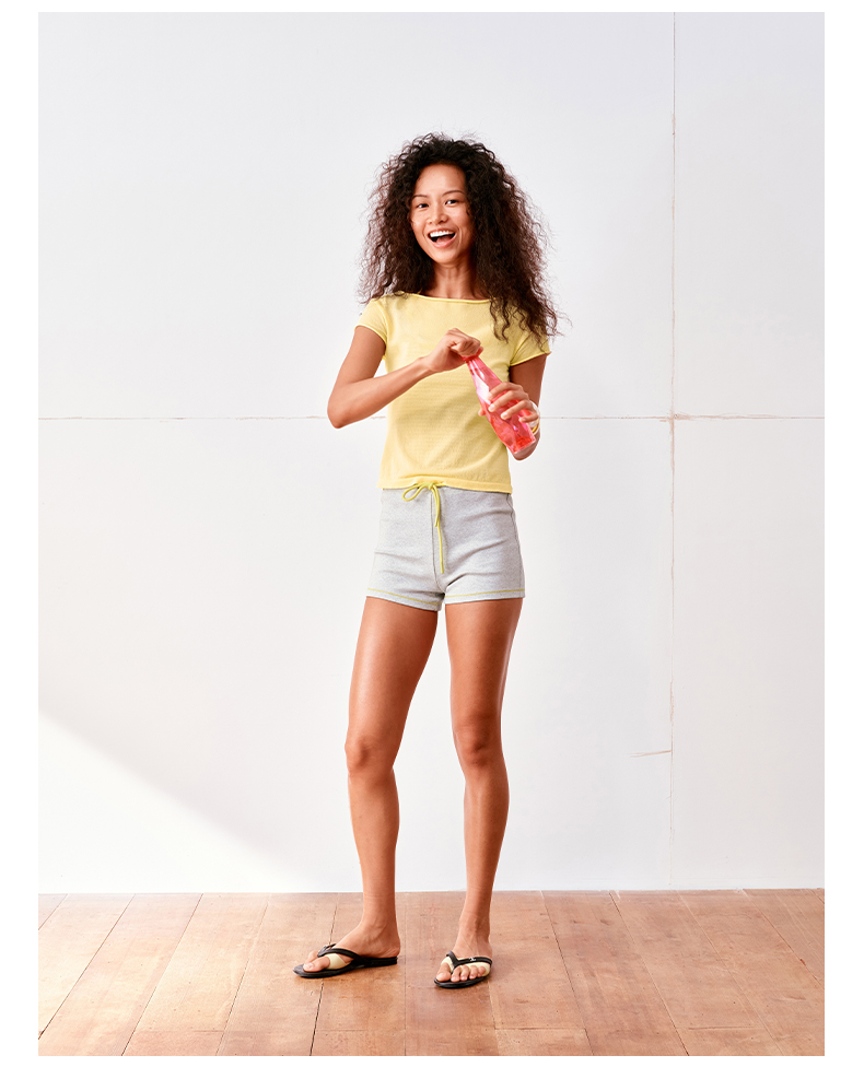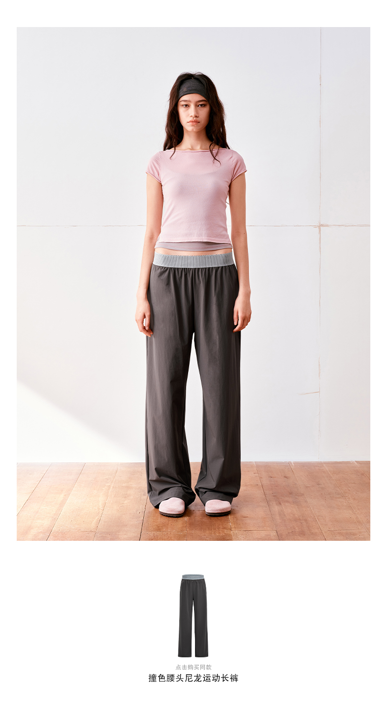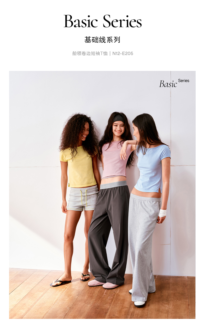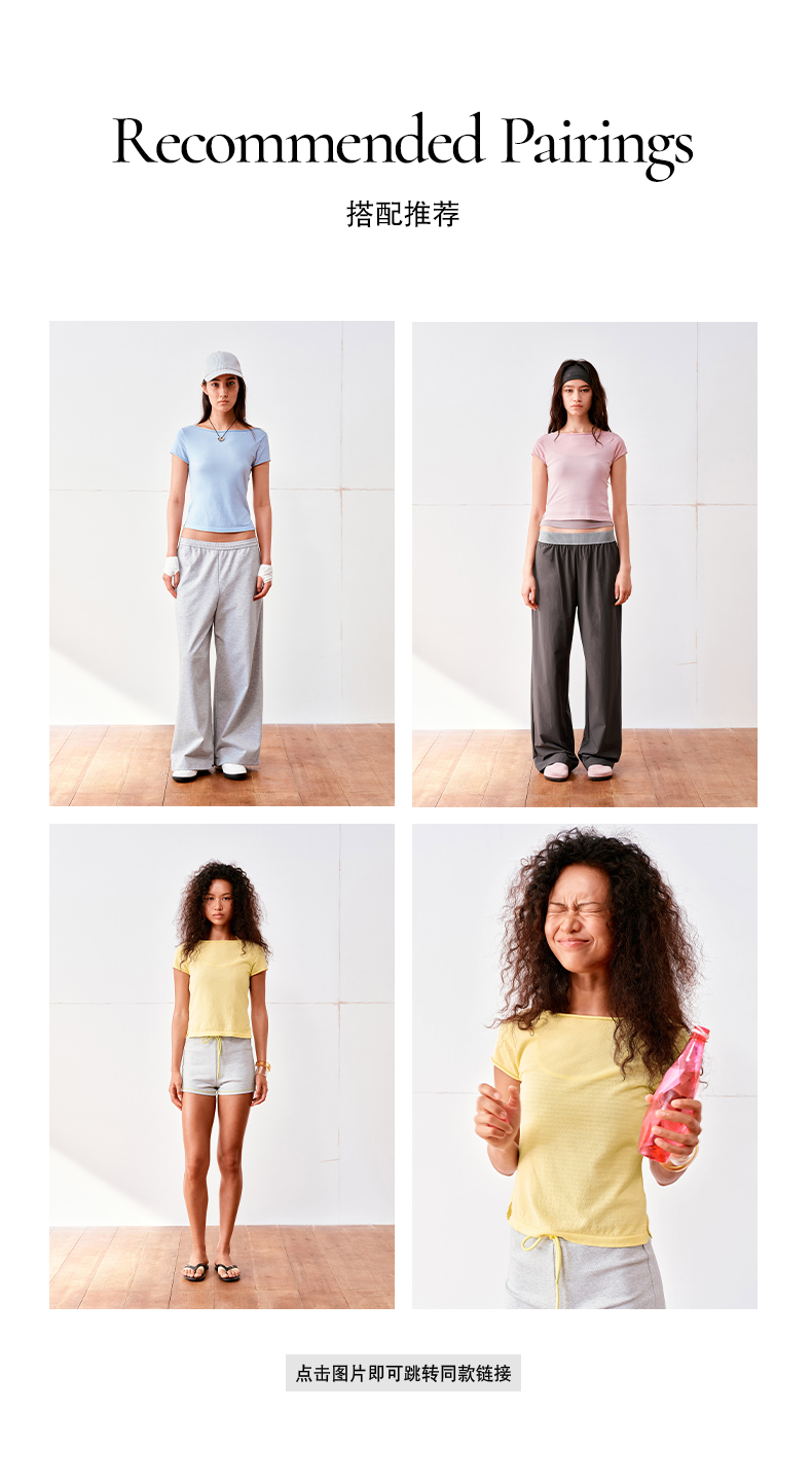 NUTH高捻长绒棉一字领针织上衣微透短袖T恤女