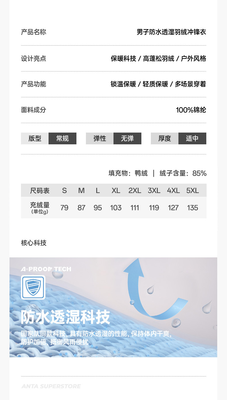 超级安踏六度芯冲锋衣羽绒服男冬保暖棉服外套防水夹克152546917U