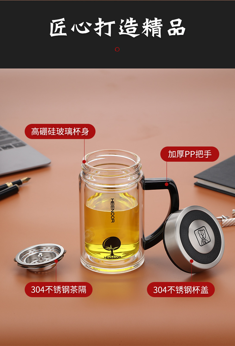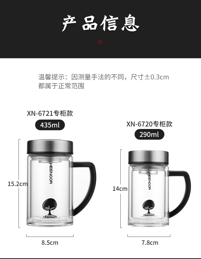 希诺 玻璃杯双层 带手柄 XN-6721(435毫升)