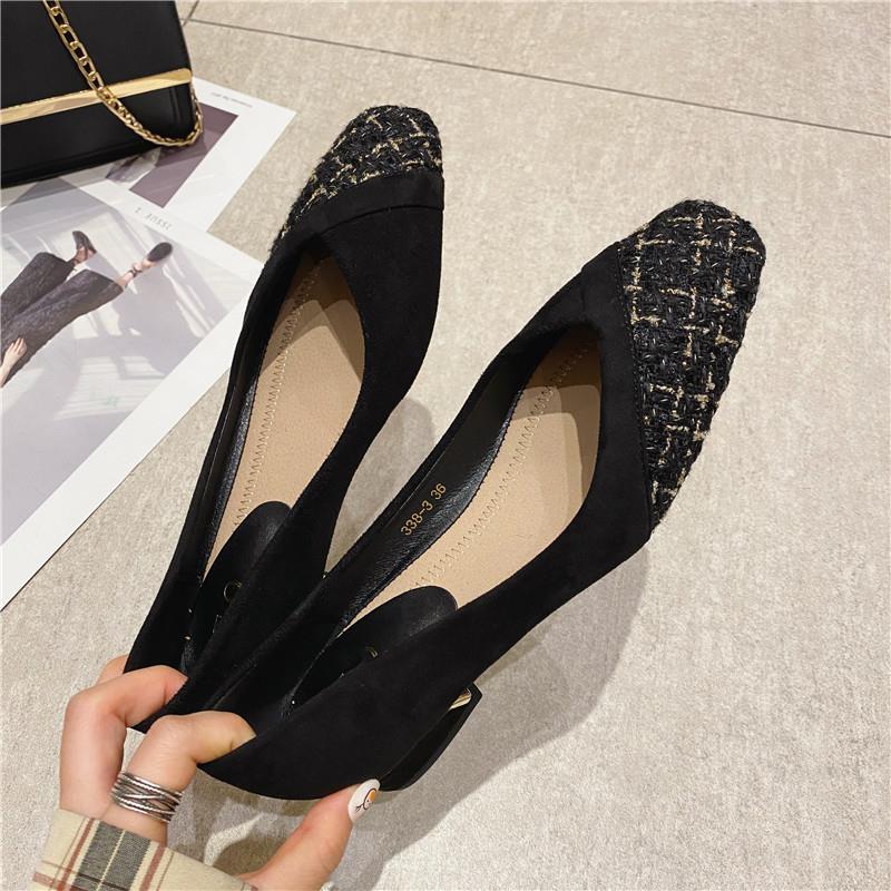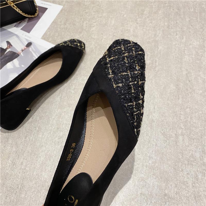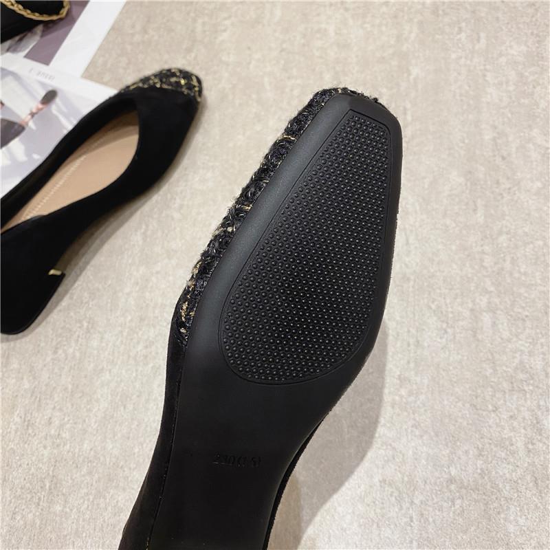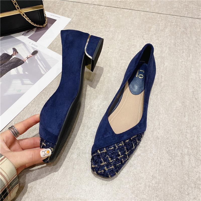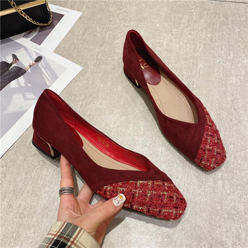 【荣王府·贵女】2026年小香风单鞋女方头浅口职业粗跟鞋百搭气质布面中跟单鞋