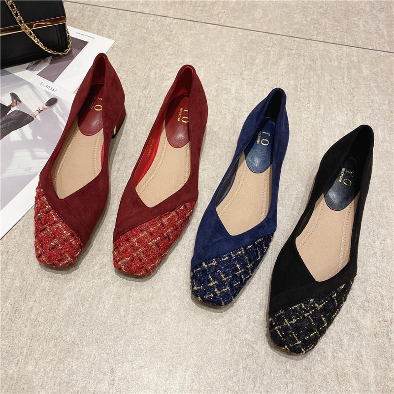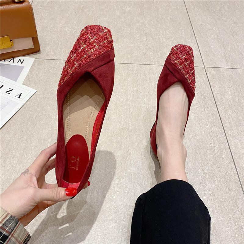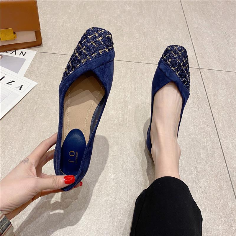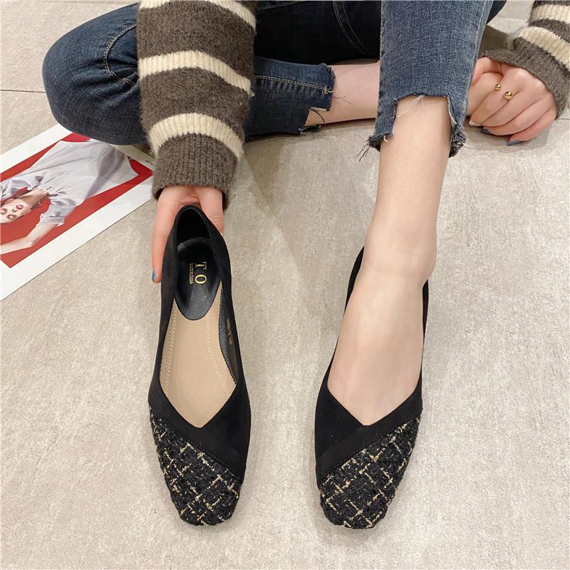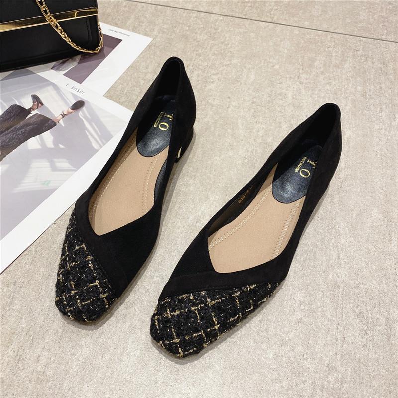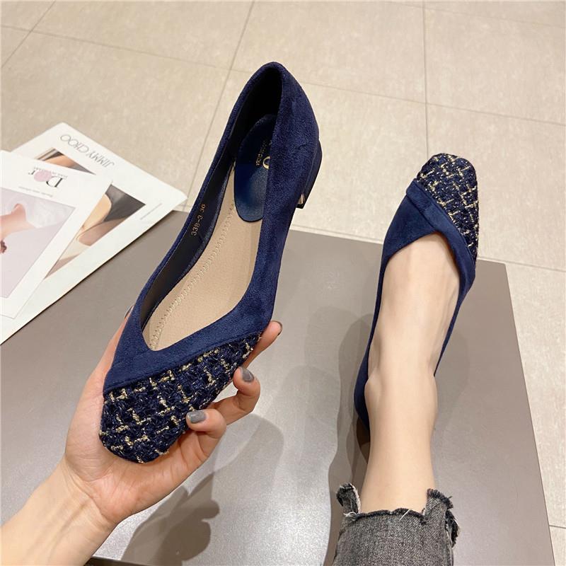 【荣王府·贵女】2026年小香风单鞋女方头浅口职业粗跟鞋百搭气质布面中跟单鞋