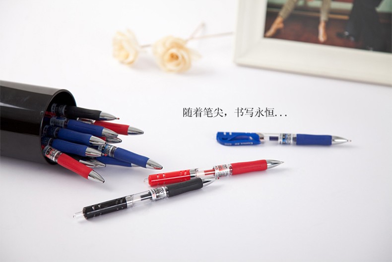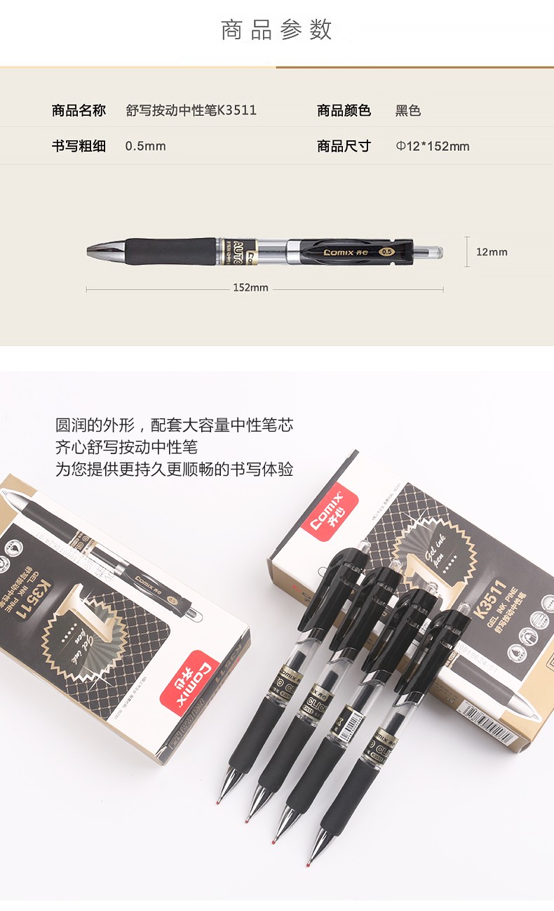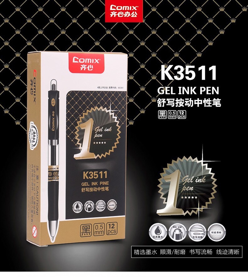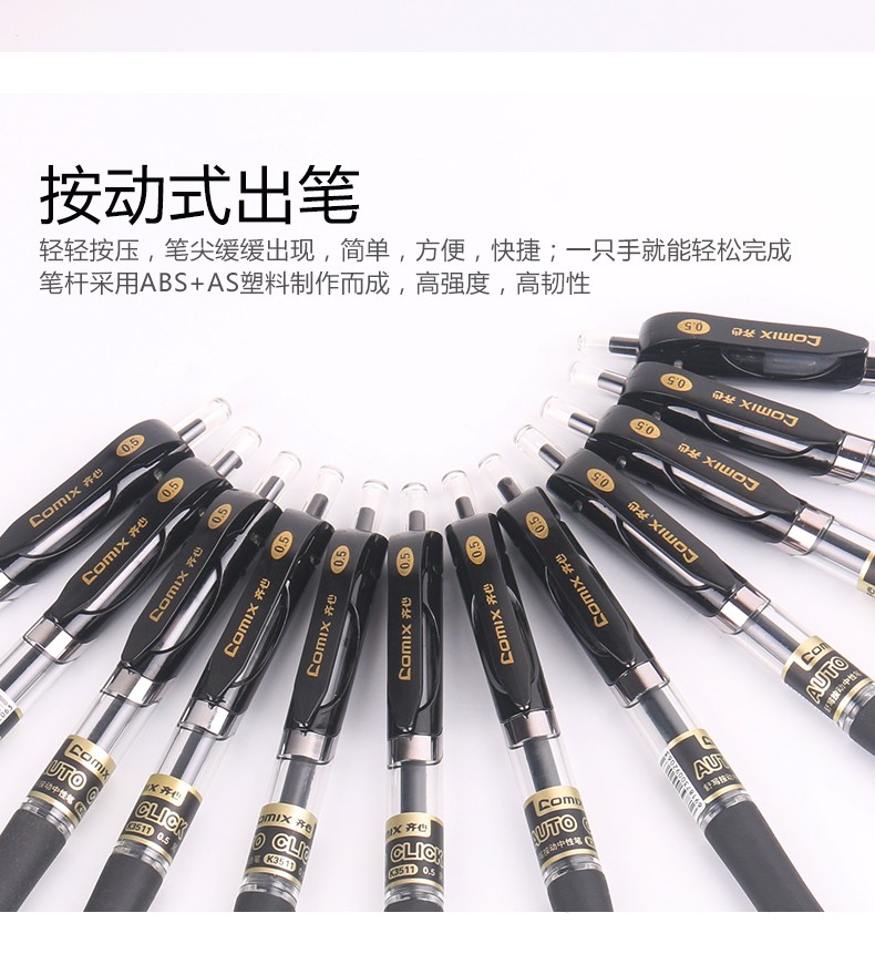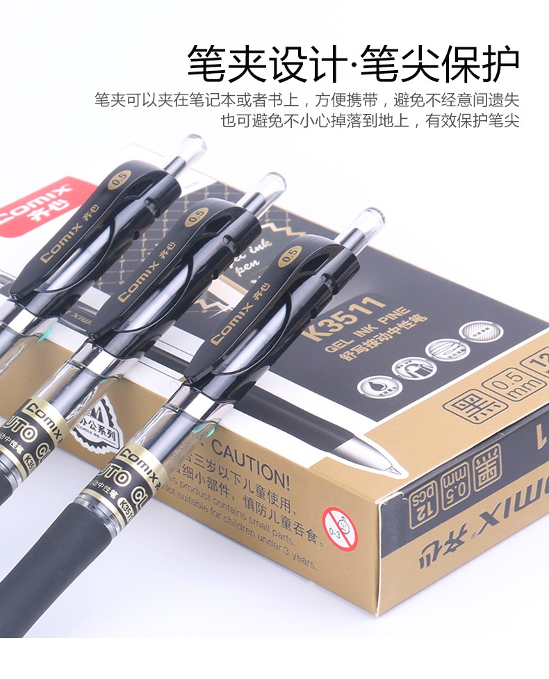 【仅供集采】齐心(COMIX)黑色144支/中中性笔按动签字笔商务黑笔速干红蓝水笔考试专用水性笔 0.5mm K3511 经典速干