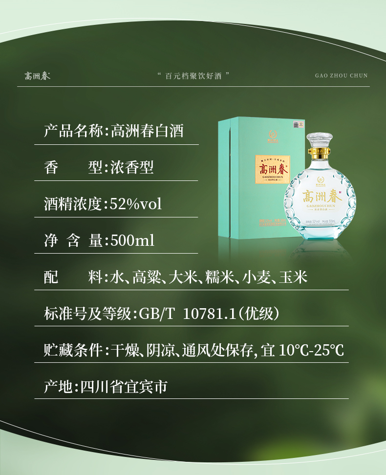 高洲春浓香型白酒经典老酒高粱酒纯粮酒口粮酒送礼酒