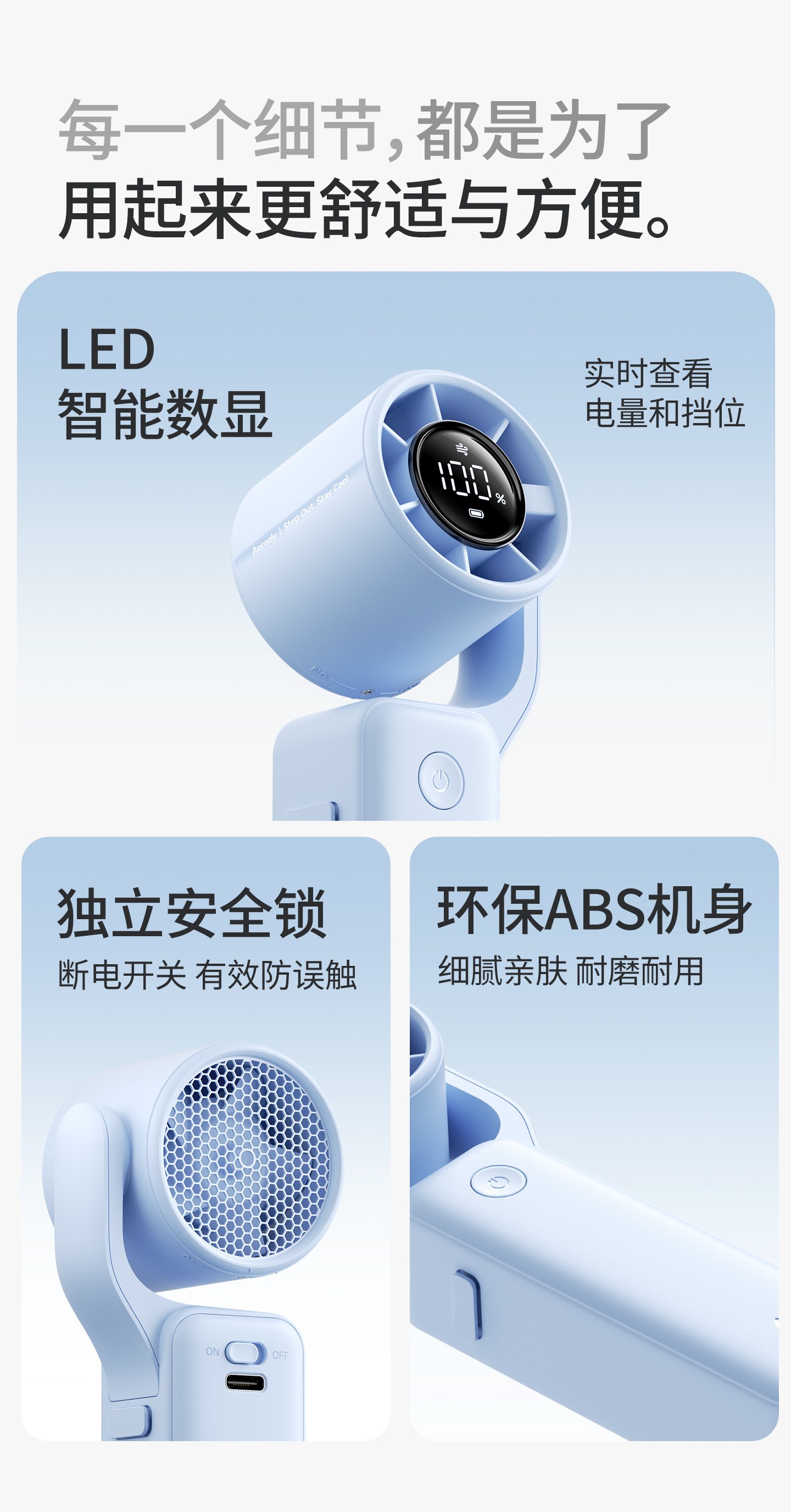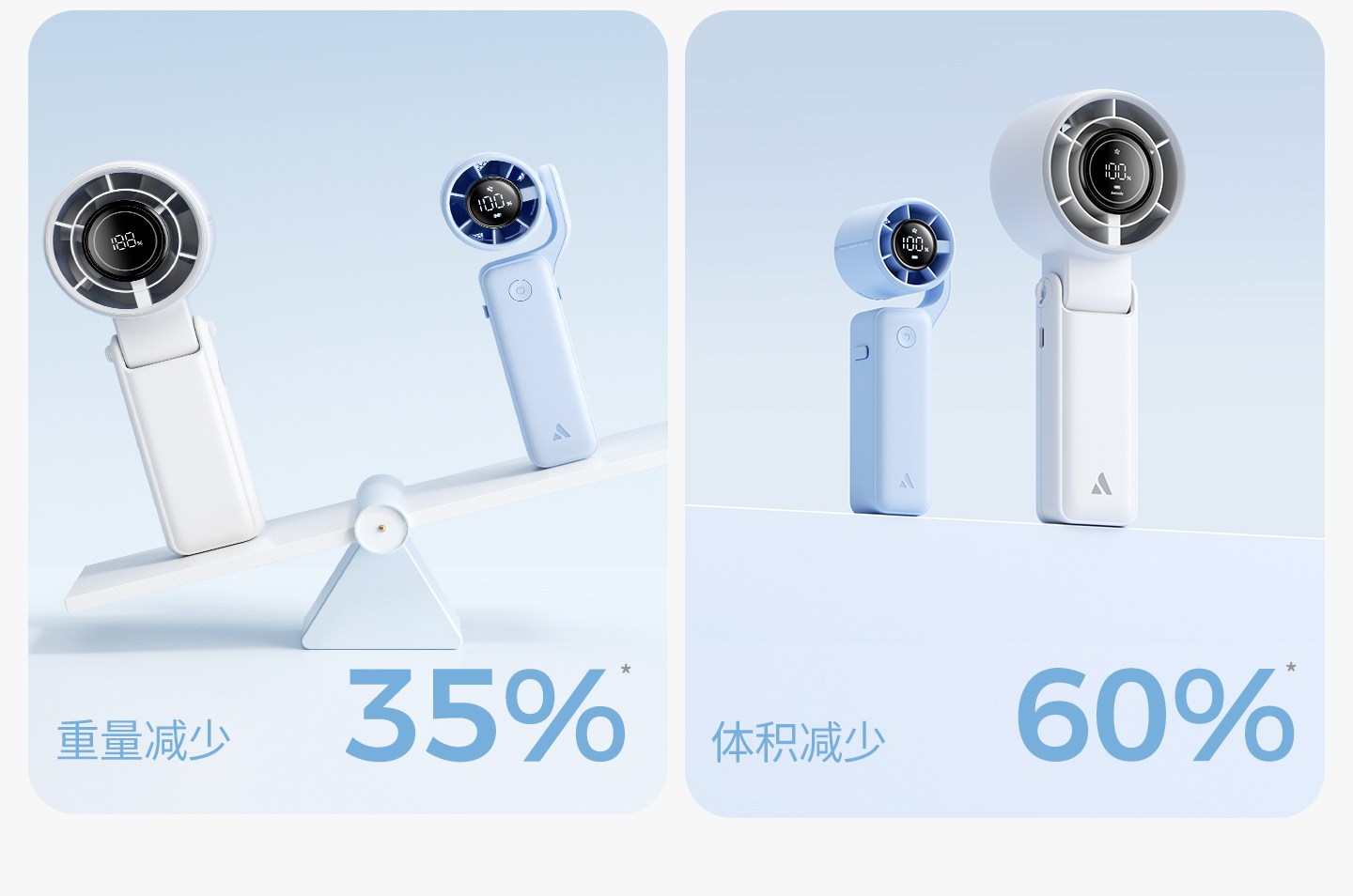 比传统封手持风扇重量减少35%,体积减少60%