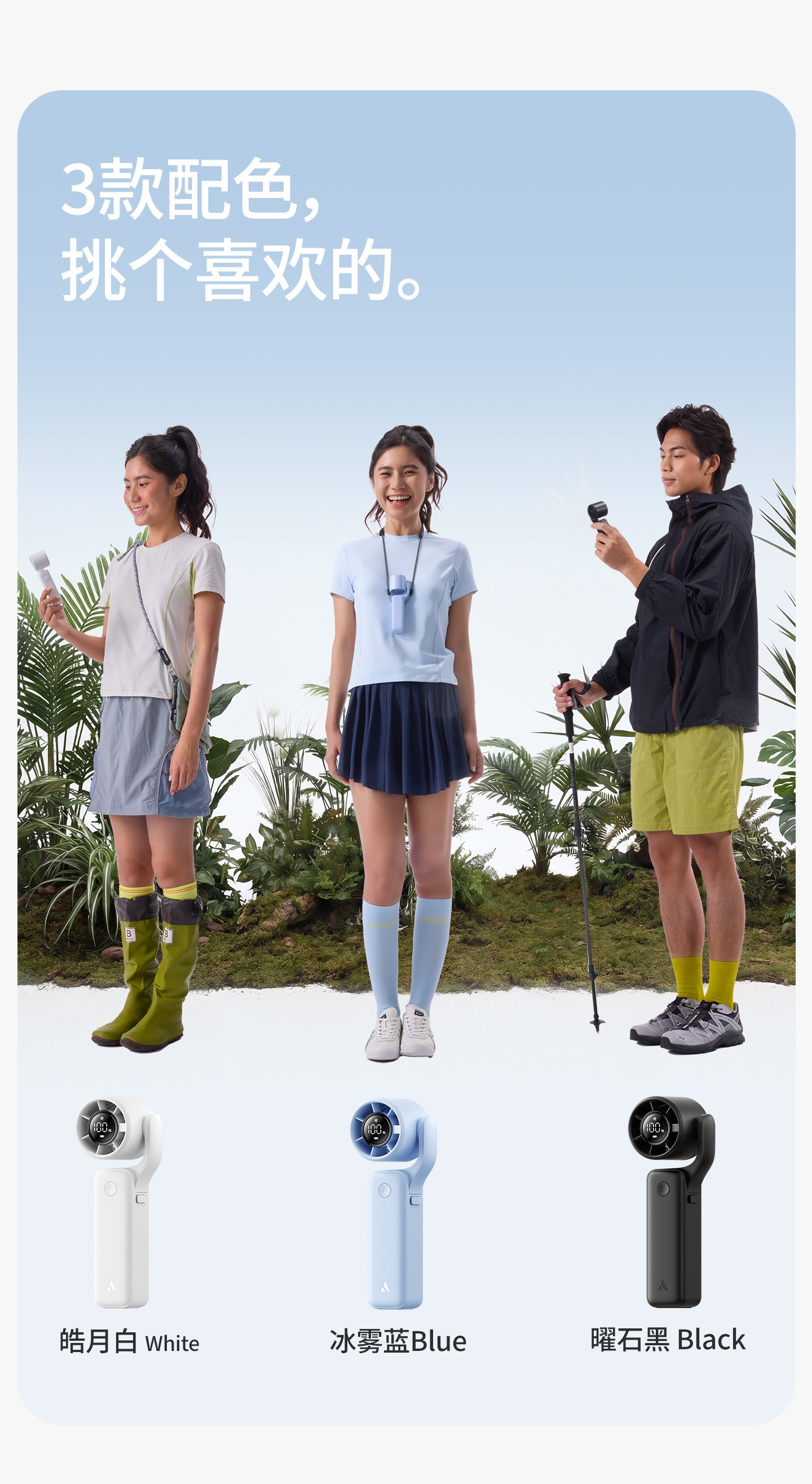 🔺4-5档:飓风降温,强劲大风,户外暴晒、闷热出汗时用,快速降温,瞬间解锁清爽