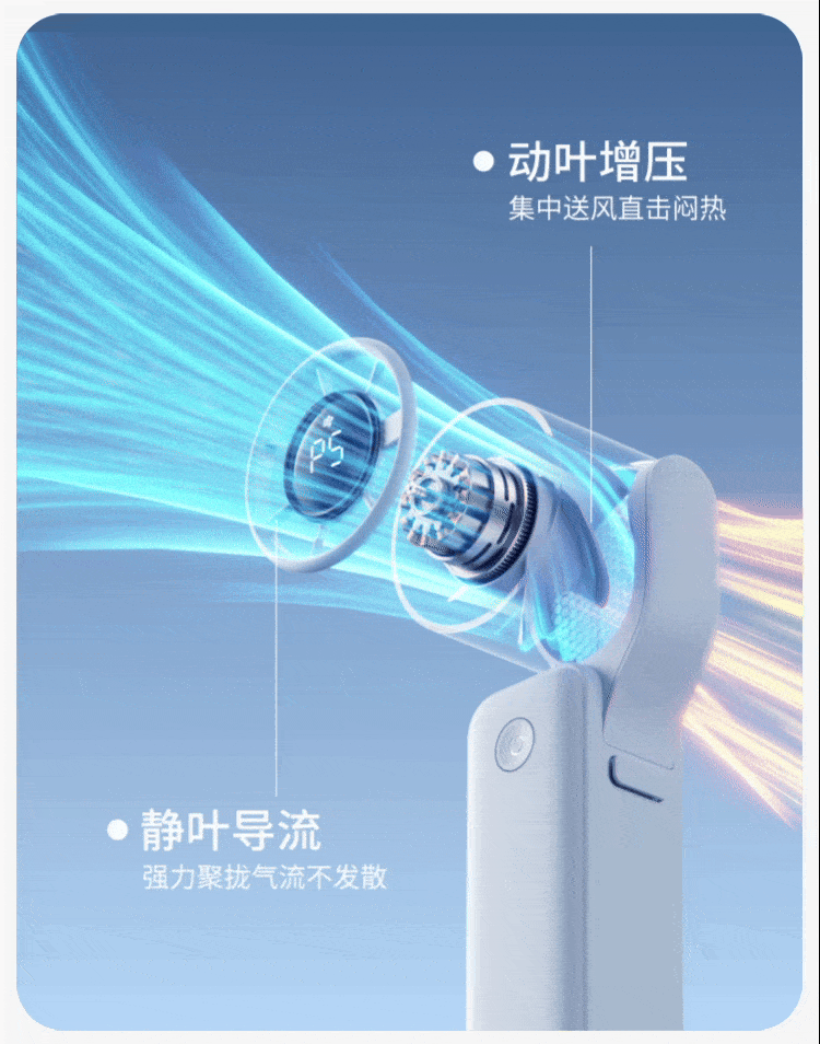- 动叶负责增压,能把风集中输送,直击闷热源头,不会吹得东倒西歪